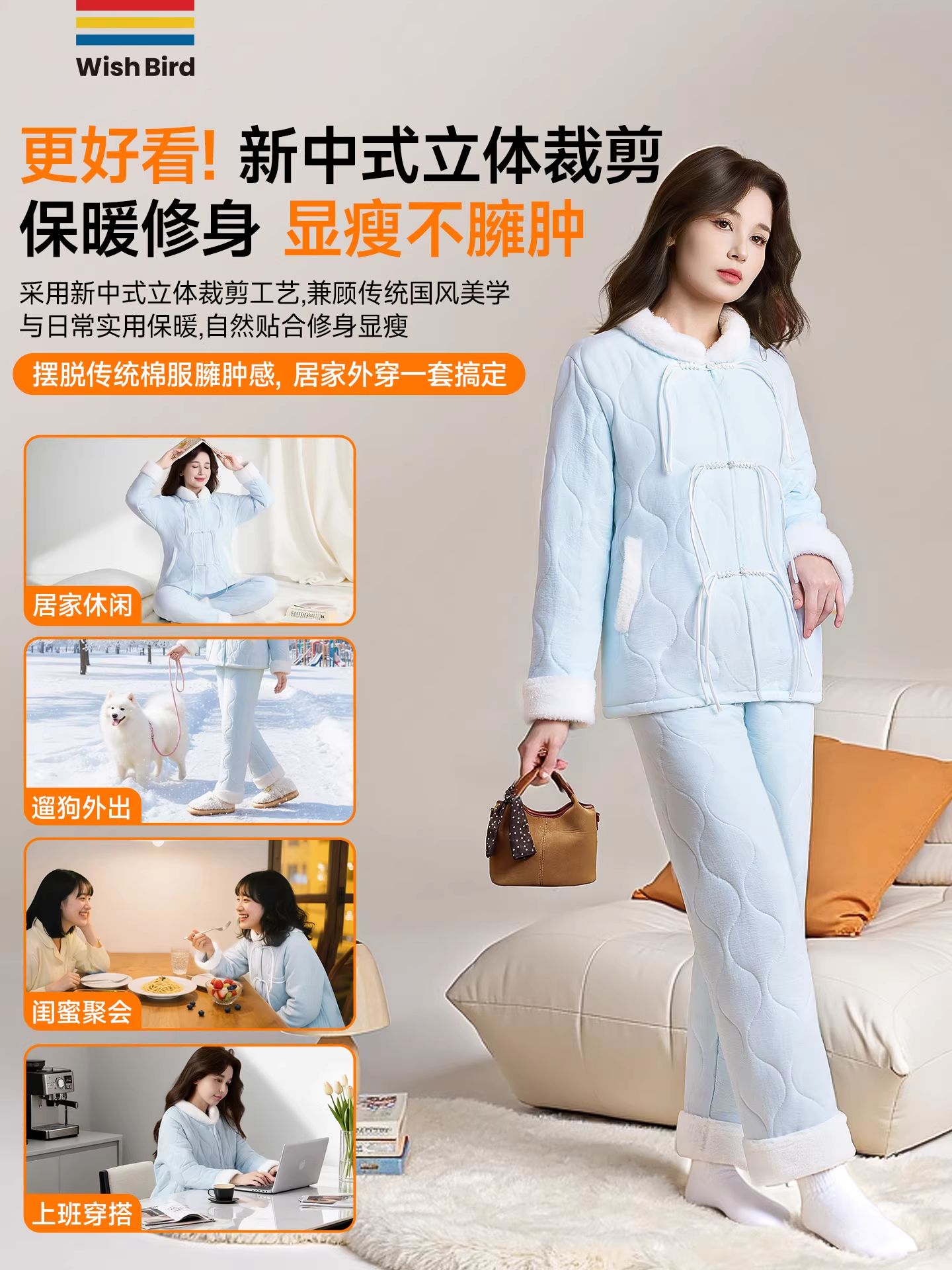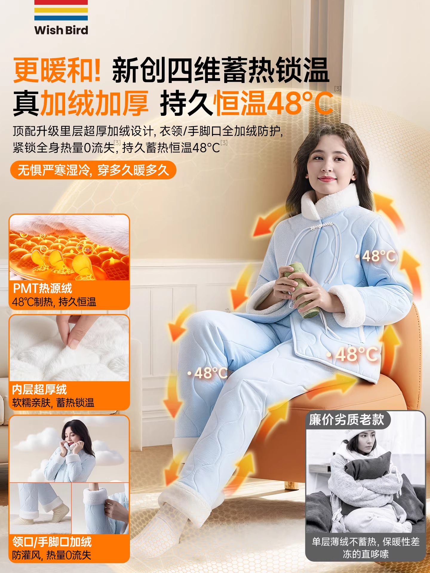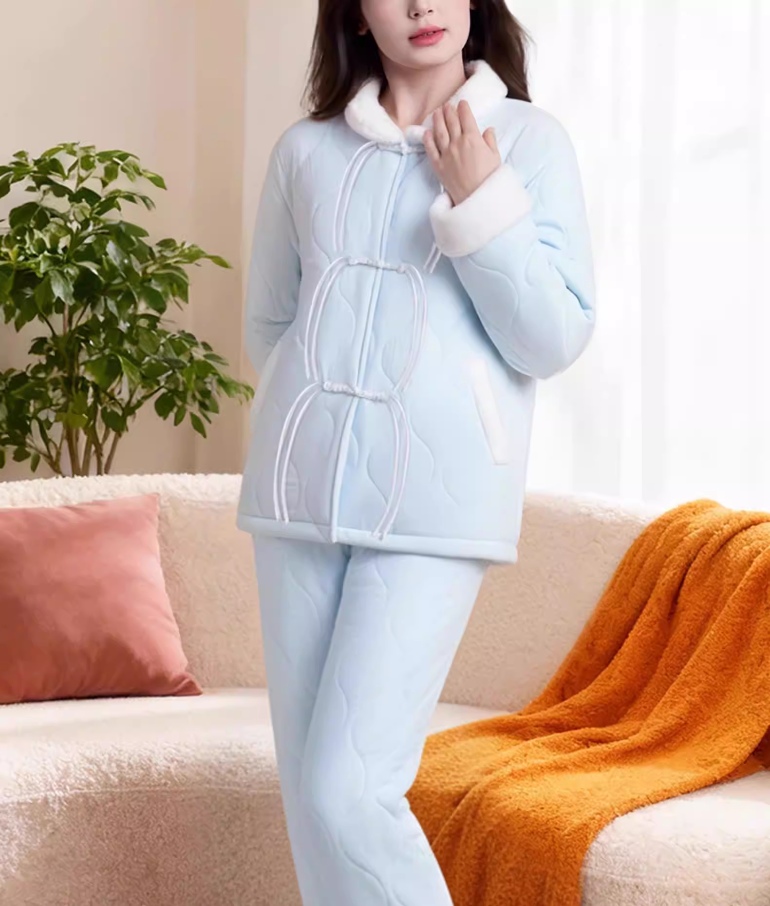 【天猫热销价194元】愿望良品 保暖抗静电夹棉睡衣女 冬季三层加厚加绒棉袄冬款珊瑚绒家居服套装