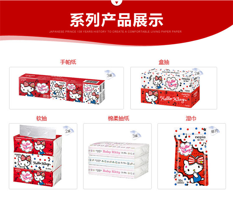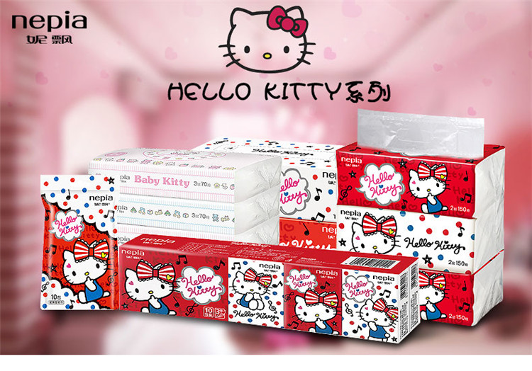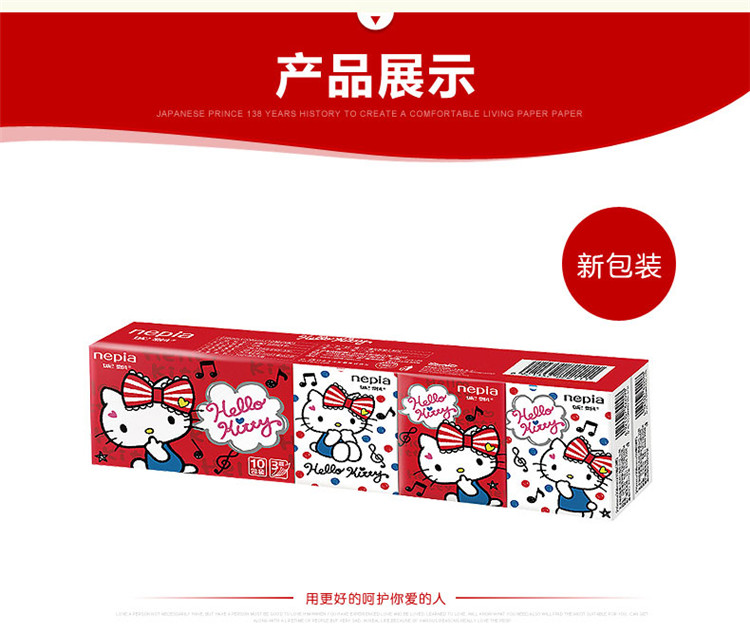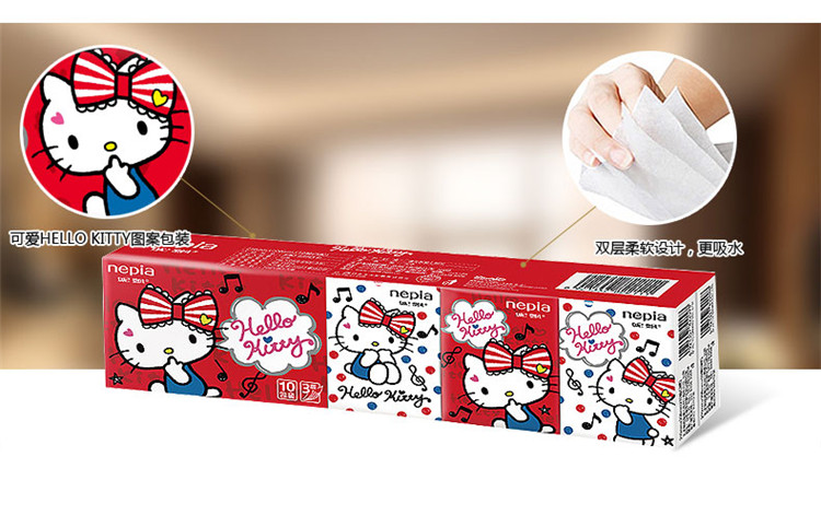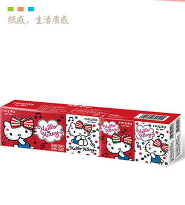 妮飘(Nepia)HelloKitty凯蒂手帕纸3层10抽*10包便携式印花迷你小包手帕纸纸巾_MW