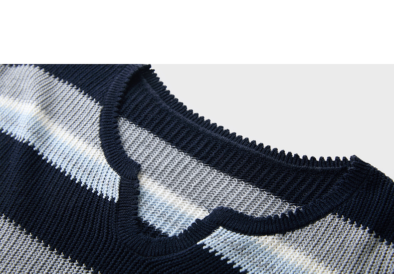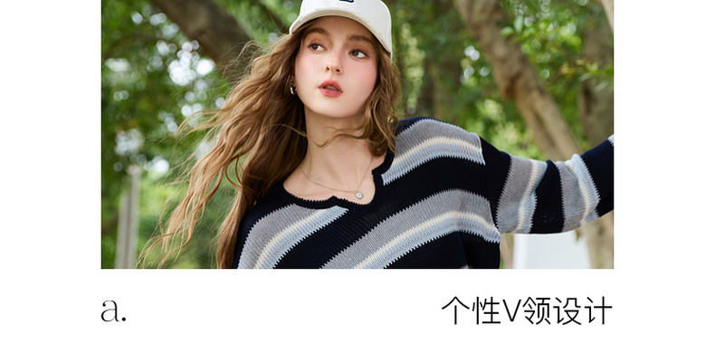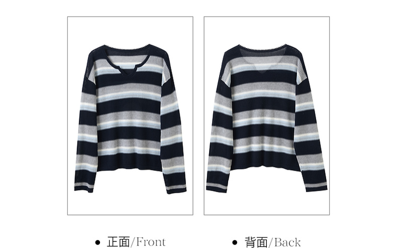 三彩2026春季新款宽松落肩袖撞色条纹镂空针织衫套头毛衫罩衫M
