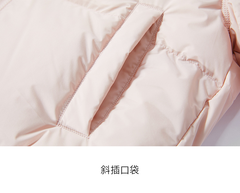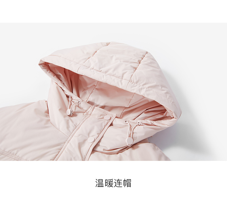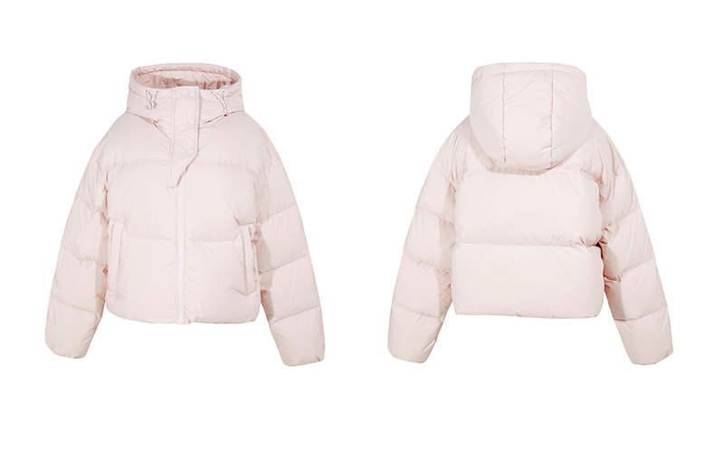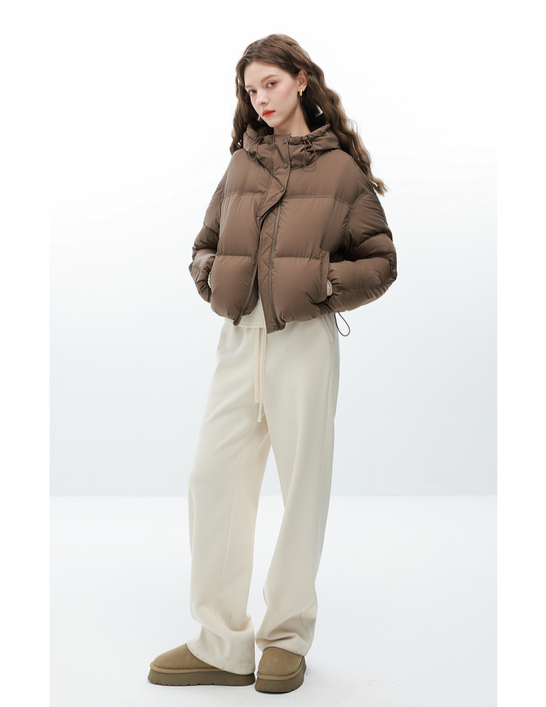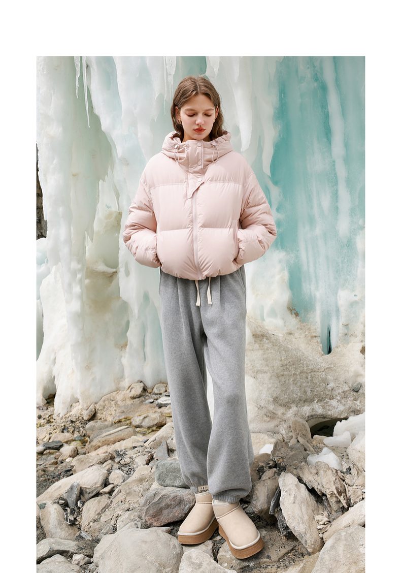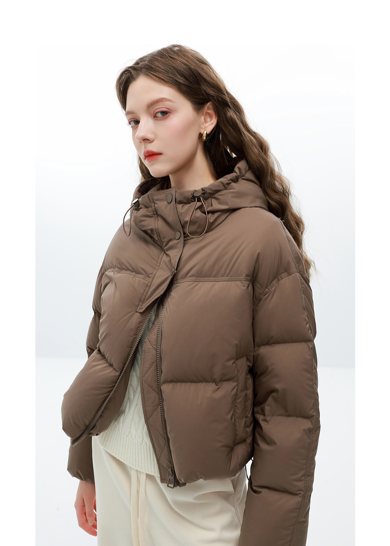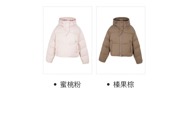 三彩2025冬季新款短款羽绒服连帽白鸭绒面包服宽松纯色简约女
