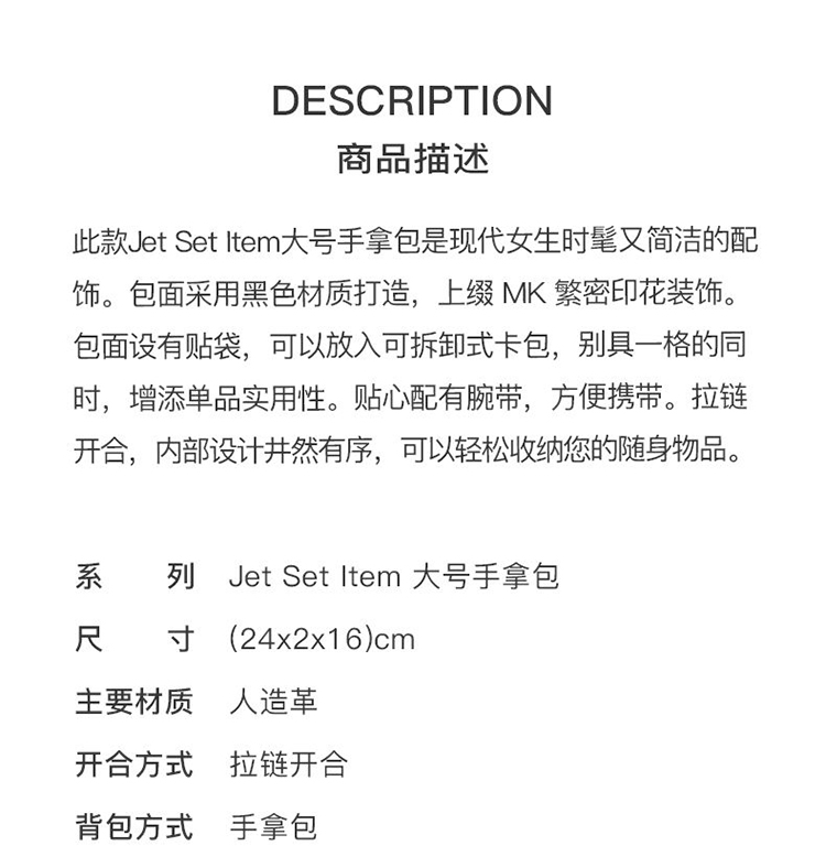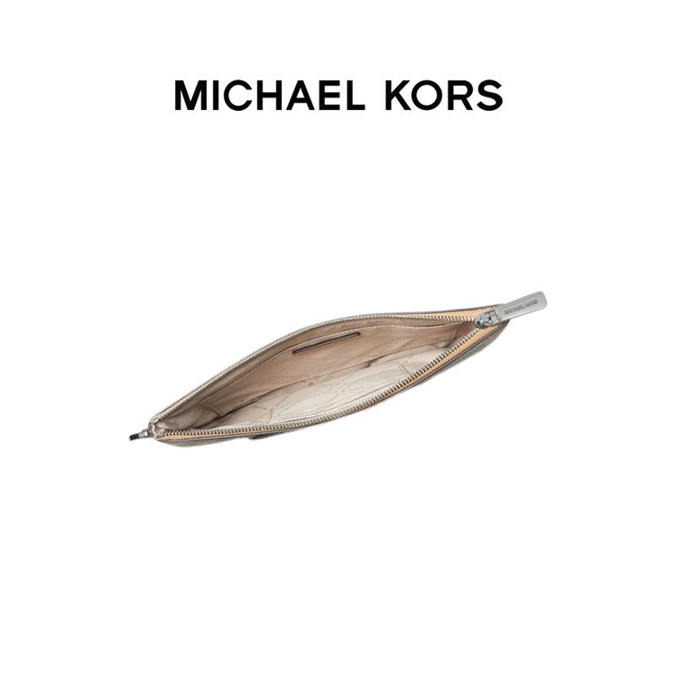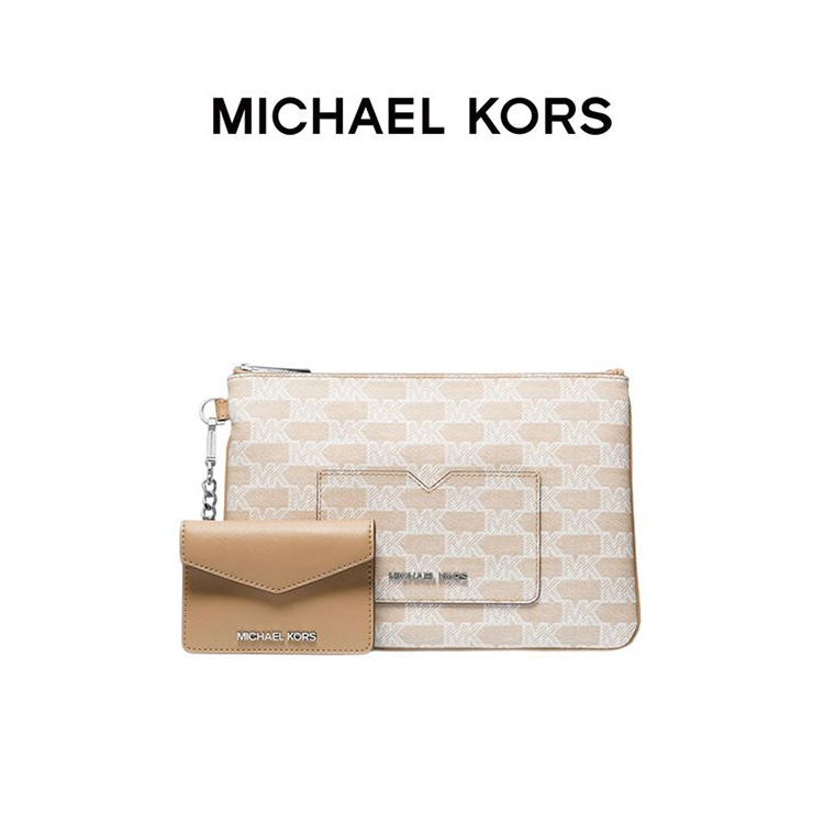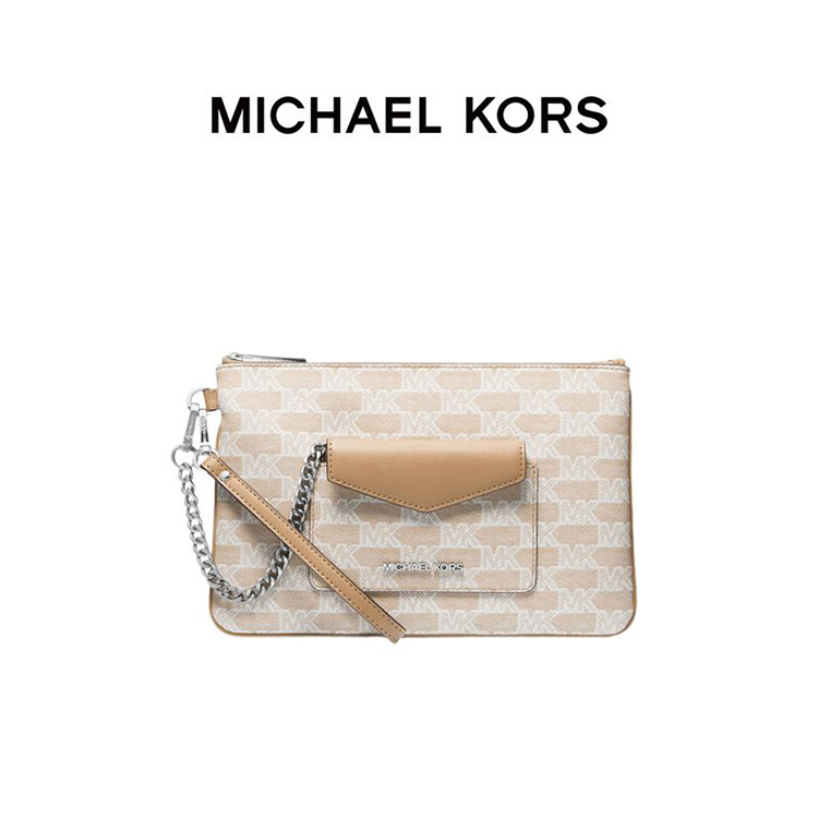 【品牌】 MK Jet Set Item 大号印花金属链条手拿包驼色