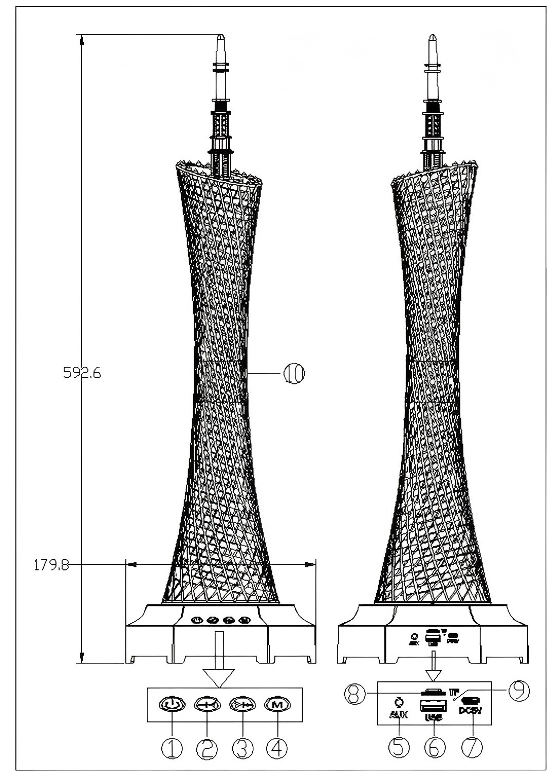 1:580精准还原,58cm超大号 广州塔模型 10种炫彩LED灯光效果 精美工艺 小蛮腰蓝牙音箱 XMY88