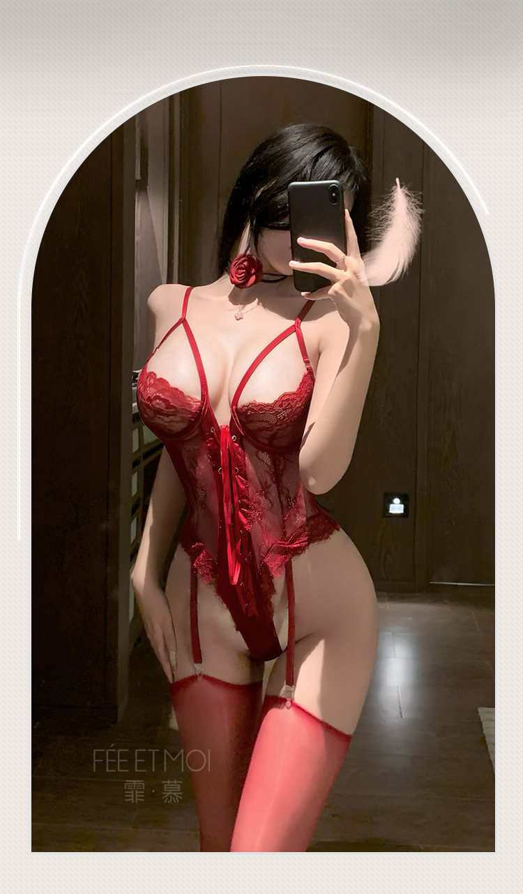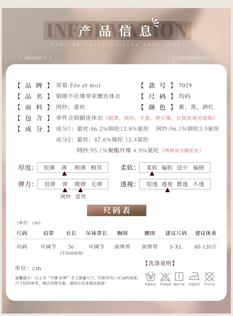 【情趣内衣】霏慕 钢圈半托绑带束腰连体衣7029