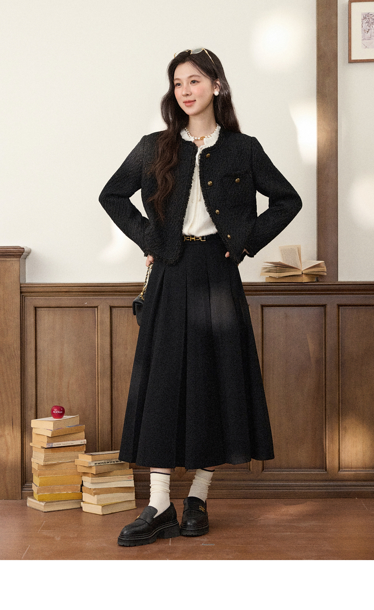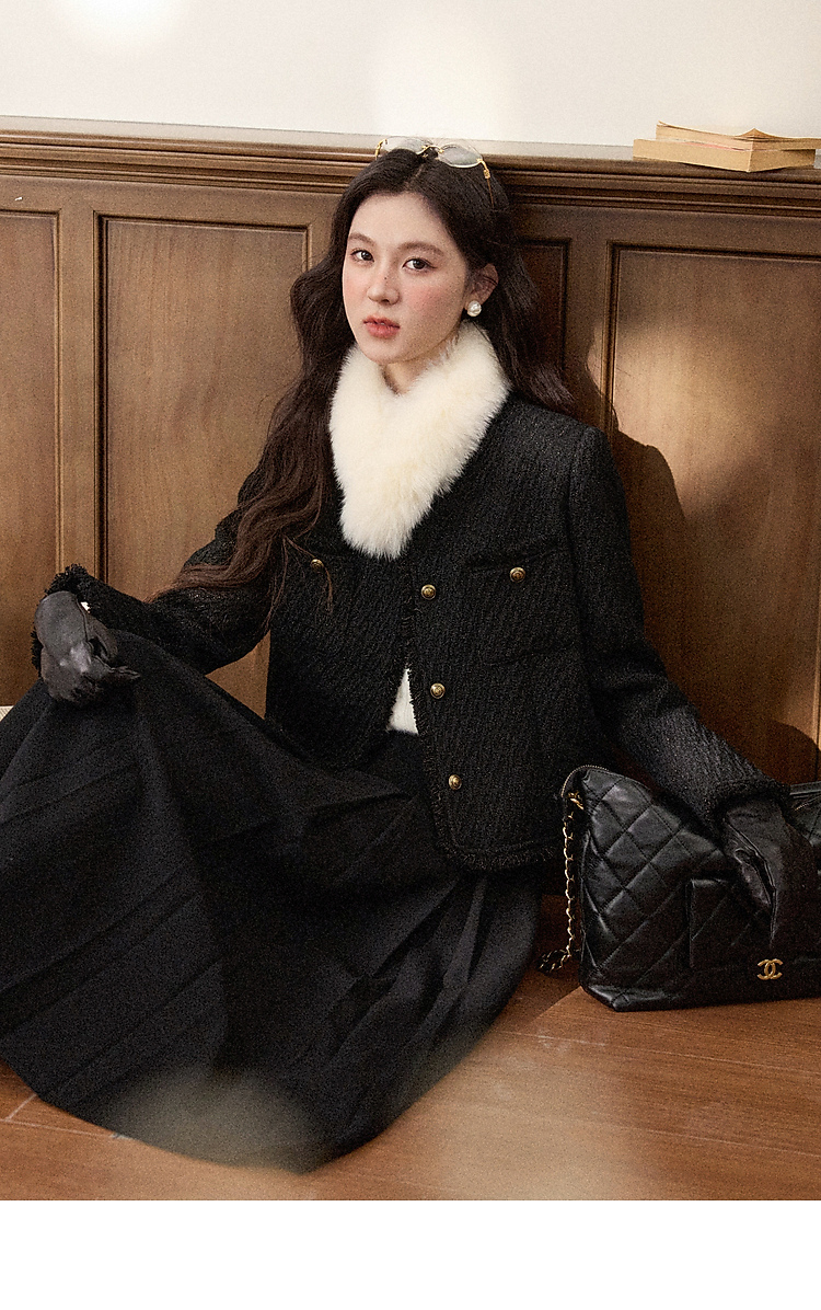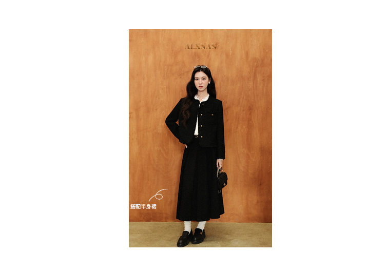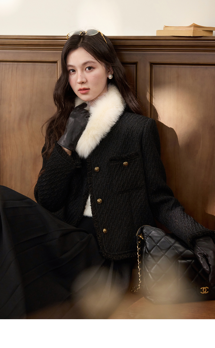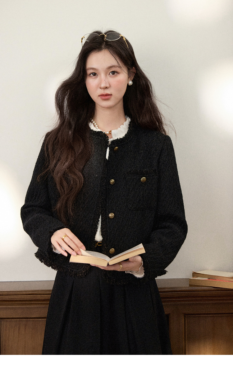 鹿向南「金扣质感」小香风短款外套秋新款宽松小众正肩黑色上衣女