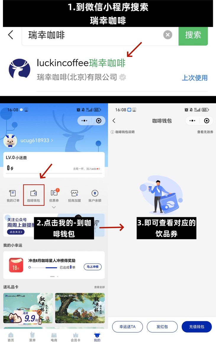 进入「我的」→「咖啡钱包」即可查看已到账的饮品券。