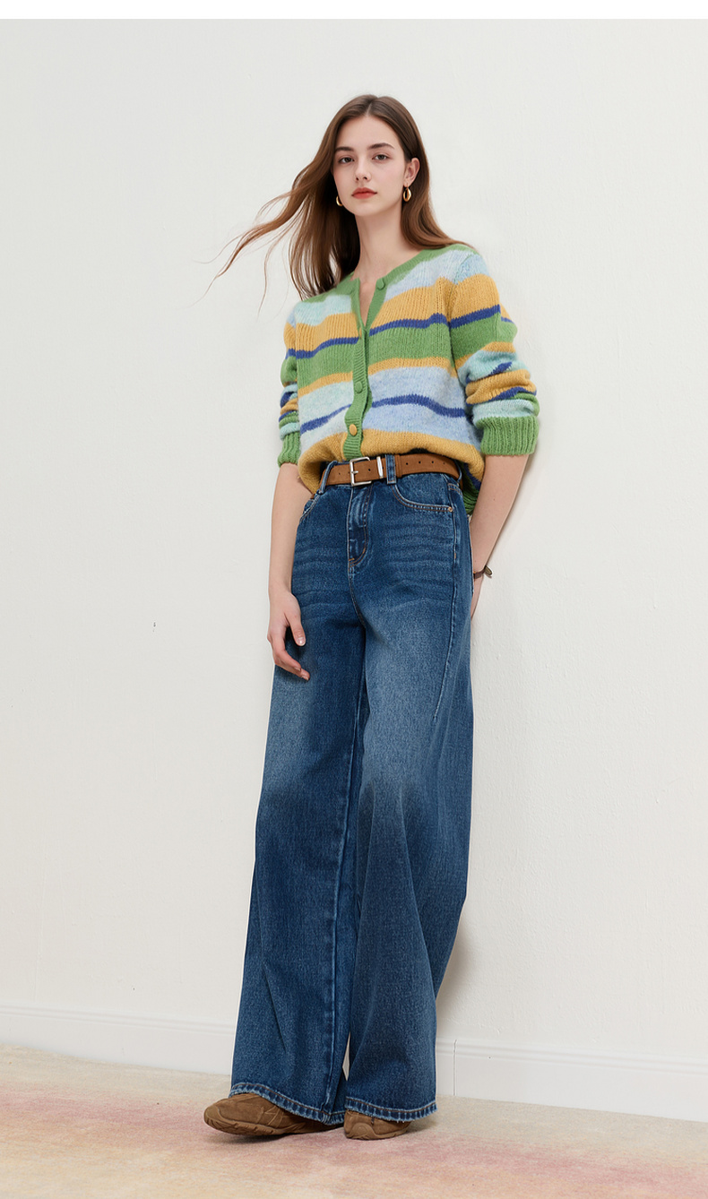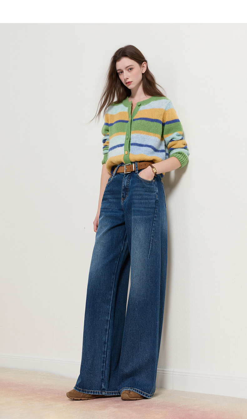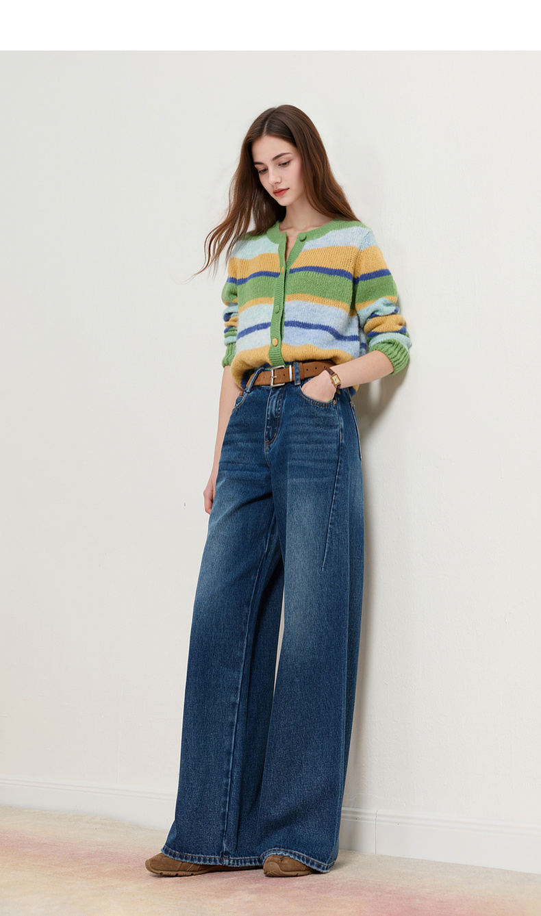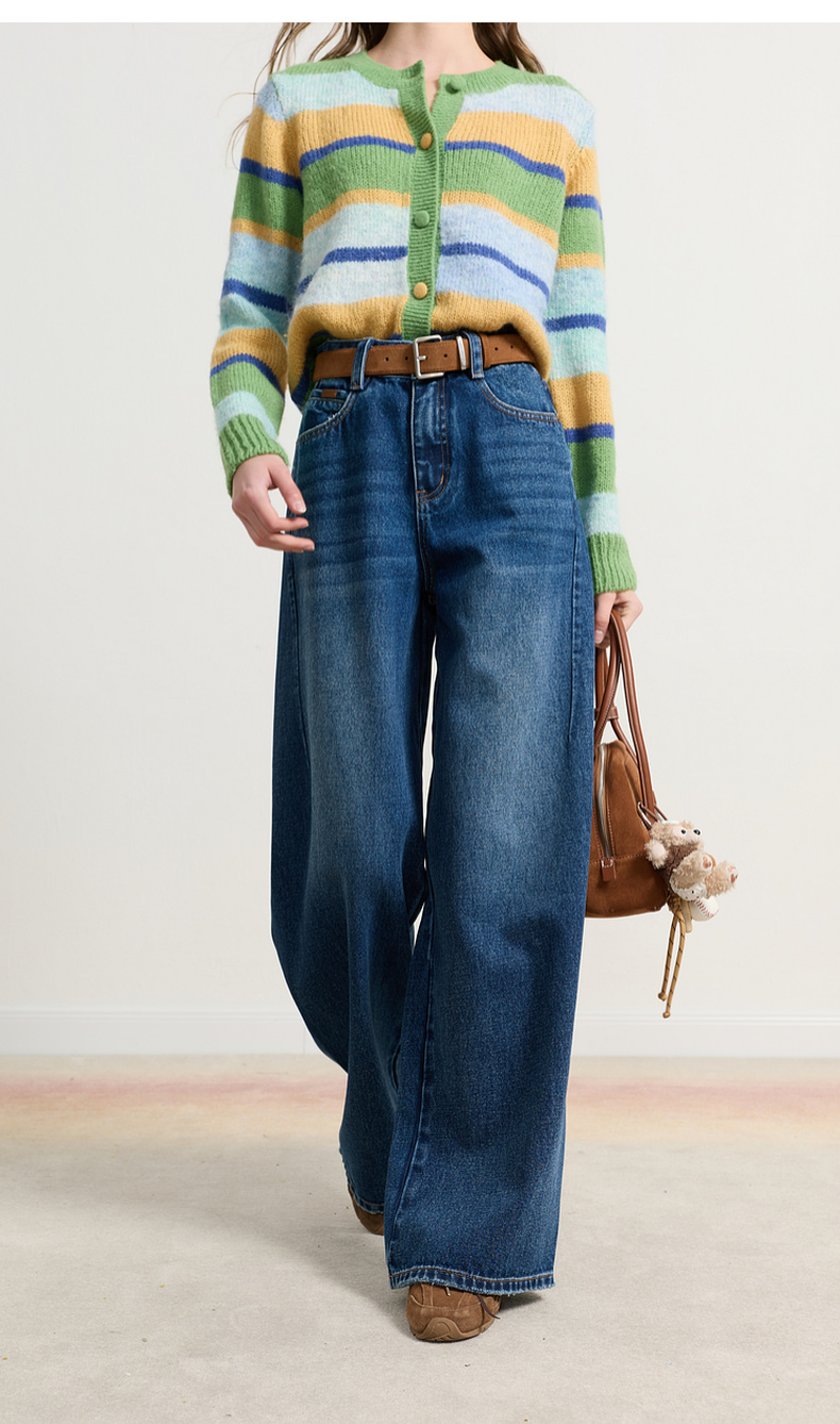 【莱赛尔】三彩2026春季新款高腰牛仔裤宽松休闲阔腿裤长裤显瘦M