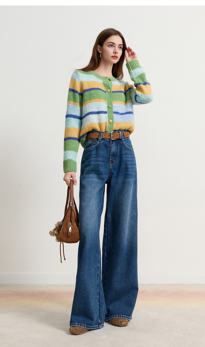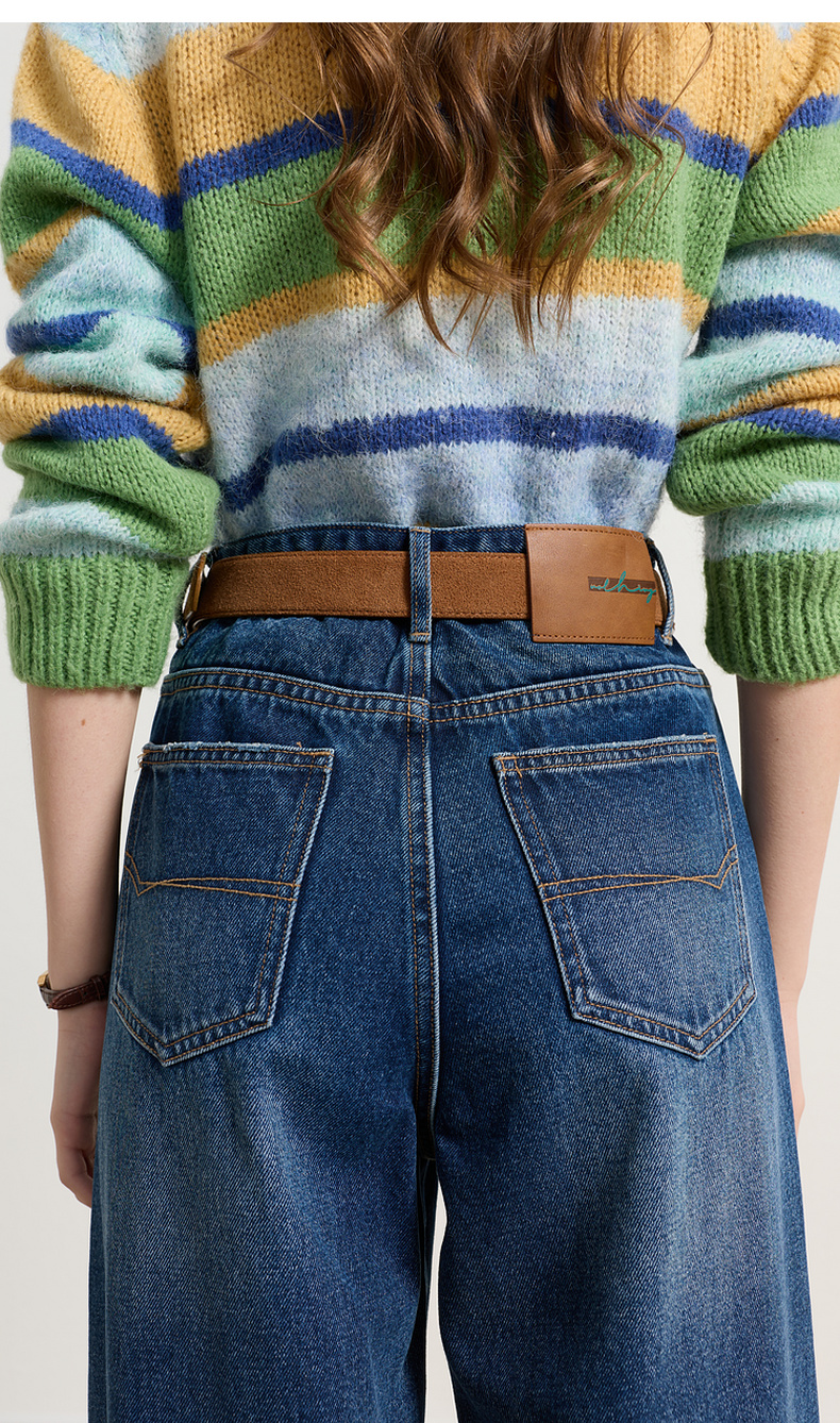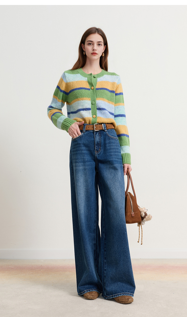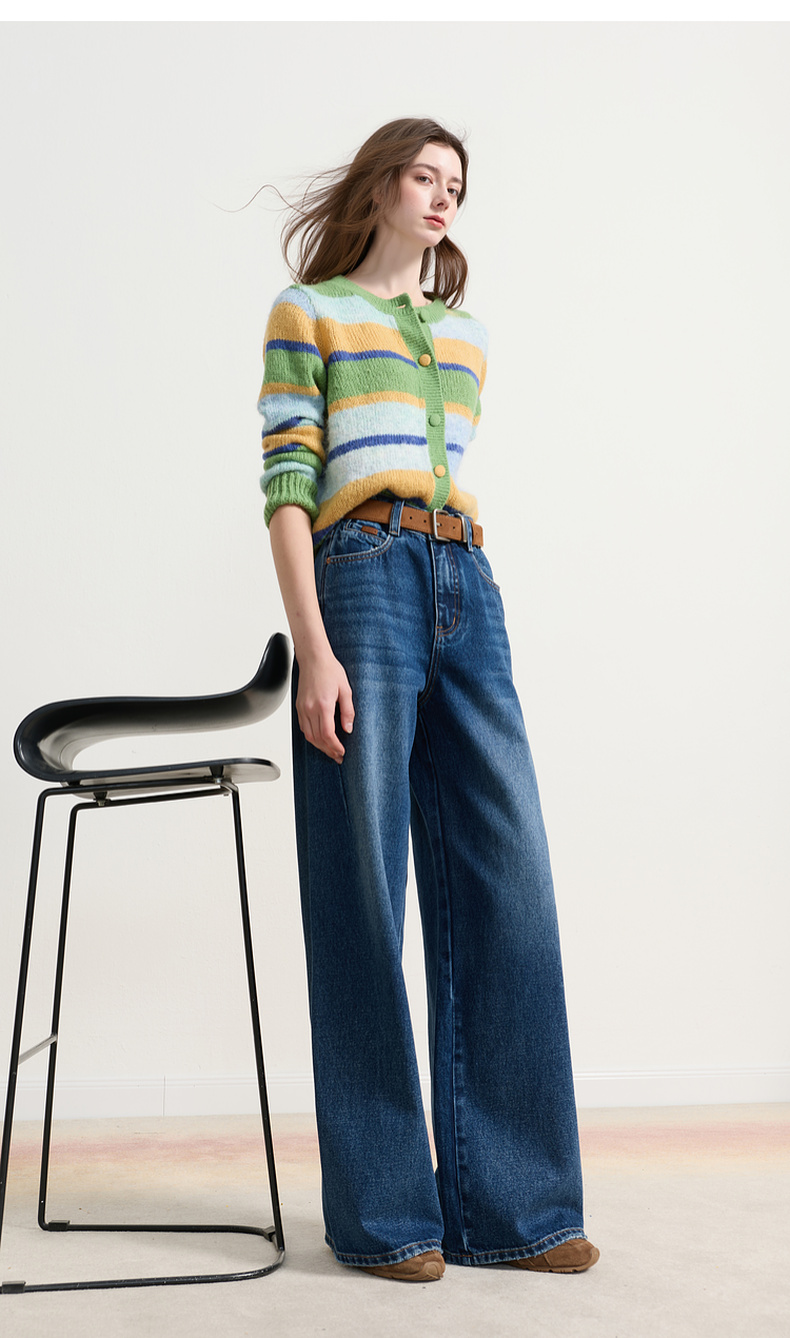 【莱赛尔】三彩2026春季新款高腰牛仔裤宽松休闲阔腿裤长裤显瘦M