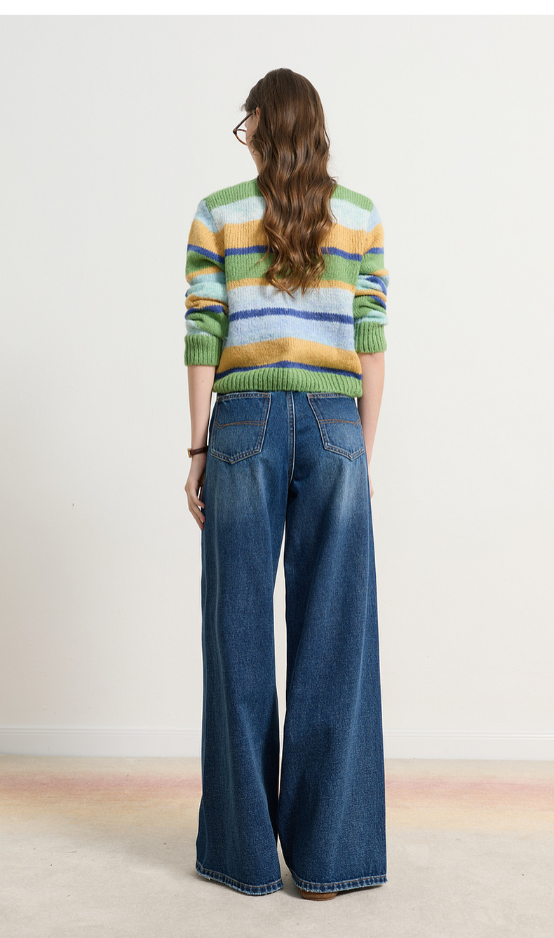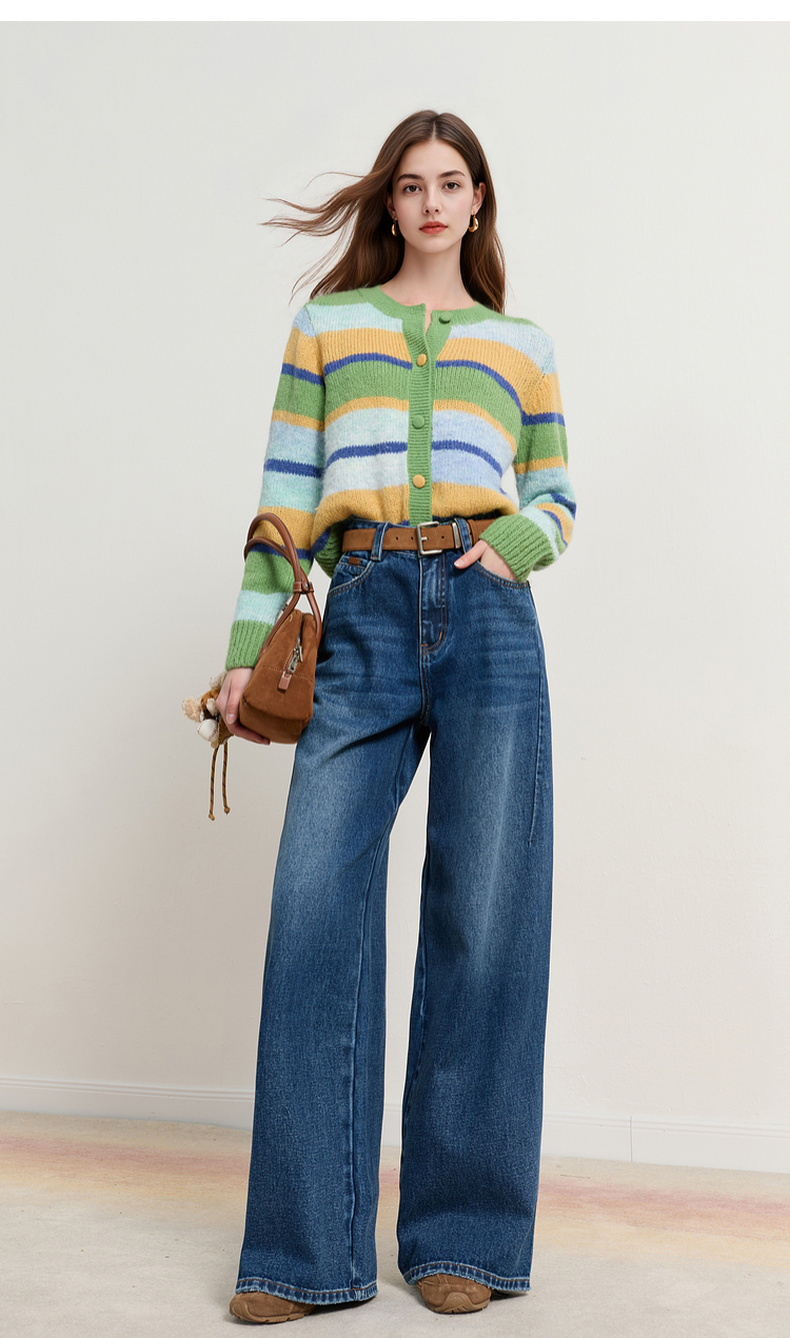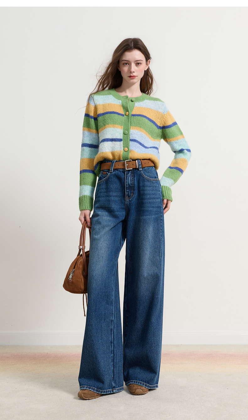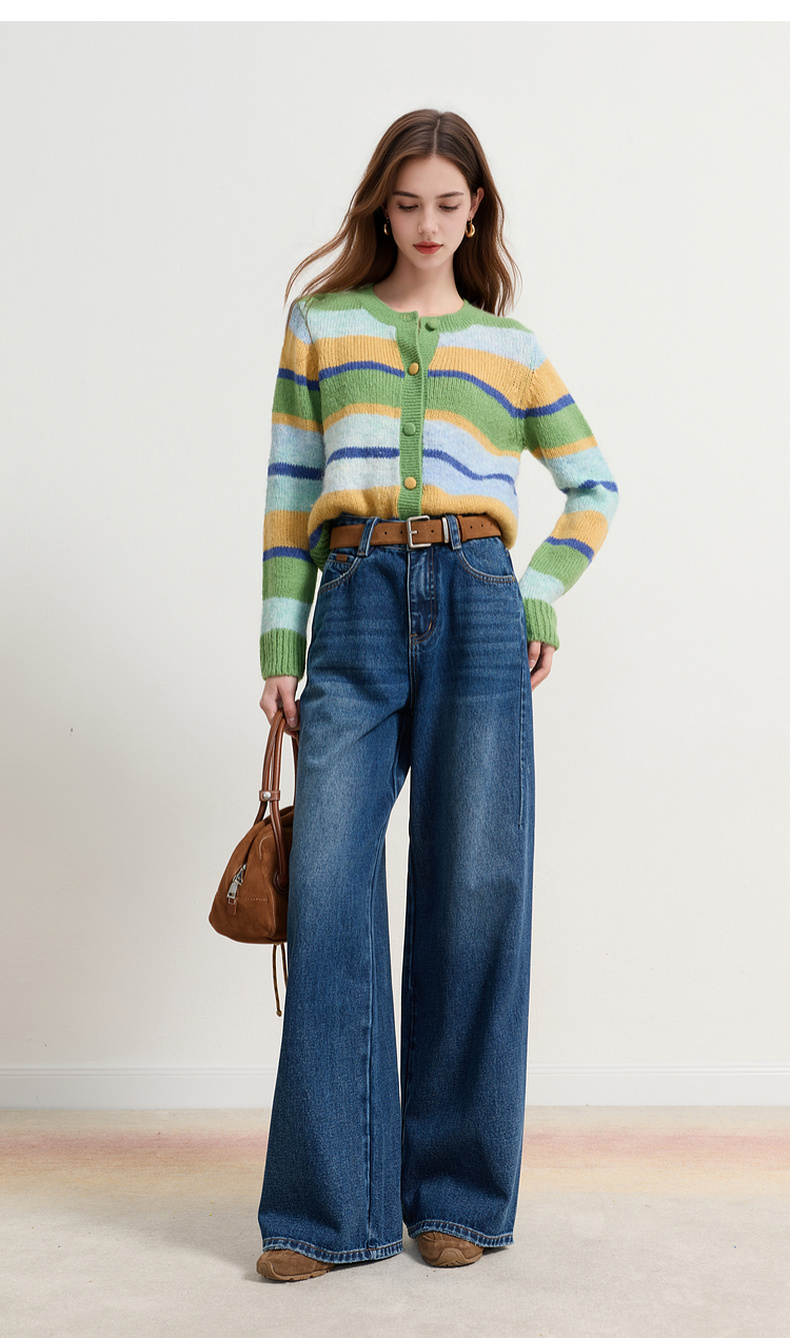 【莱赛尔】三彩2026春季新款高腰牛仔裤宽松休闲阔腿裤长裤显瘦M