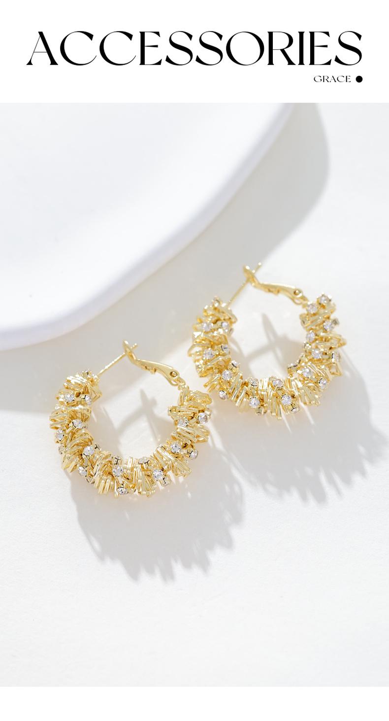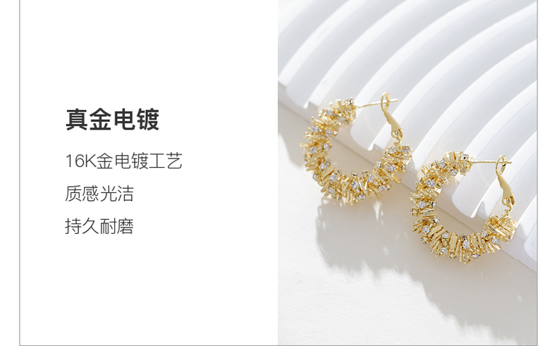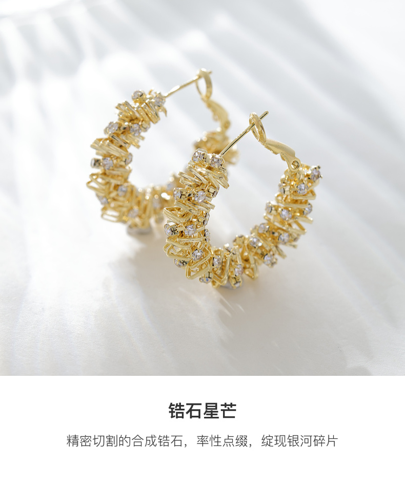 三彩2025新款碎金星芒耳环银针镂空编织轻奢锆石约会艺术女