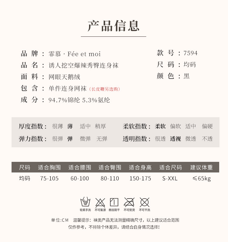 【情趣内衣】霏慕诱人挖空爆辣秀臀连身袜7594