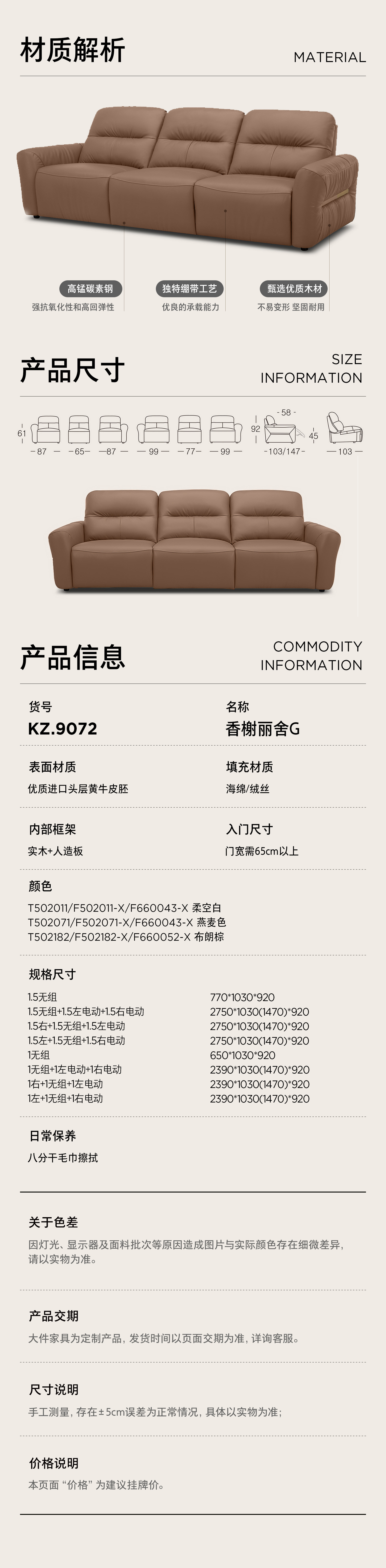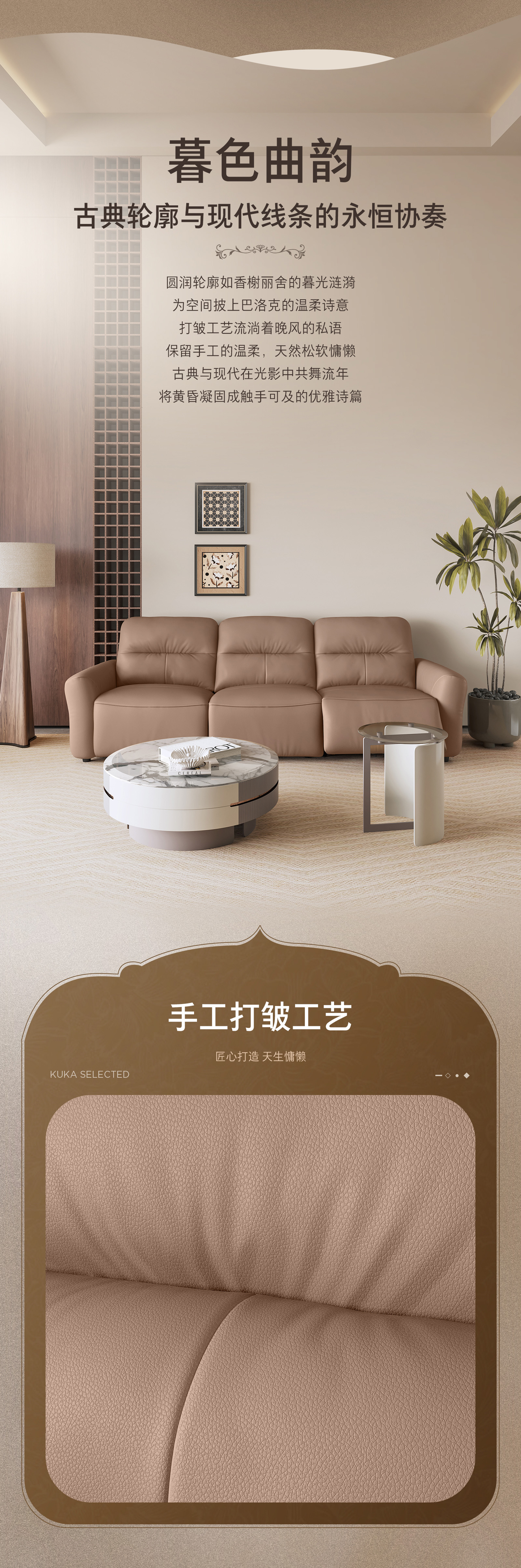 顾家家居整装 现代舒适皮艺功能沙发 KZ.9072香榭丽舍G