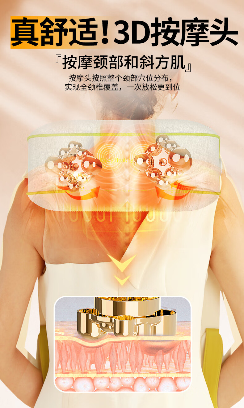 和正 颈椎按摩器揉捏肩膀脖子解放双手按摩热敷按摩仪 HZ-N1 商品图1
