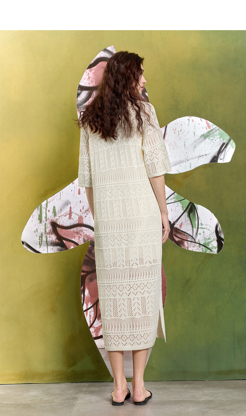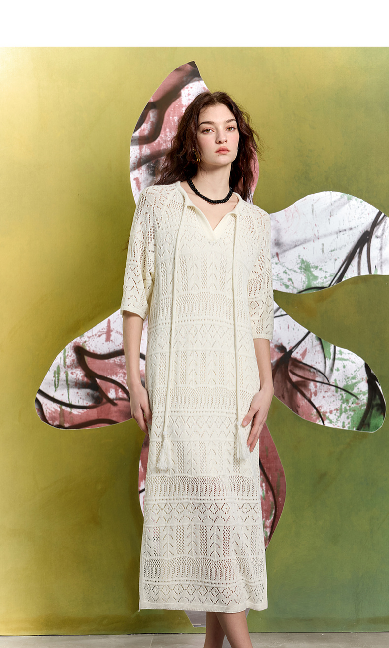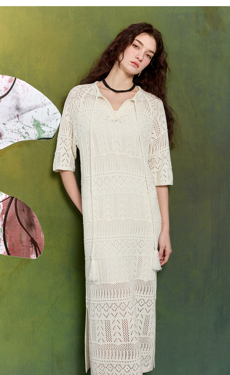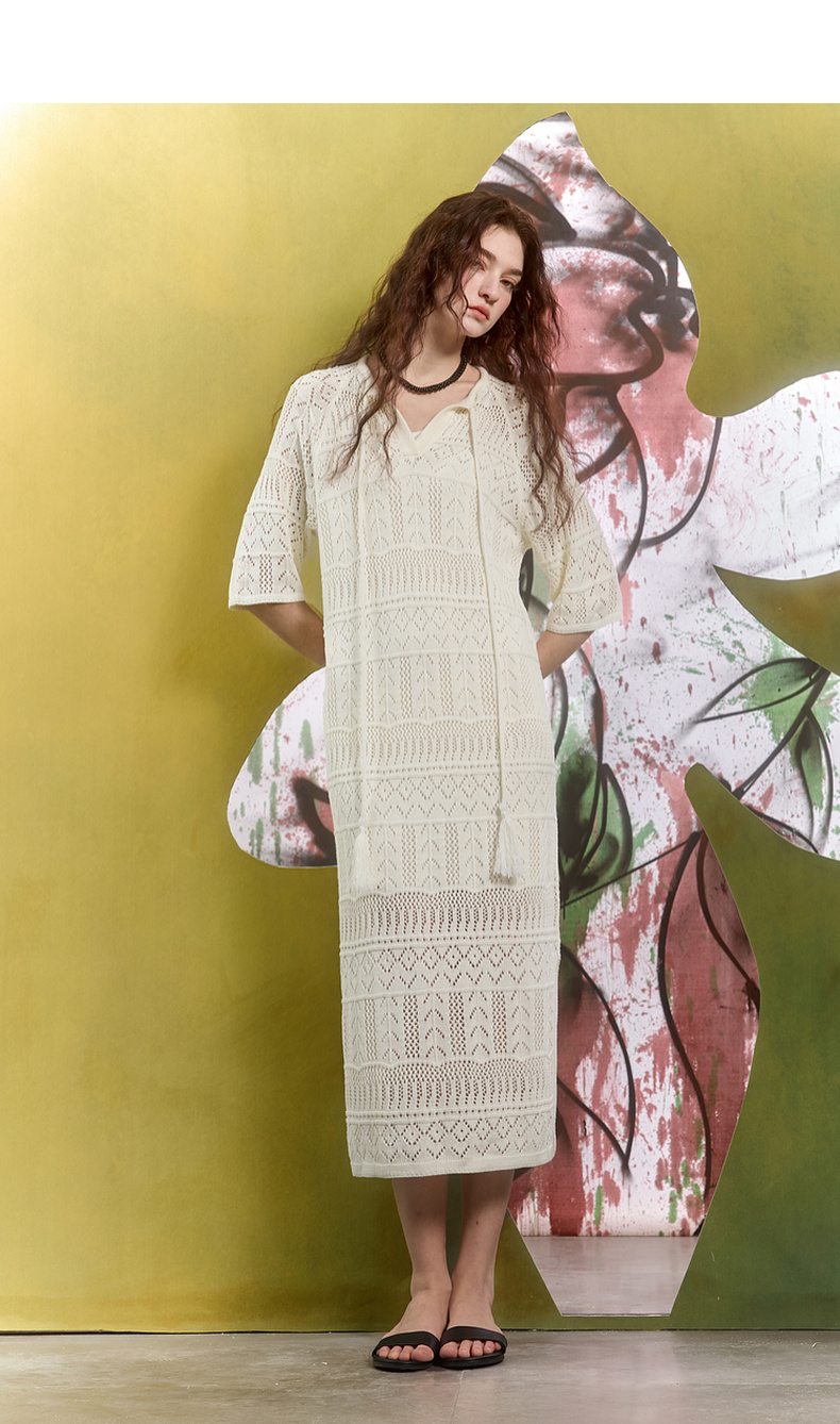 三彩2025春季新款镂空针织裙流苏连衣裙直筒裙长裙度假风S