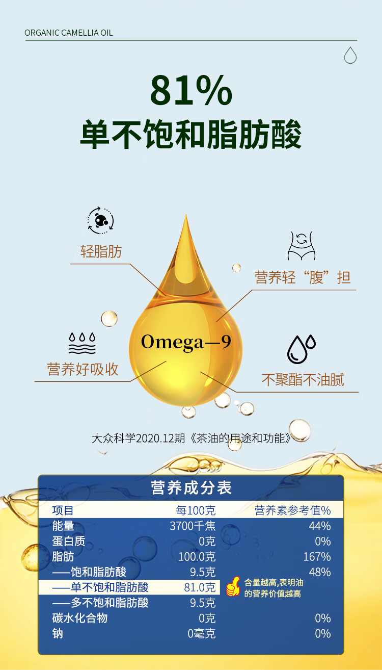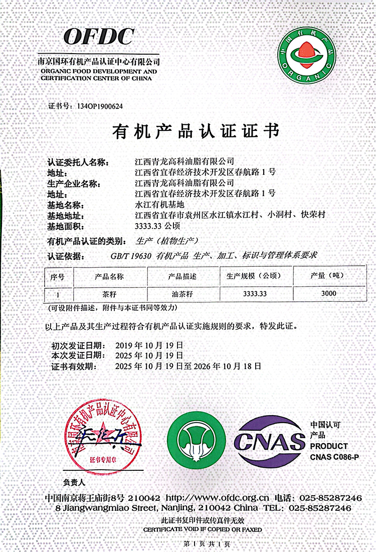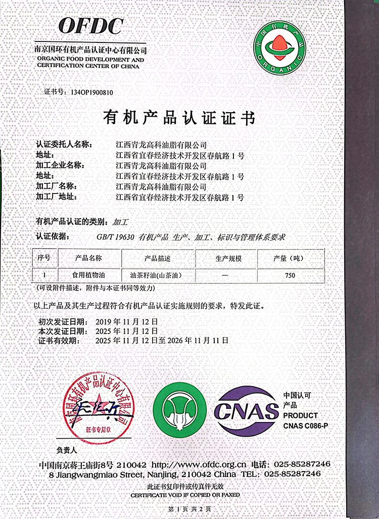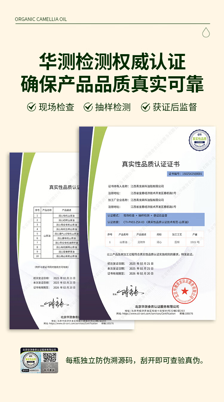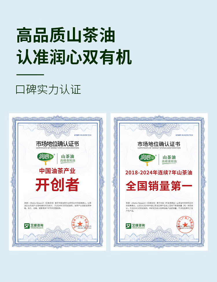 润心有机生榨山茶油750ml*2