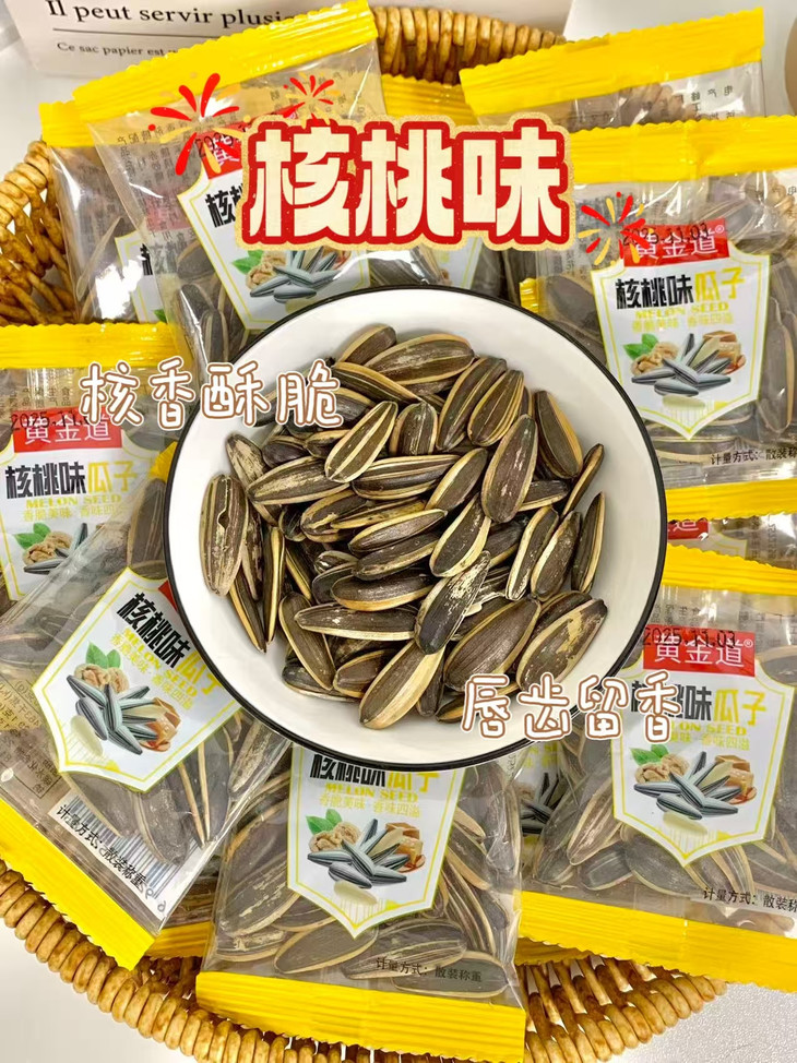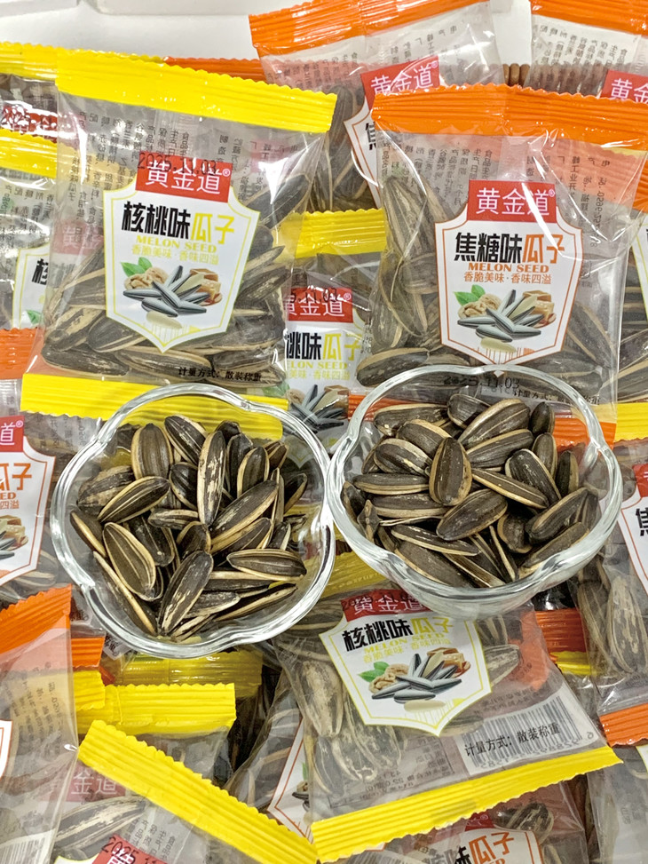 💰19.9到手50包【手抓包瓜子】🥳核桃味➕焦糖味任选👇大颗粒果仁实在,一口一个嘎嘣脆💥皮薄易嗑不费牙🦷百煮入味越嚼越香😋 ✅甄选优质大盘葵花籽为原料🌻扎实饱满,颗粒比普通瓜子大一圈📏