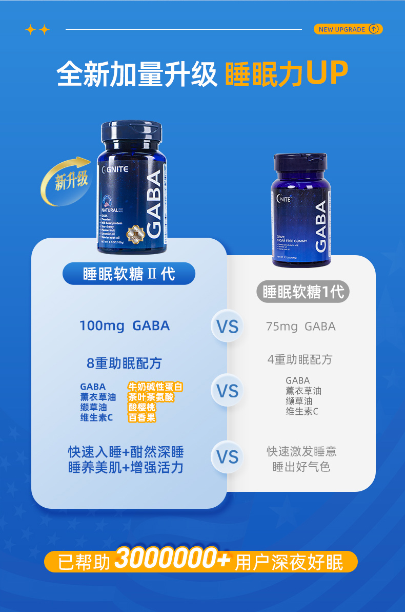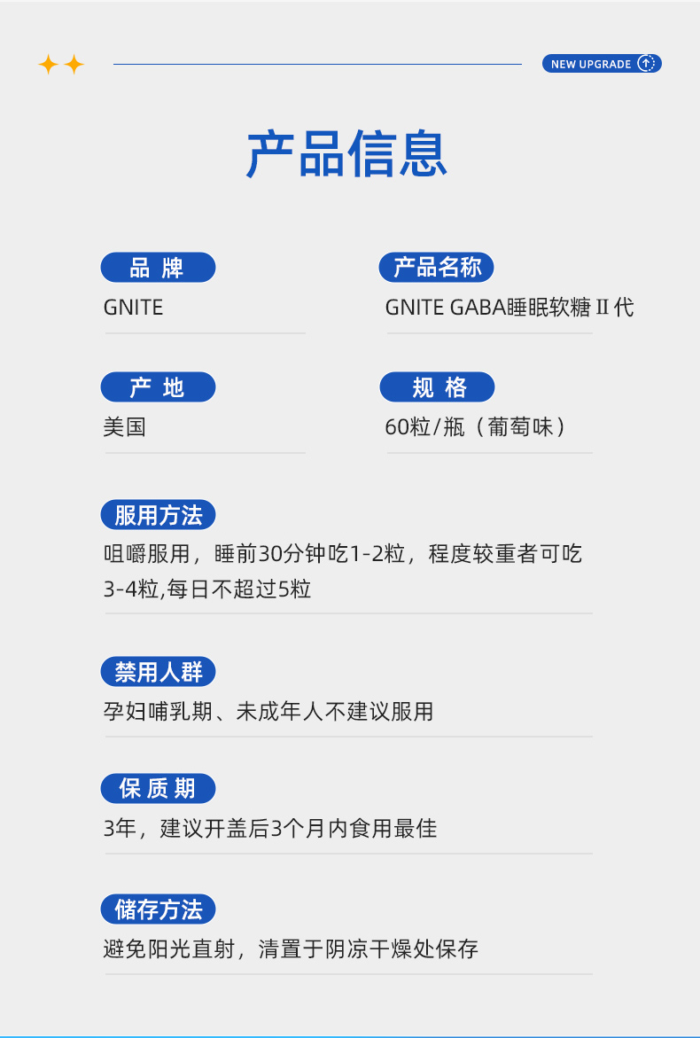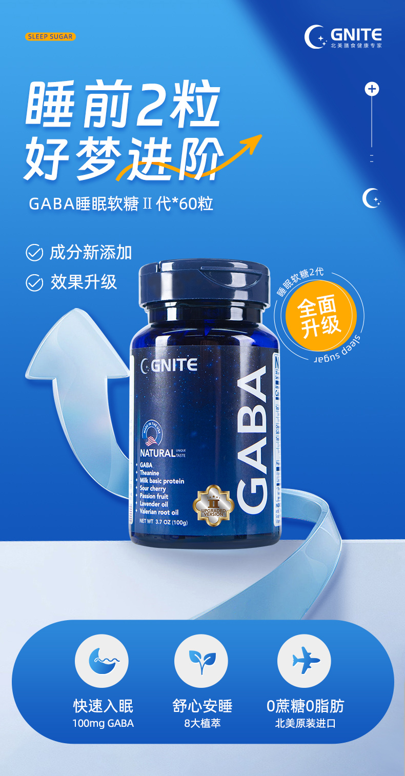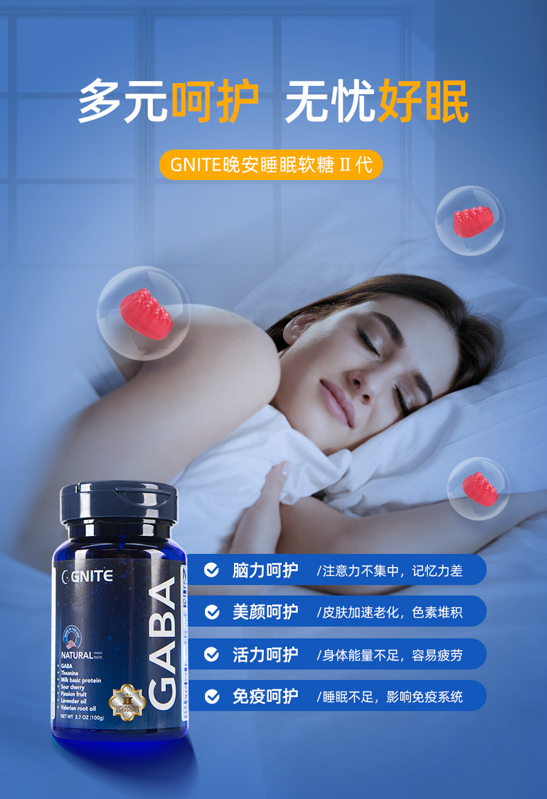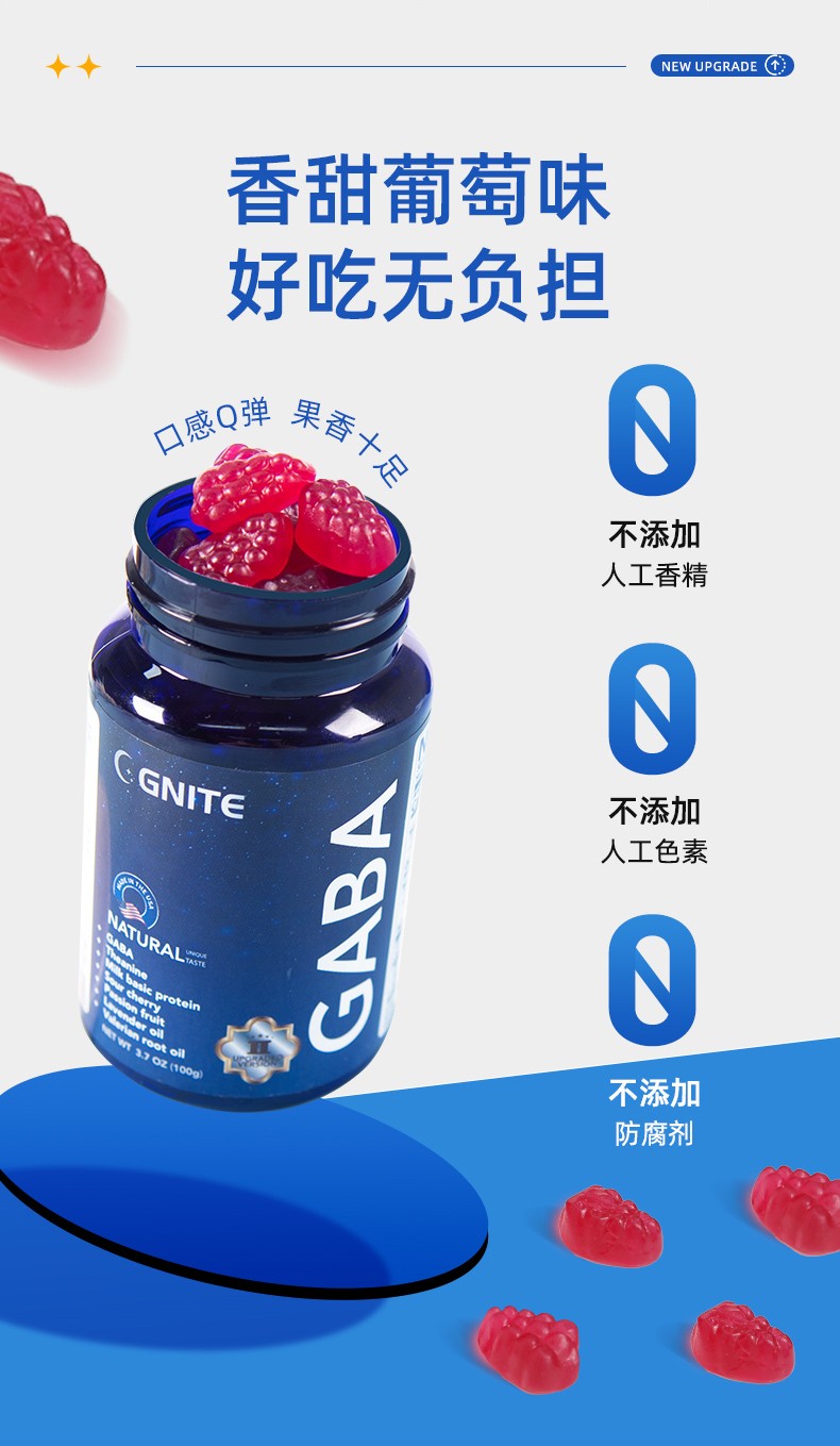 【赠:体验装一袋和一个药盒】美国GNITE GABA 睡眠软糖2代 60粒/瓶 葡萄味 效果升级 守护安心睡眠