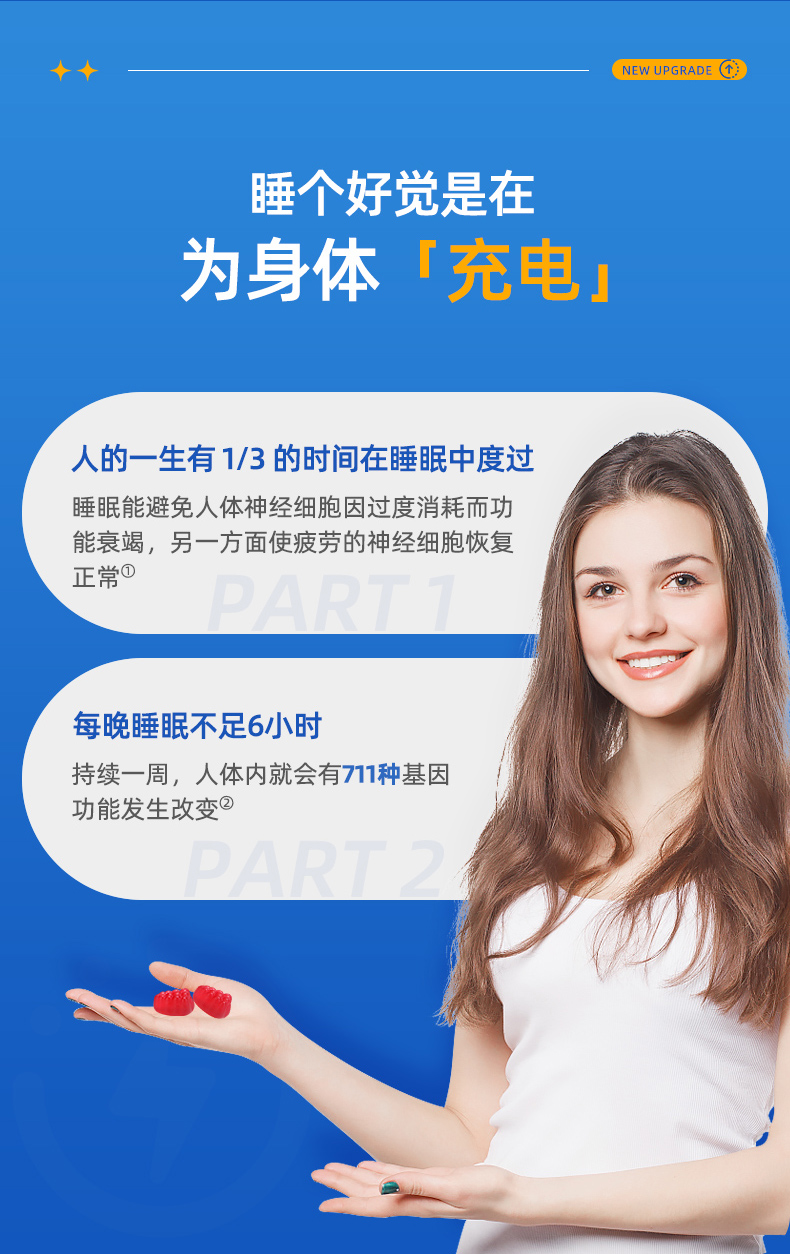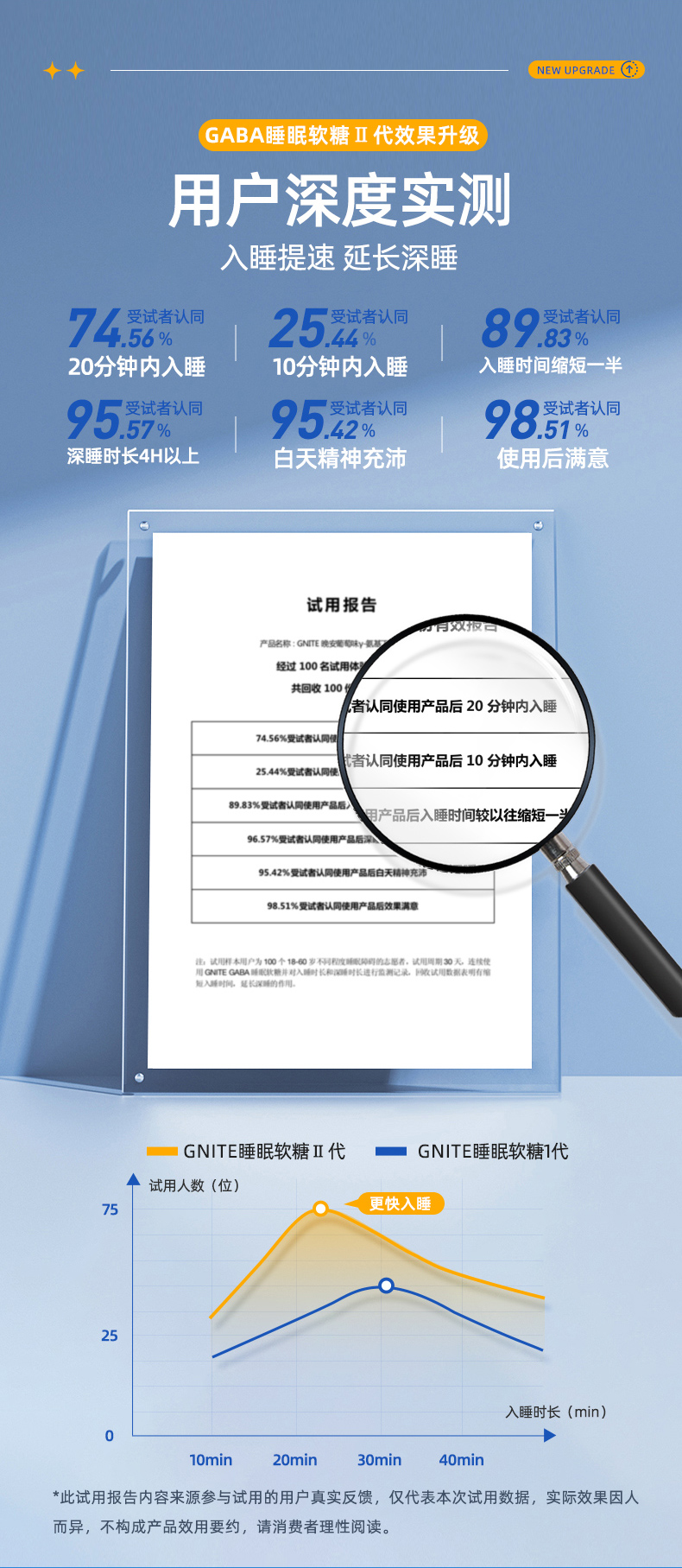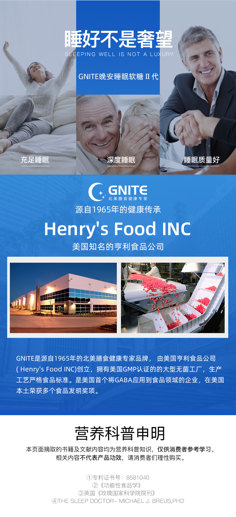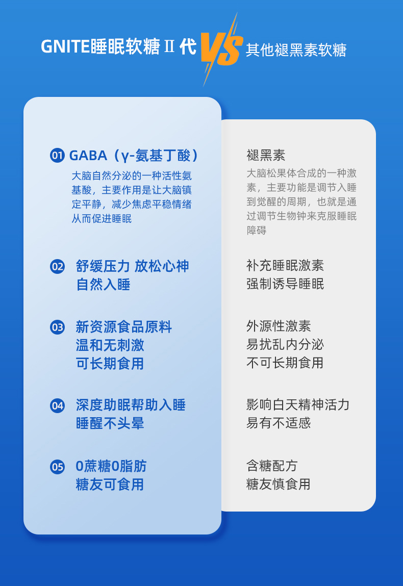 【赠:体验装一袋和一个药盒】美国GNITE GABA 睡眠软糖2代 60粒/瓶 葡萄味 效果升级 守护安心睡眠