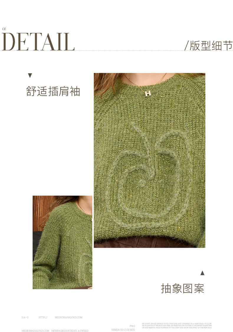 【社群秒杀】三彩2025冬季新款针织衫圆领插肩袖毛衫宽松套头衫上衣复古M