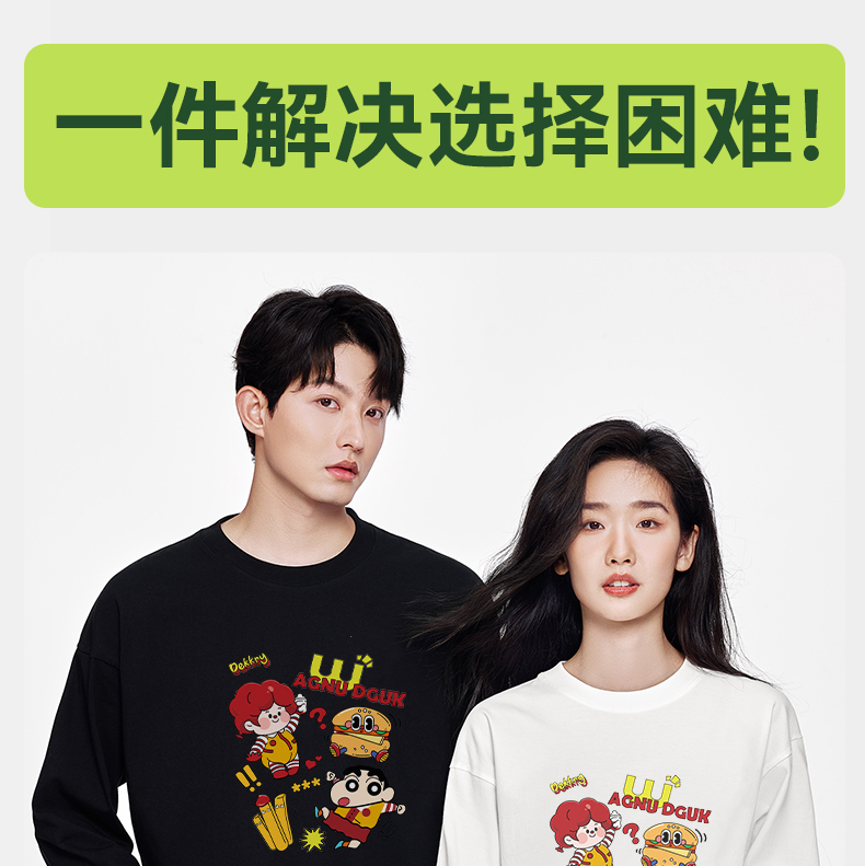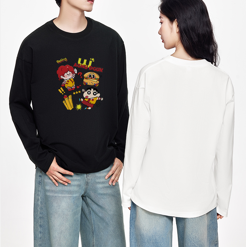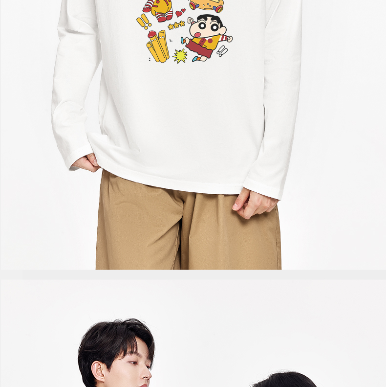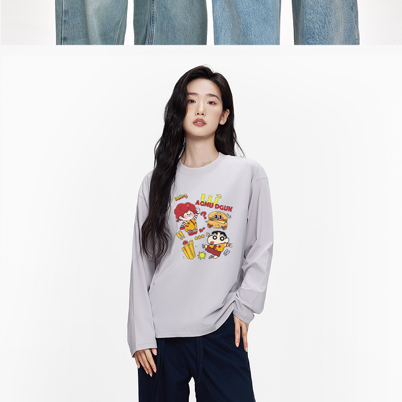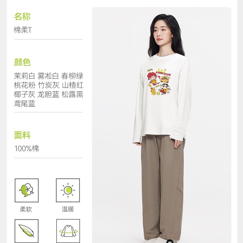 「棉的美学」纯棉圆领打底T恤春秋新款萌趣小新印花甜系百搭上衣