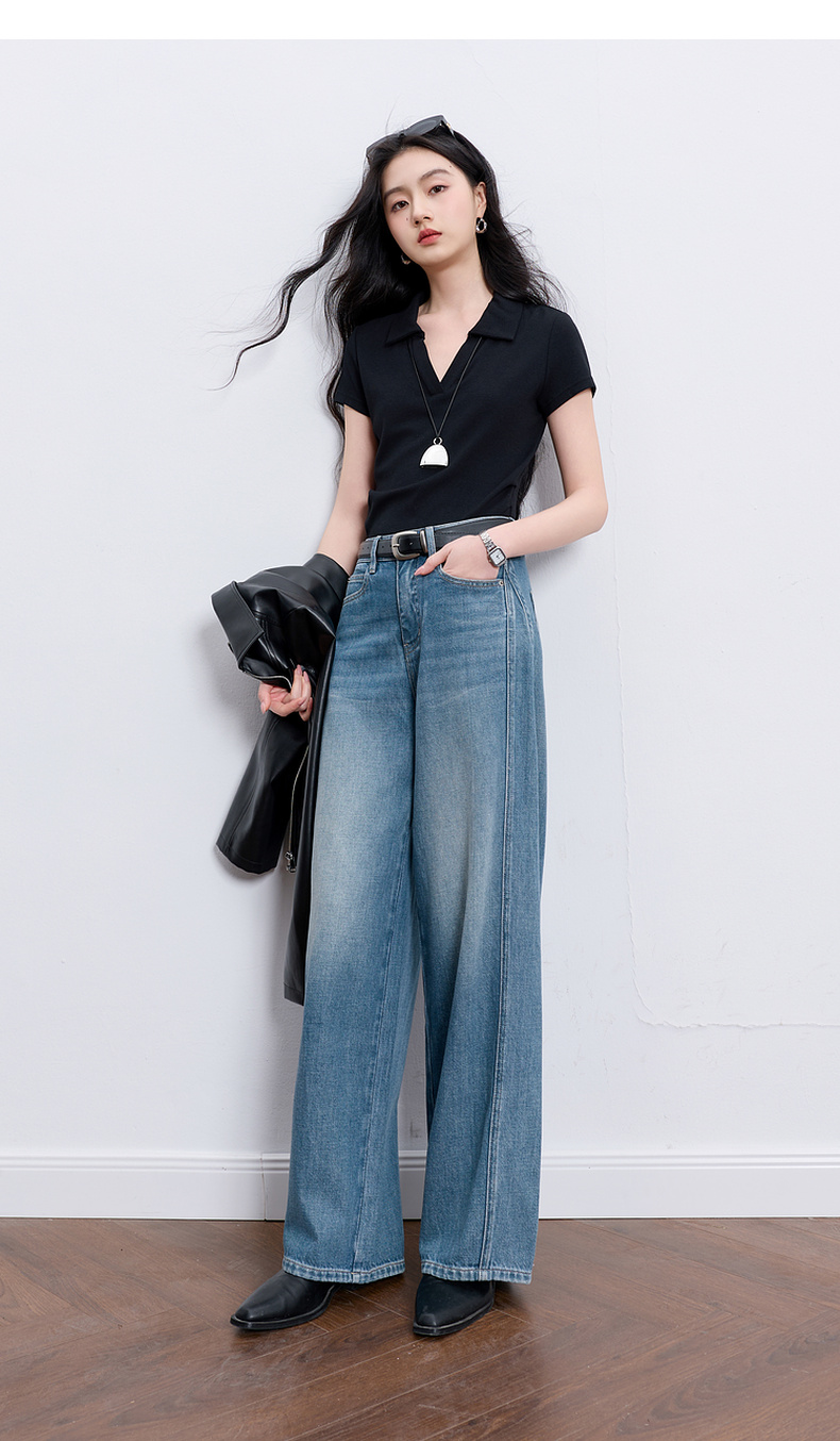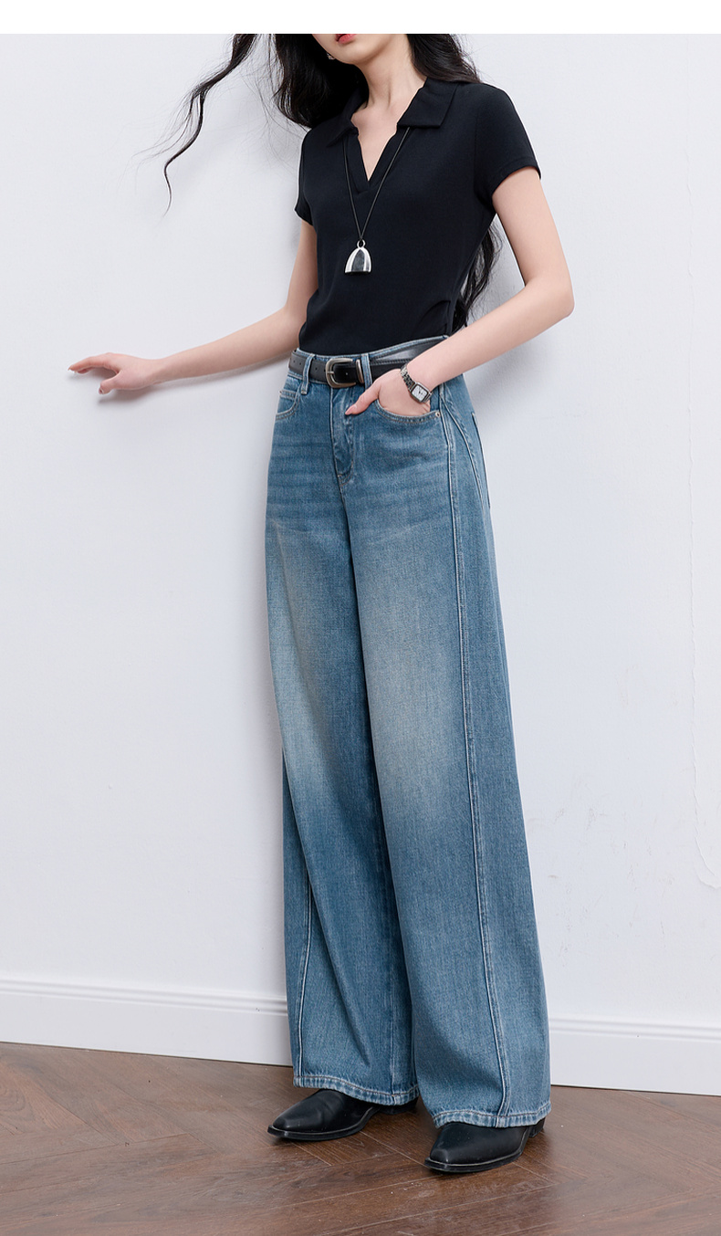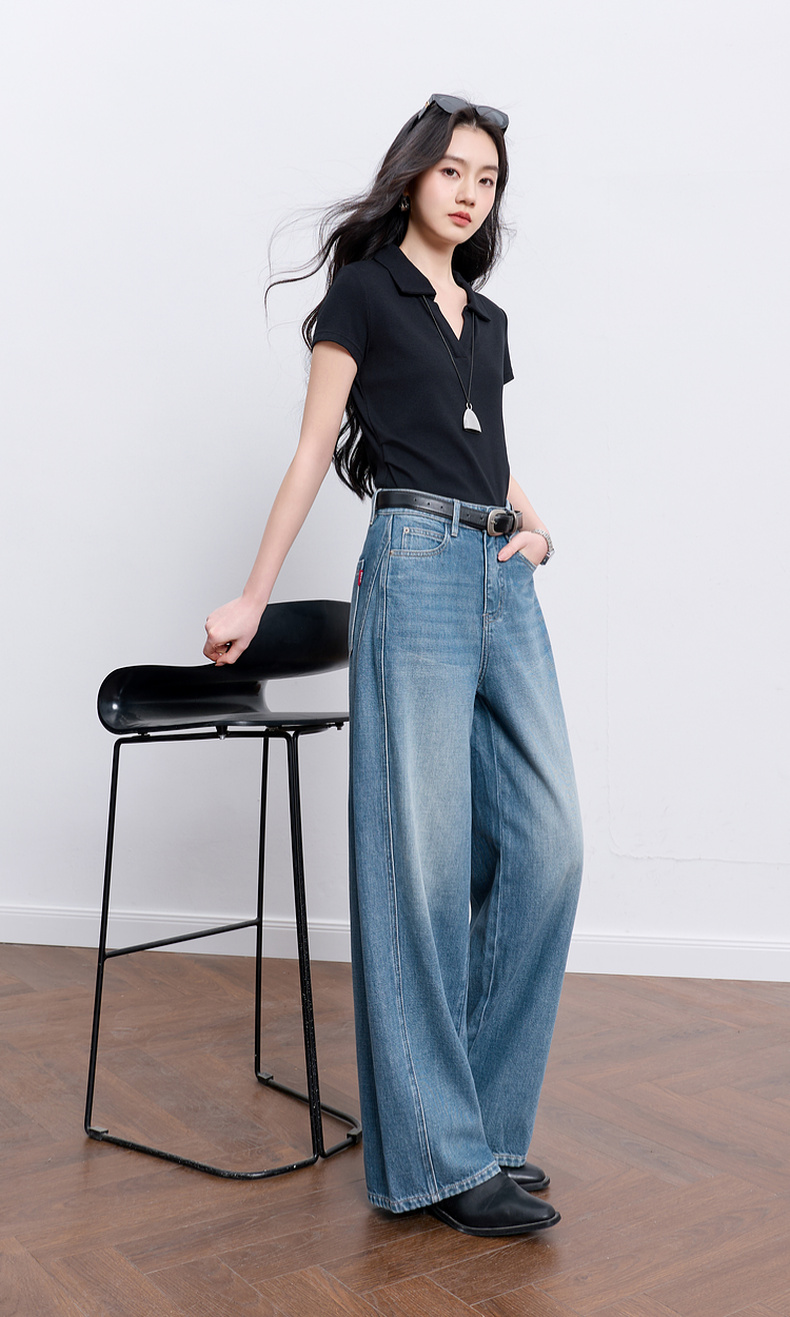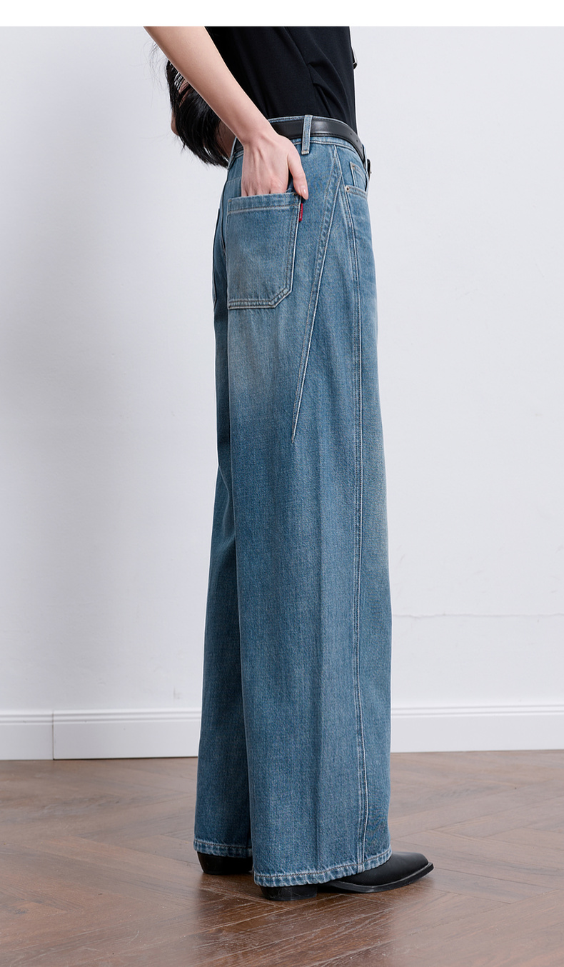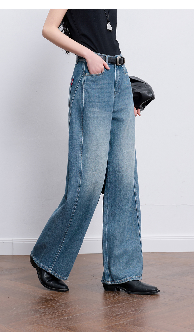 【100棉】三彩2026春季新款休闲牛仔裤宽松阔腿裤长裤复古M
