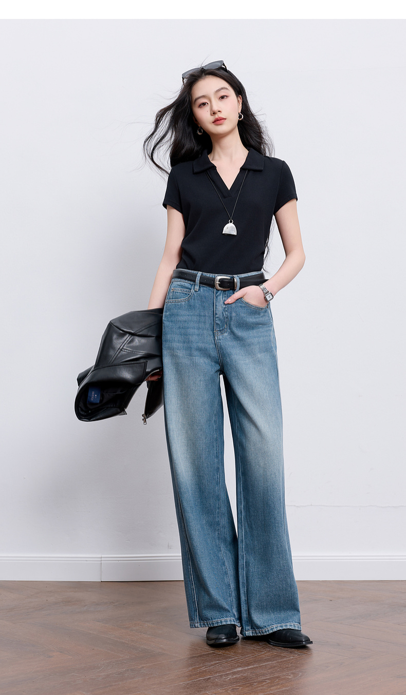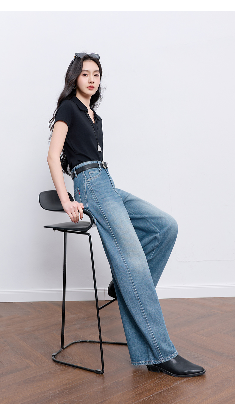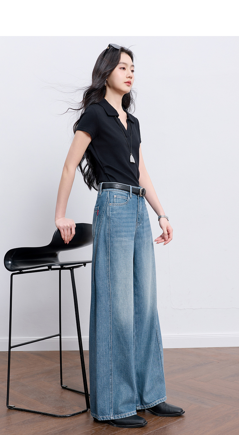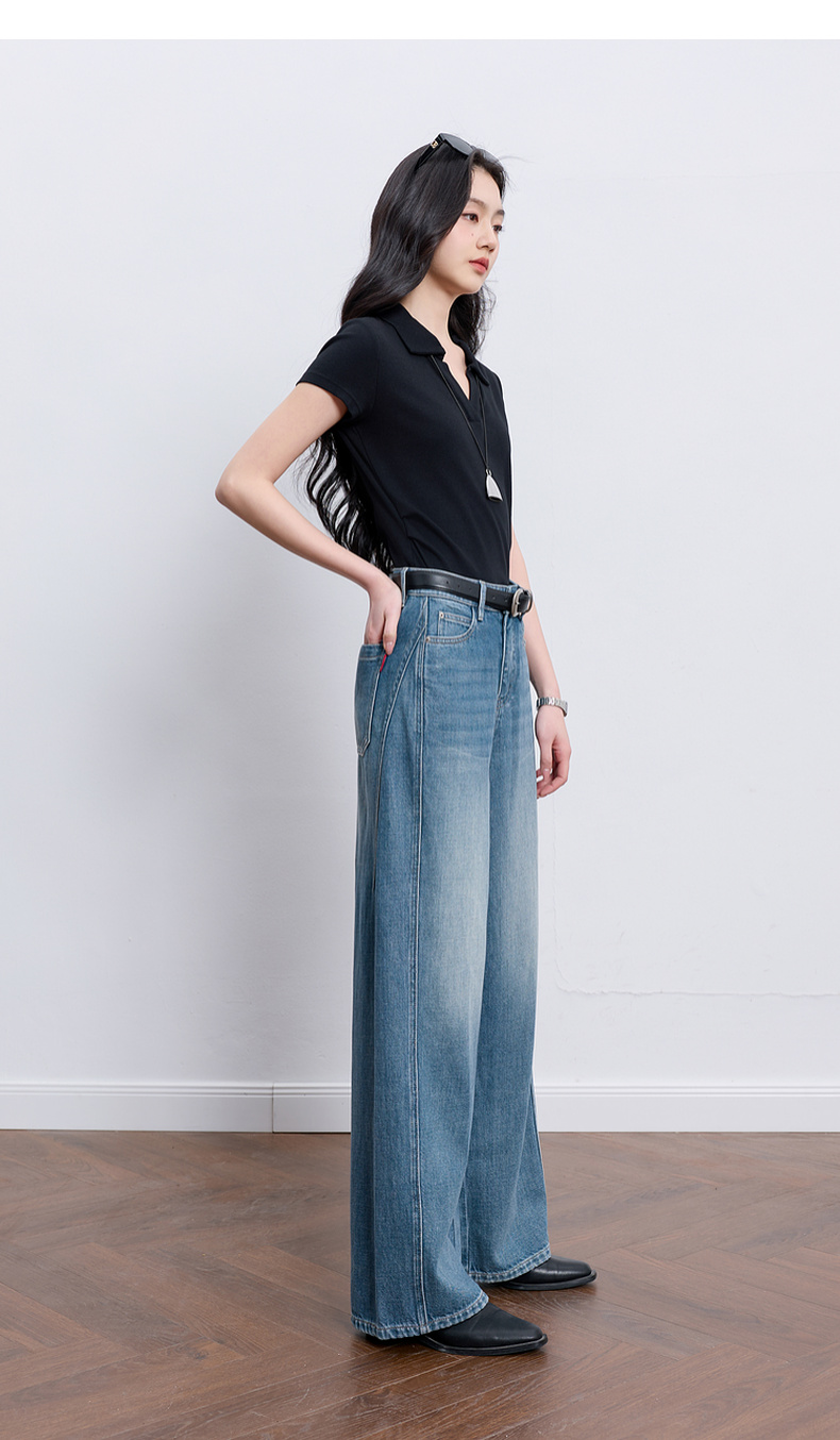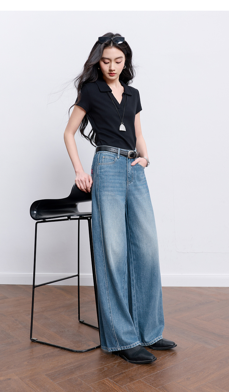 【100棉】三彩2026春季新款休闲牛仔裤宽松阔腿裤长裤复古M