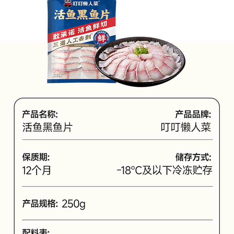 活鱼现切黑鱼片250g【叮叮懒热菜】 鱼片加量火锅水煮新鲜半成品少刺食材
