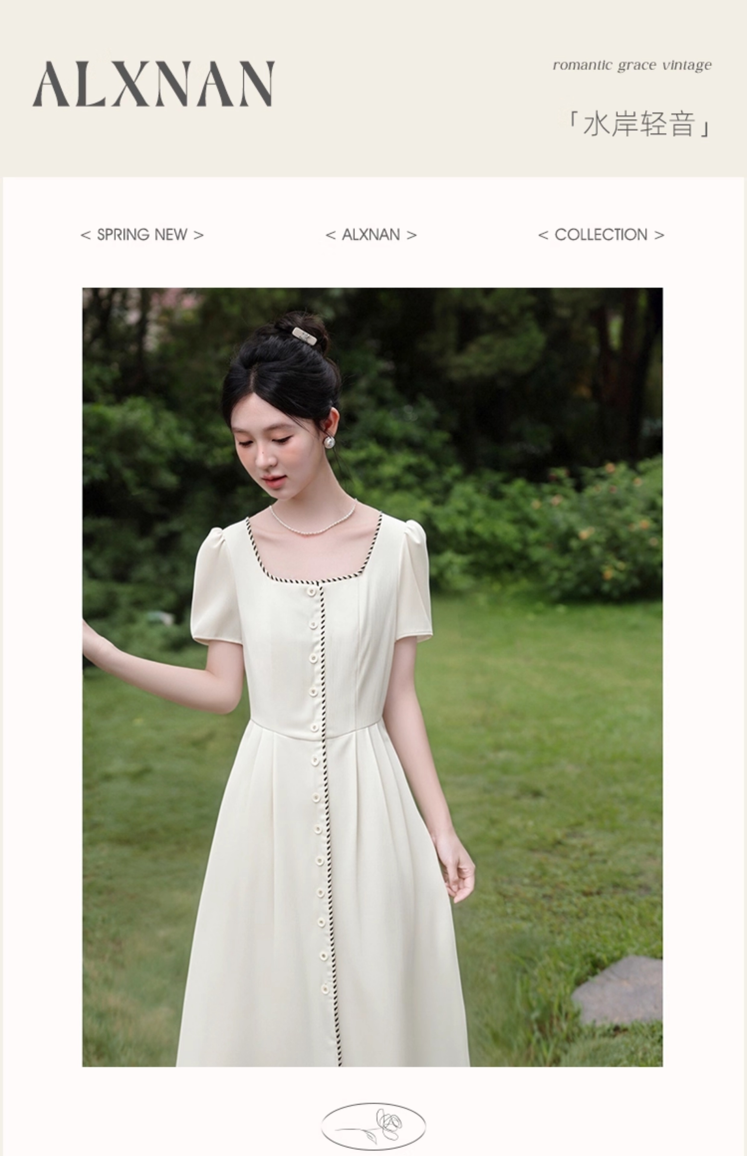 【65折秒杀】鹿向南「水岸轻音」夏季新款女短袖连衣裙设计感收腰显瘦杏色长裙DYL662009