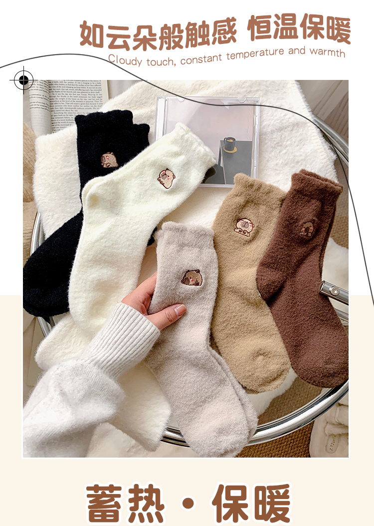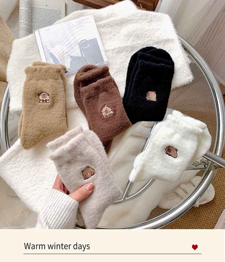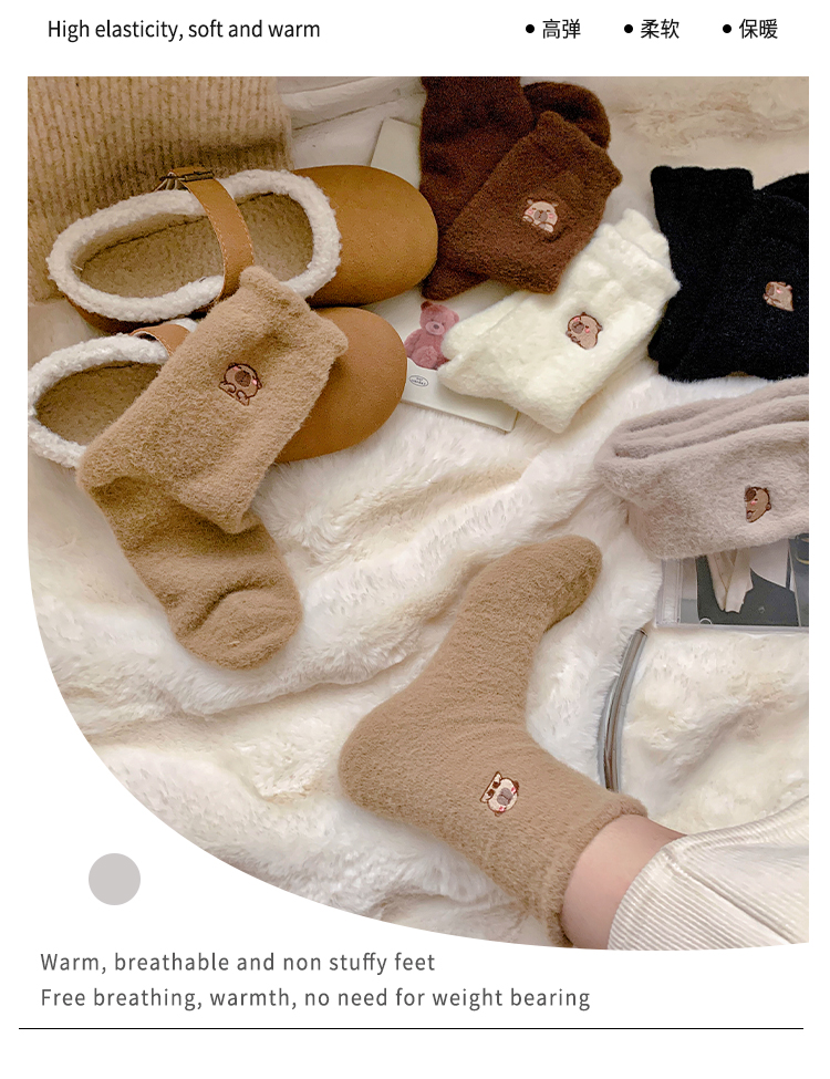 鹿鹿推荐 •冬日软绵绵袜!水豚卡皮巴拉秋冬中筒厚袜子【贴身衣物不退换】