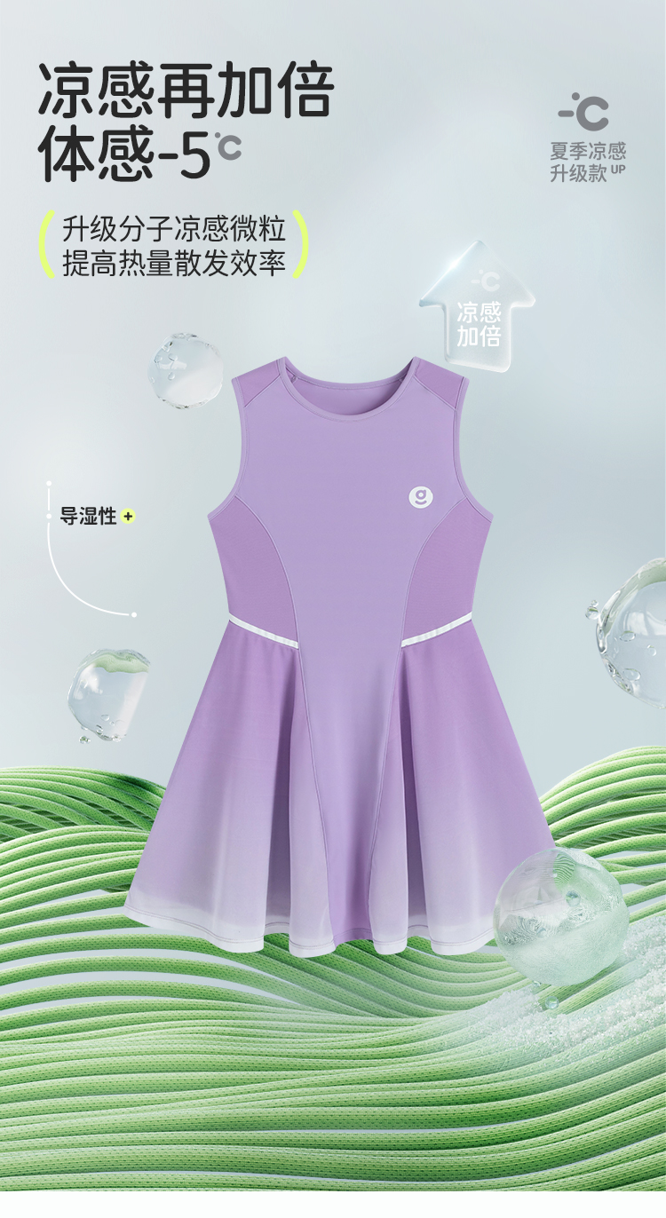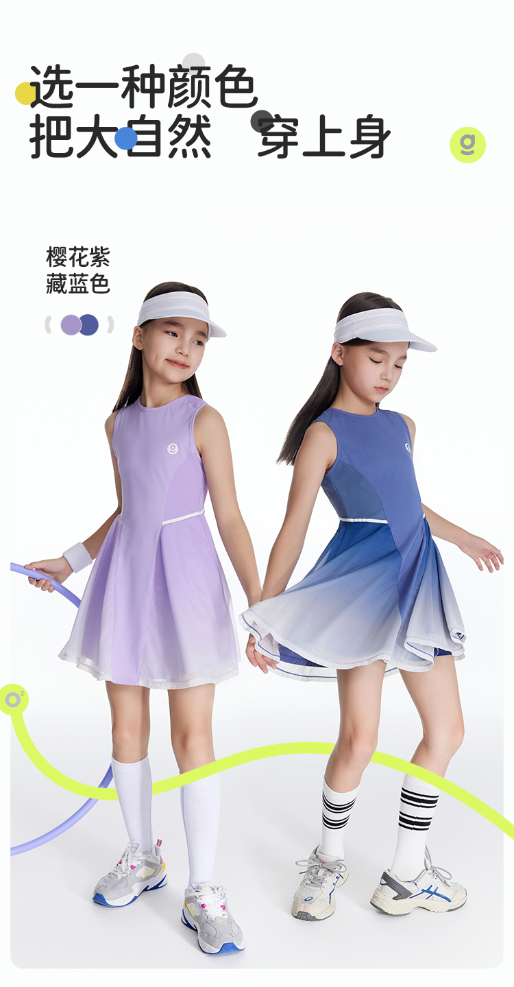 onmygame女童连衣裙无袖儿童夏运动透气网球裙子渐变色春装背心裙