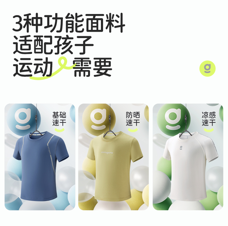 onmygame【轻凉风爽身衣 】男女童同款运动短袖