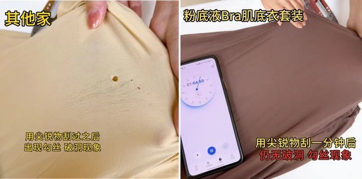 来看看别家的肌底衣,用剪刀、轻轻一刮就轻轻松松破洞、勾丝了。但是咱家的肌底衣可不一样,来回强力刮上两分钟,表面竟然没有任何变化,真的惊掉了我的下巴。