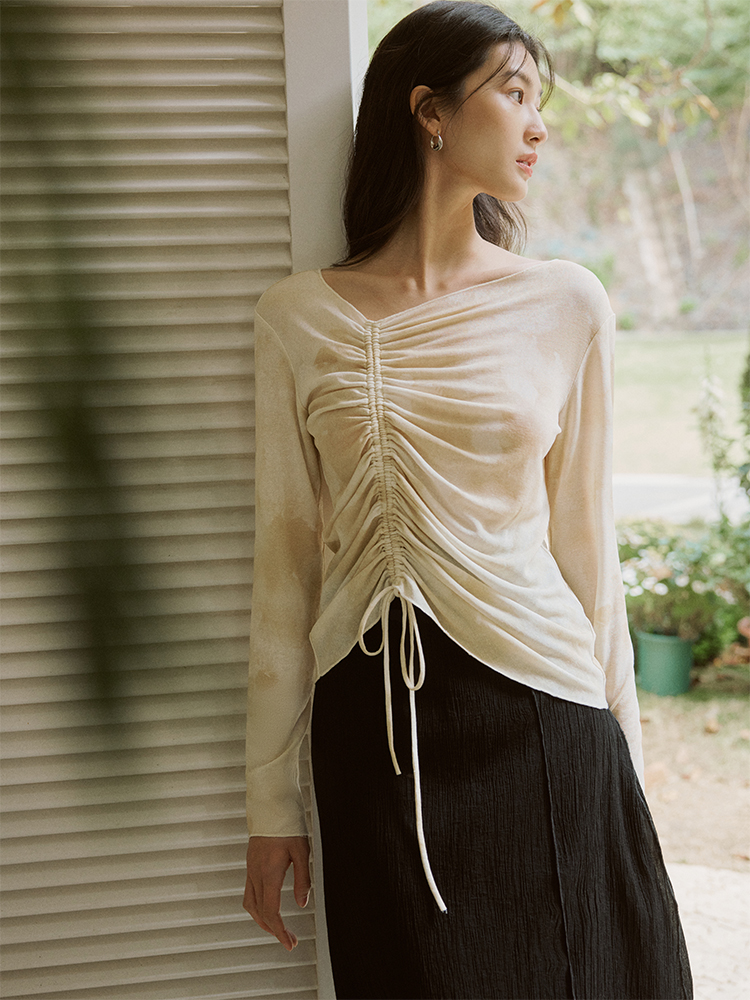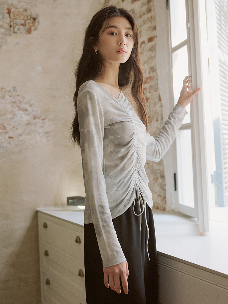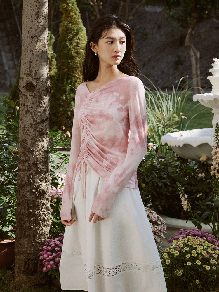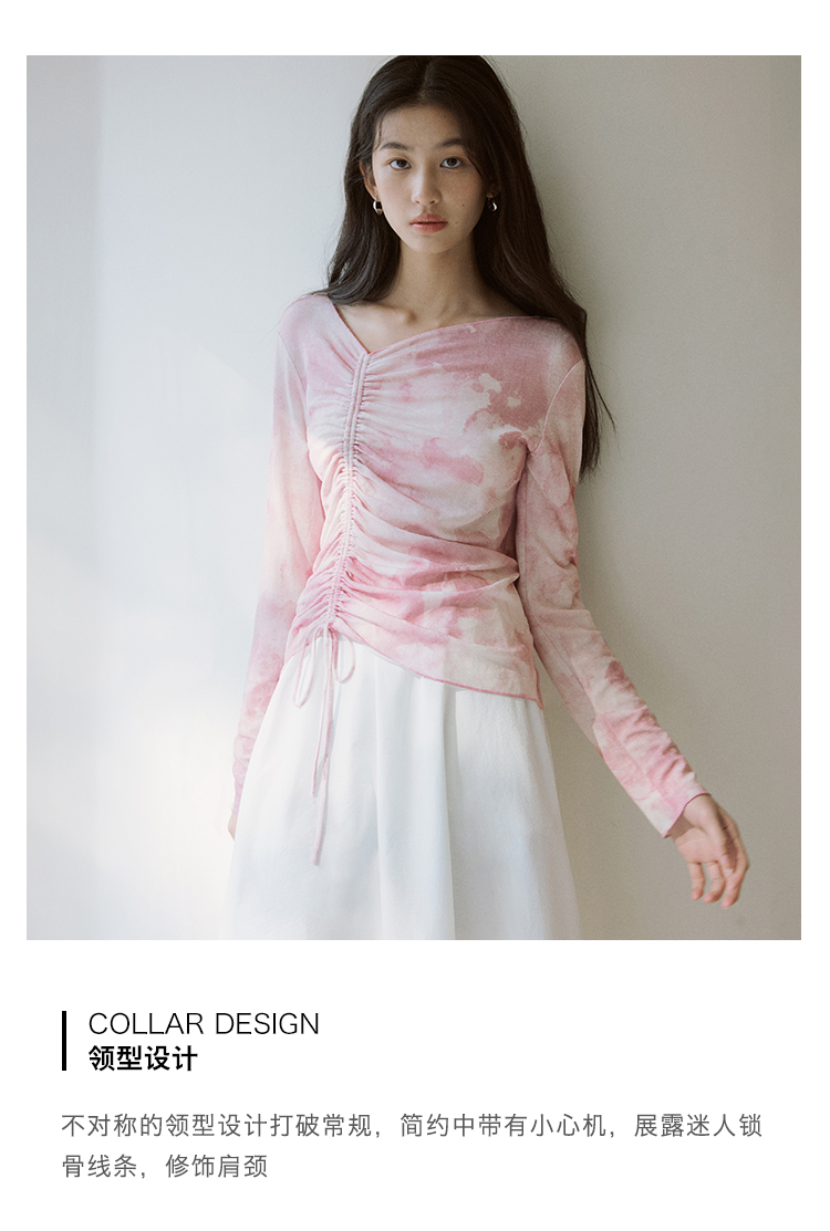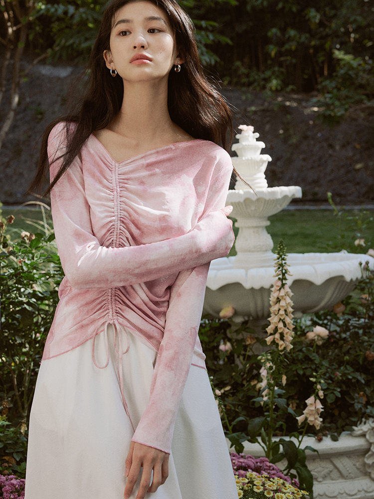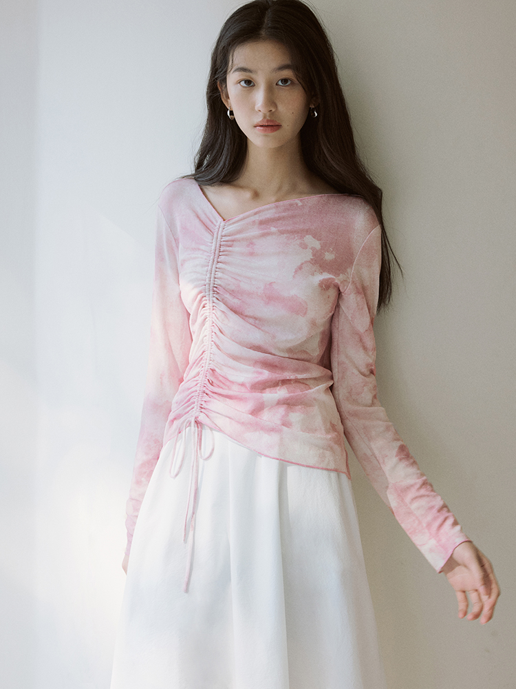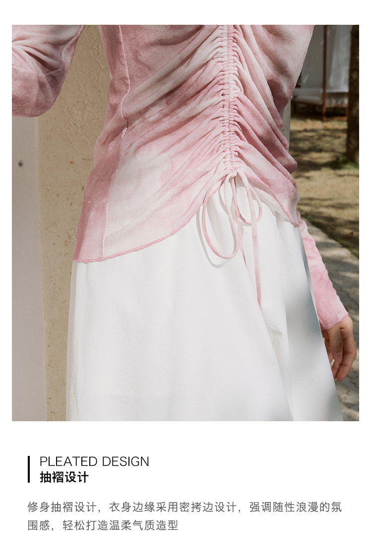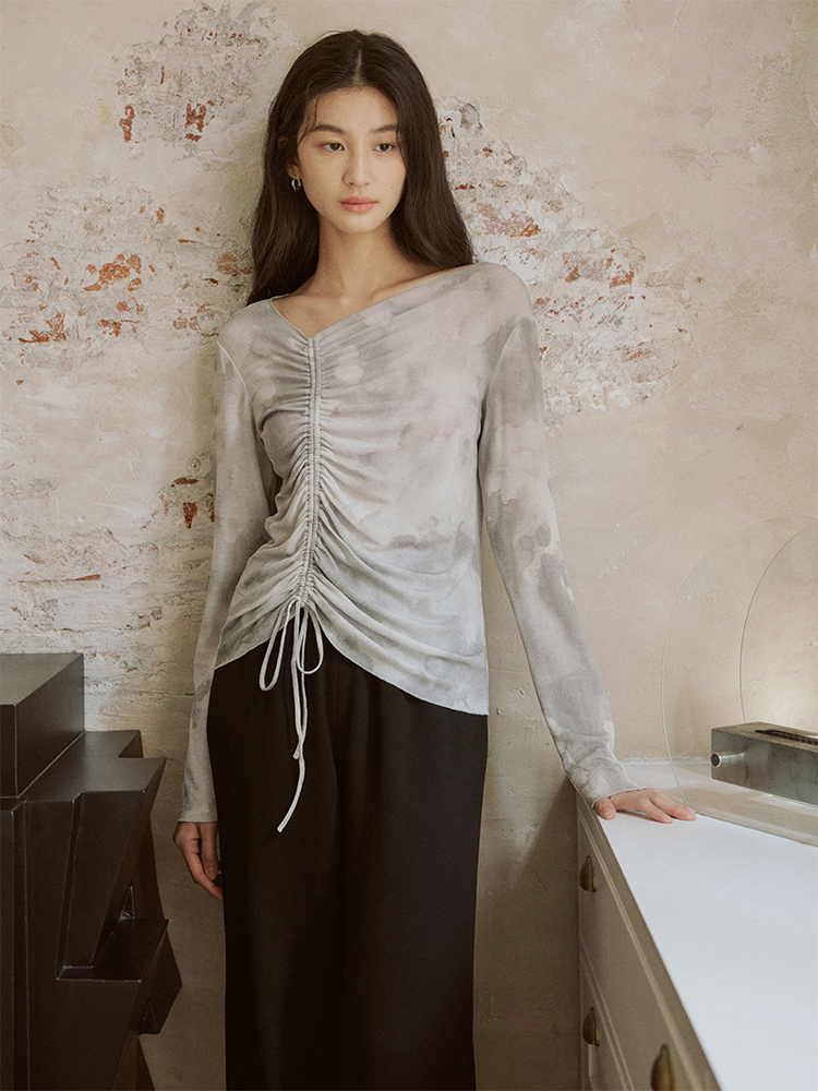 ForPoem 现货 24/SS原创设计春季新款 针织醋酸水墨晕染印花抽褶上衣