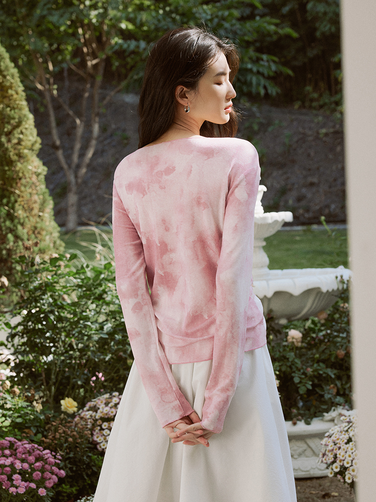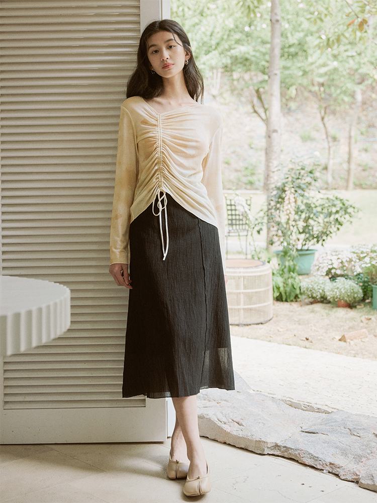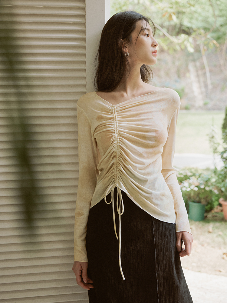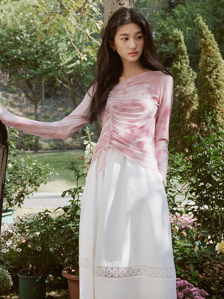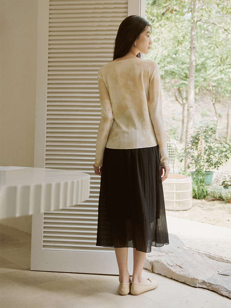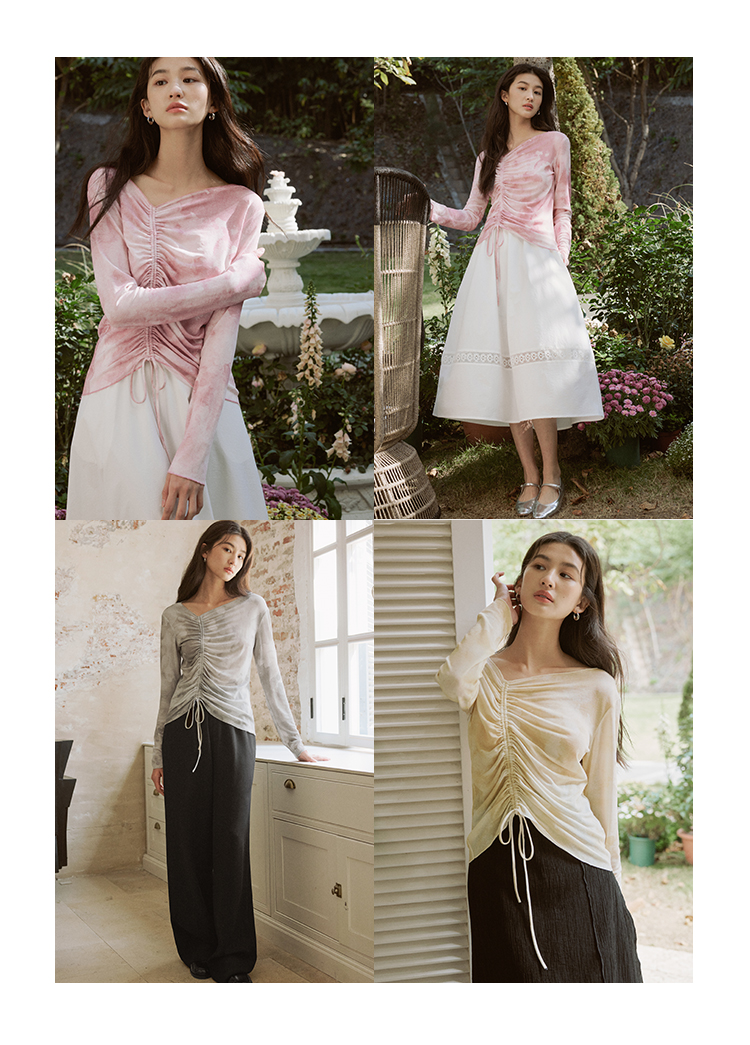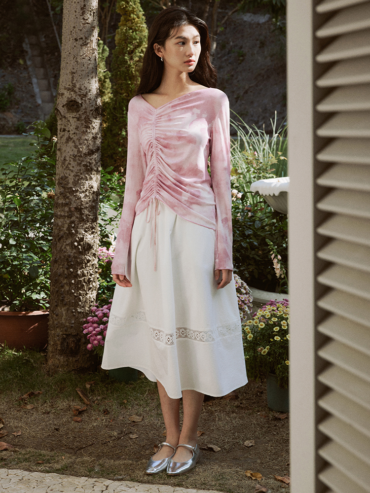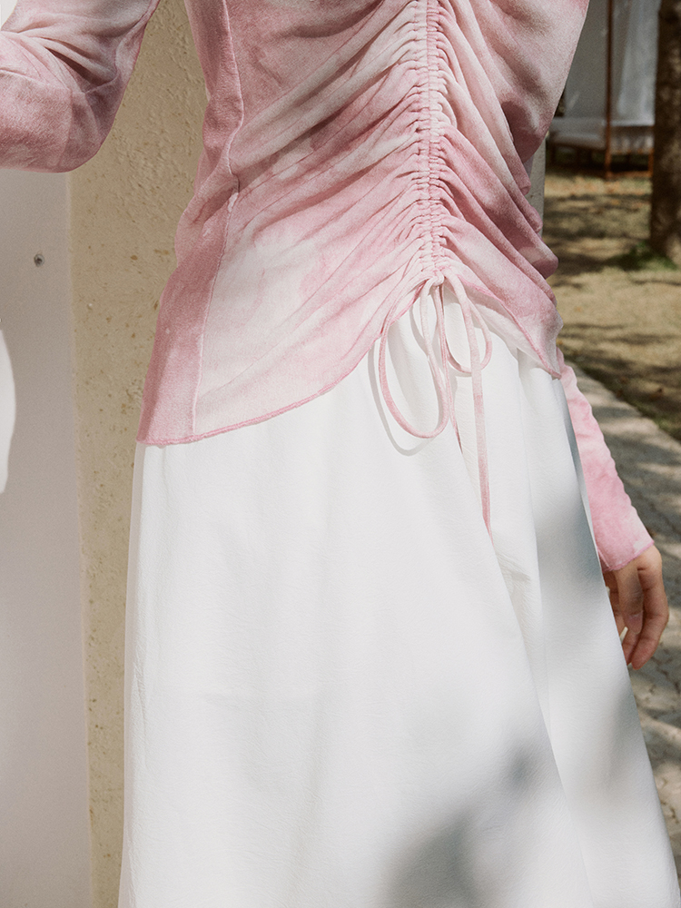 ForPoem 现货 24/SS原创设计春季新款 针织醋酸水墨晕染印花抽褶上衣