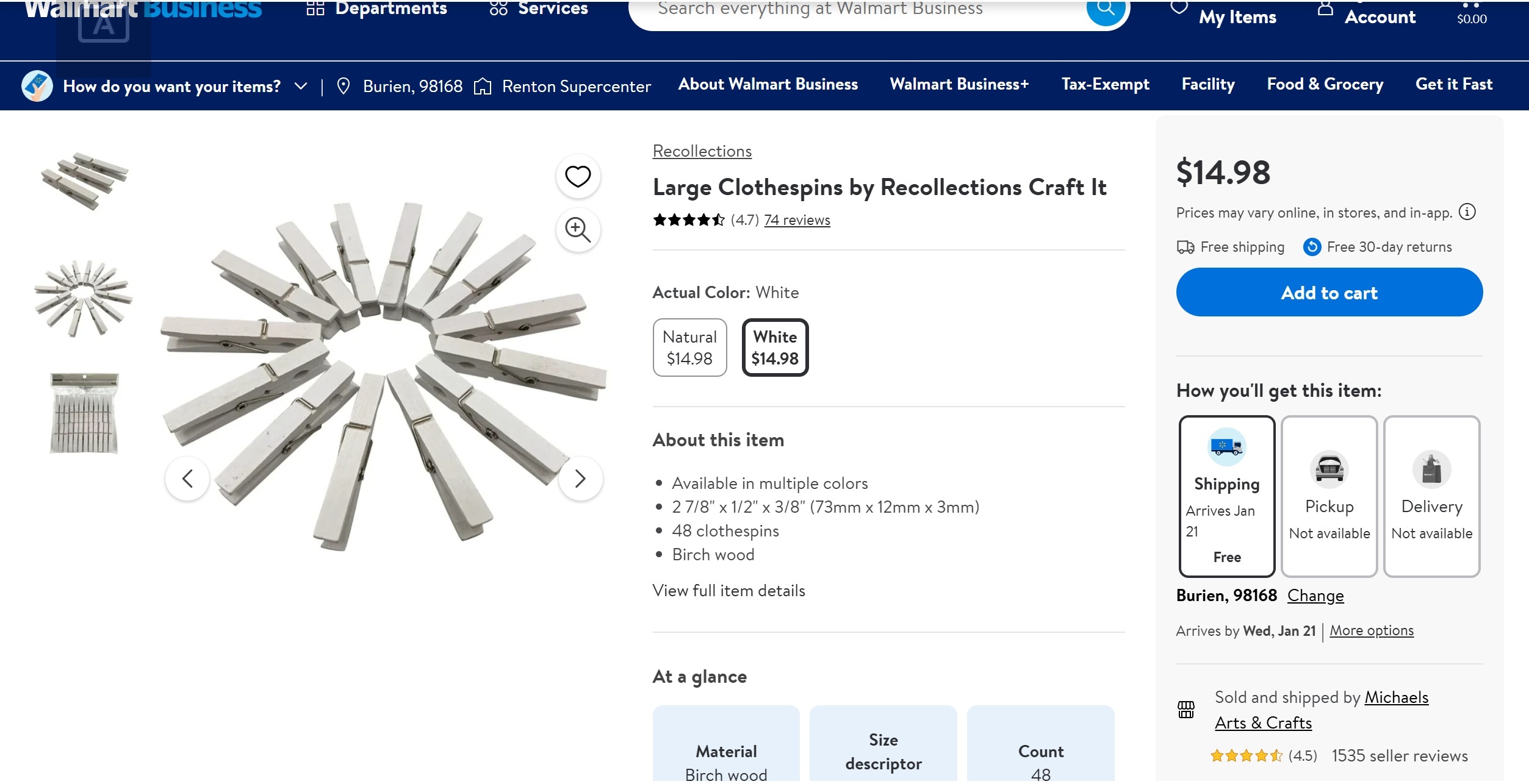 74个可重复使用的夹子,足够您用于多个制作项目或晾晒多件衣物。