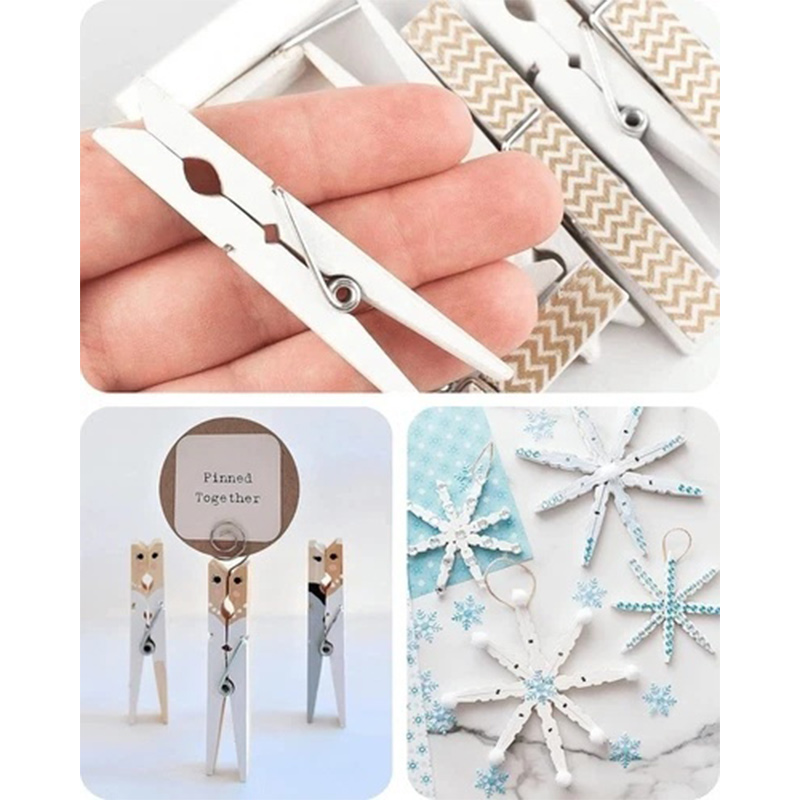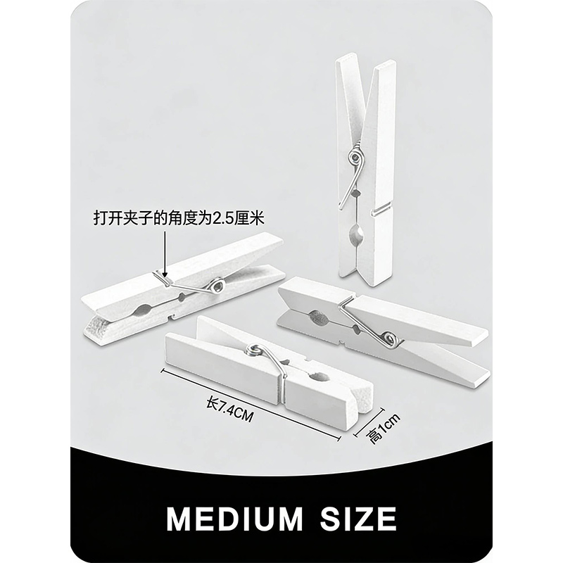 木质白色夹子非常适合晾晒衣物,同时也足够通用,可用于DIY制作项目或家居装饰。