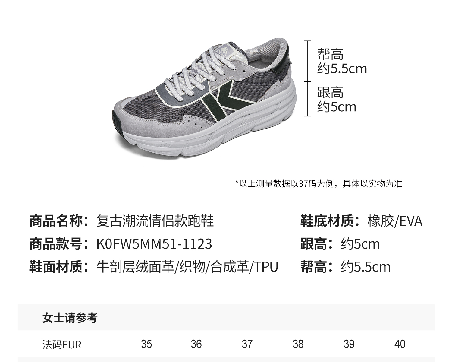 Kappa卡帕男女情侣冬季运动鞋2024新款减震跑步鞋百搭厚底老爹鞋K0FW5MM51