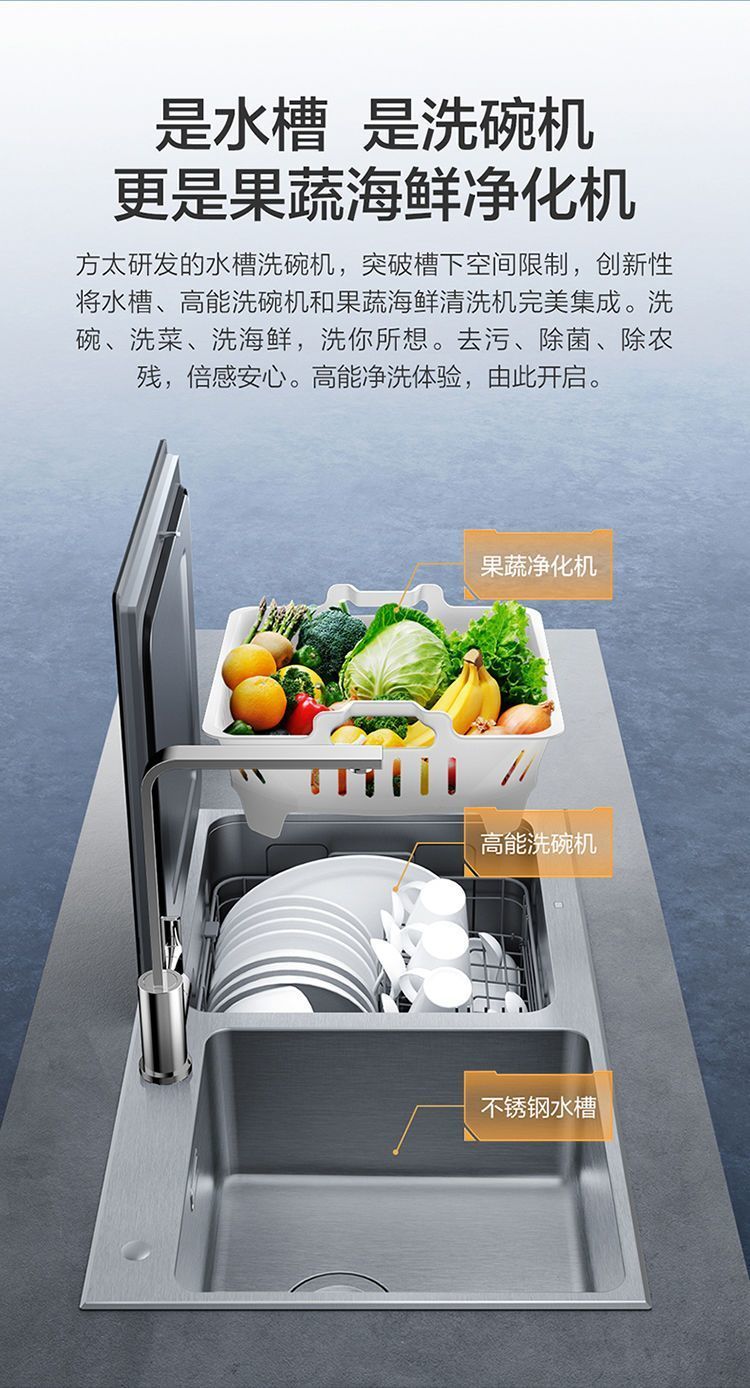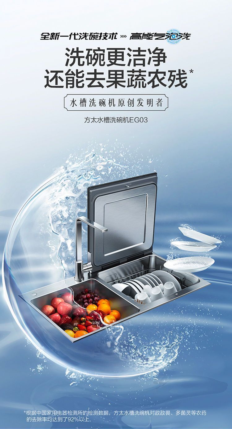方太水槽洗碗机EG03全自动家用智能集成水槽一体小型嵌入式刷碗机