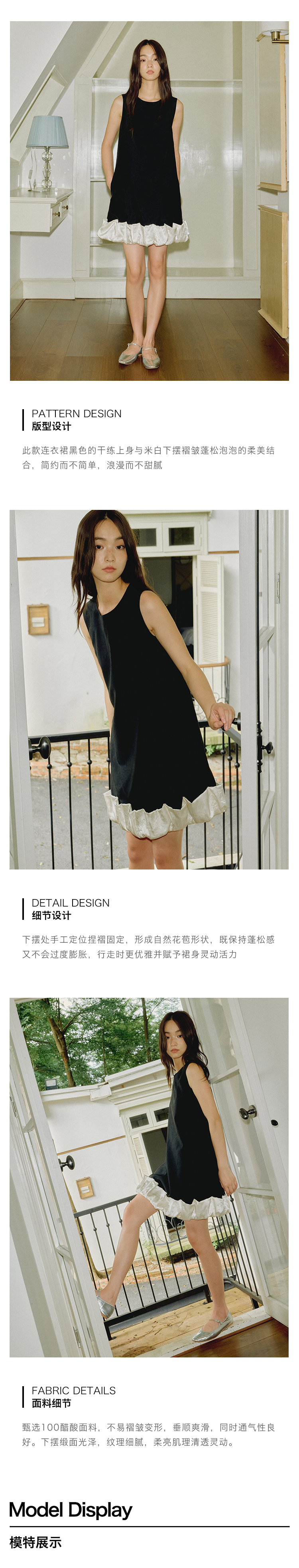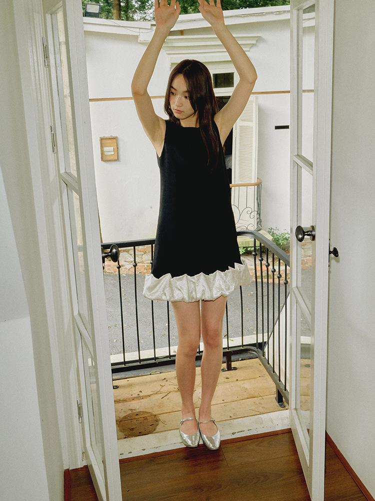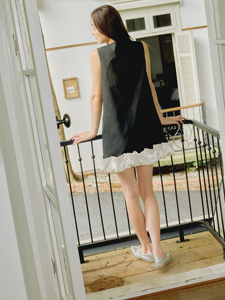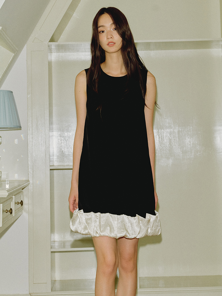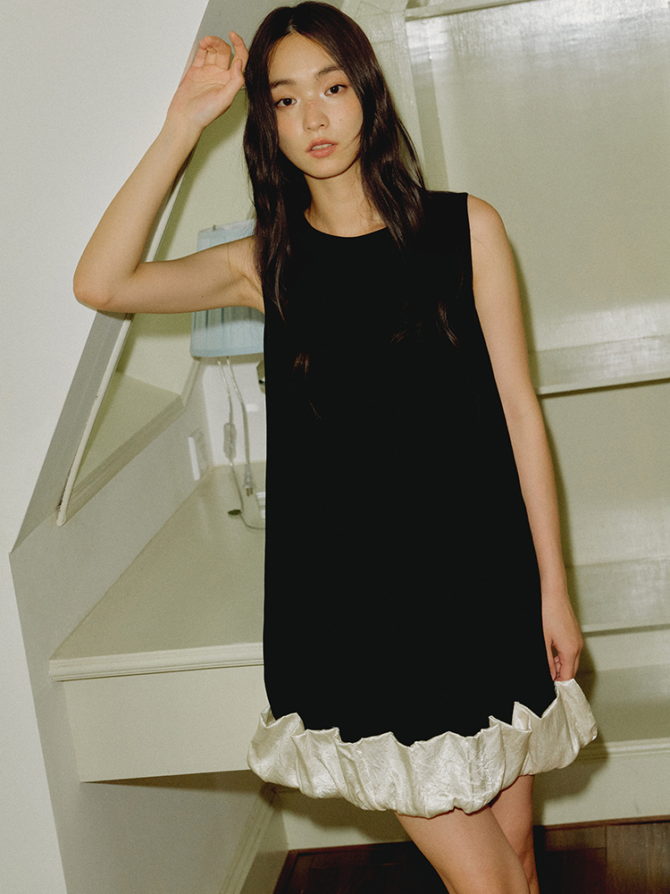 ForPoem 现货 25/SS原创设计100醋酸无袖褶皱花苞下摆拼接连衣裙