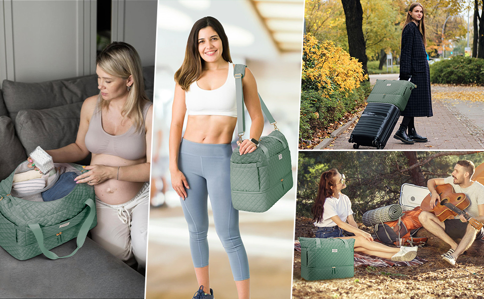 【广泛用途健身包】:携带所有健身和旅行必需品的完美选择。可用作飞机旅行包、行李包、健身运动包、周末包、随身携带包、沙滩包。我们的女士健身包适合室内和室外运动,例如旅行、运动、周末旅行、瑜伽、健身房、学校、海滩、商务或其他日常使用。