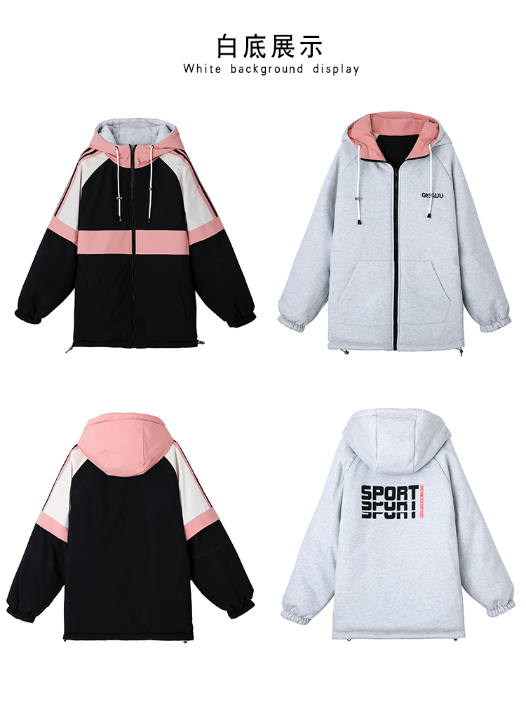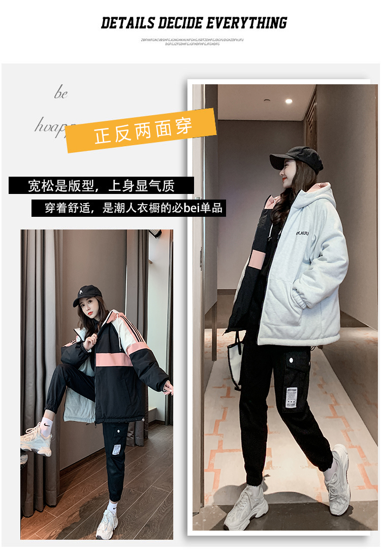 正反两穿保暖棉服 外套女冬季宽松休闲加厚保暖上衣 双面穿棉袄