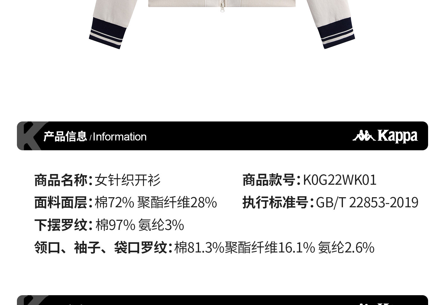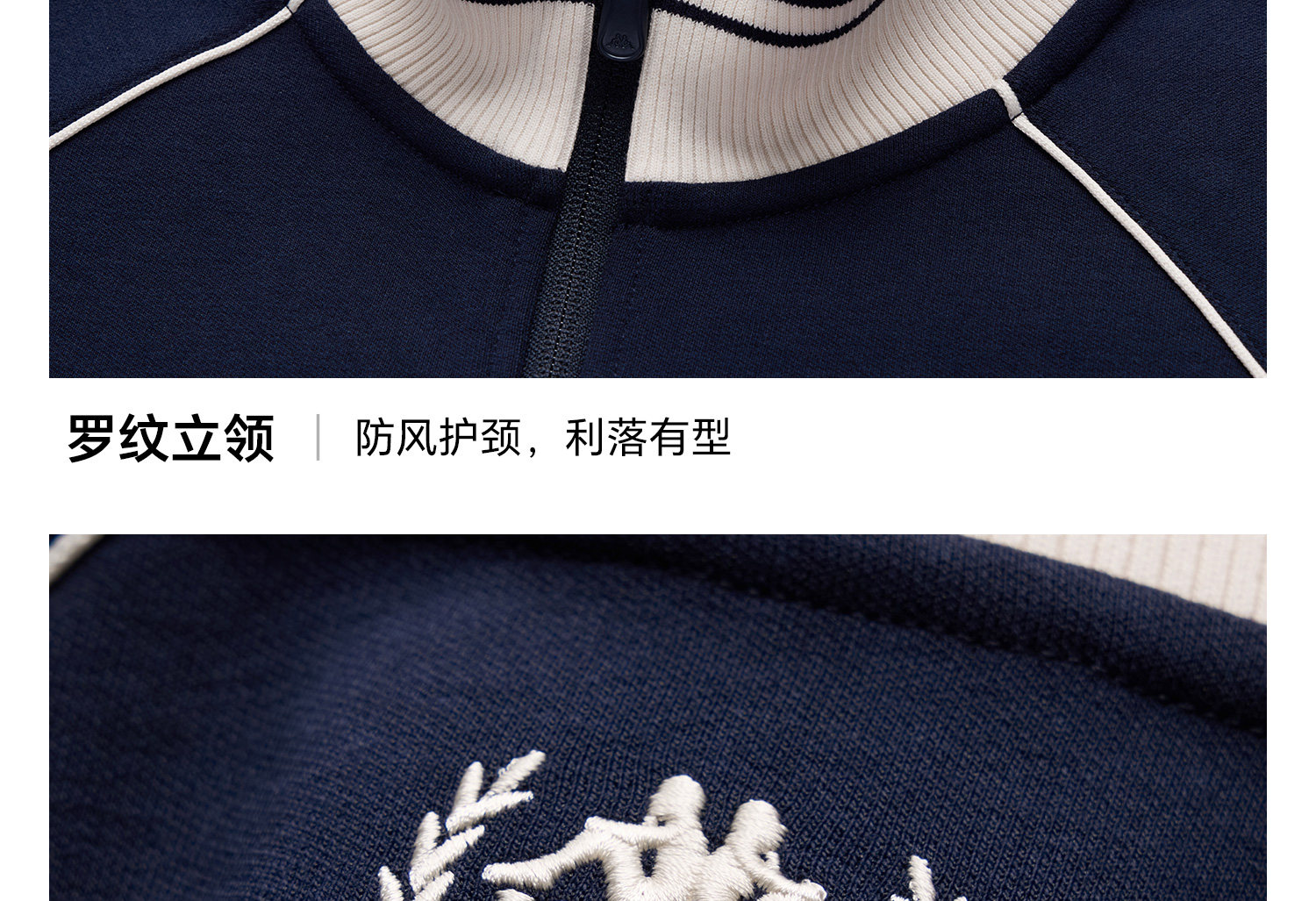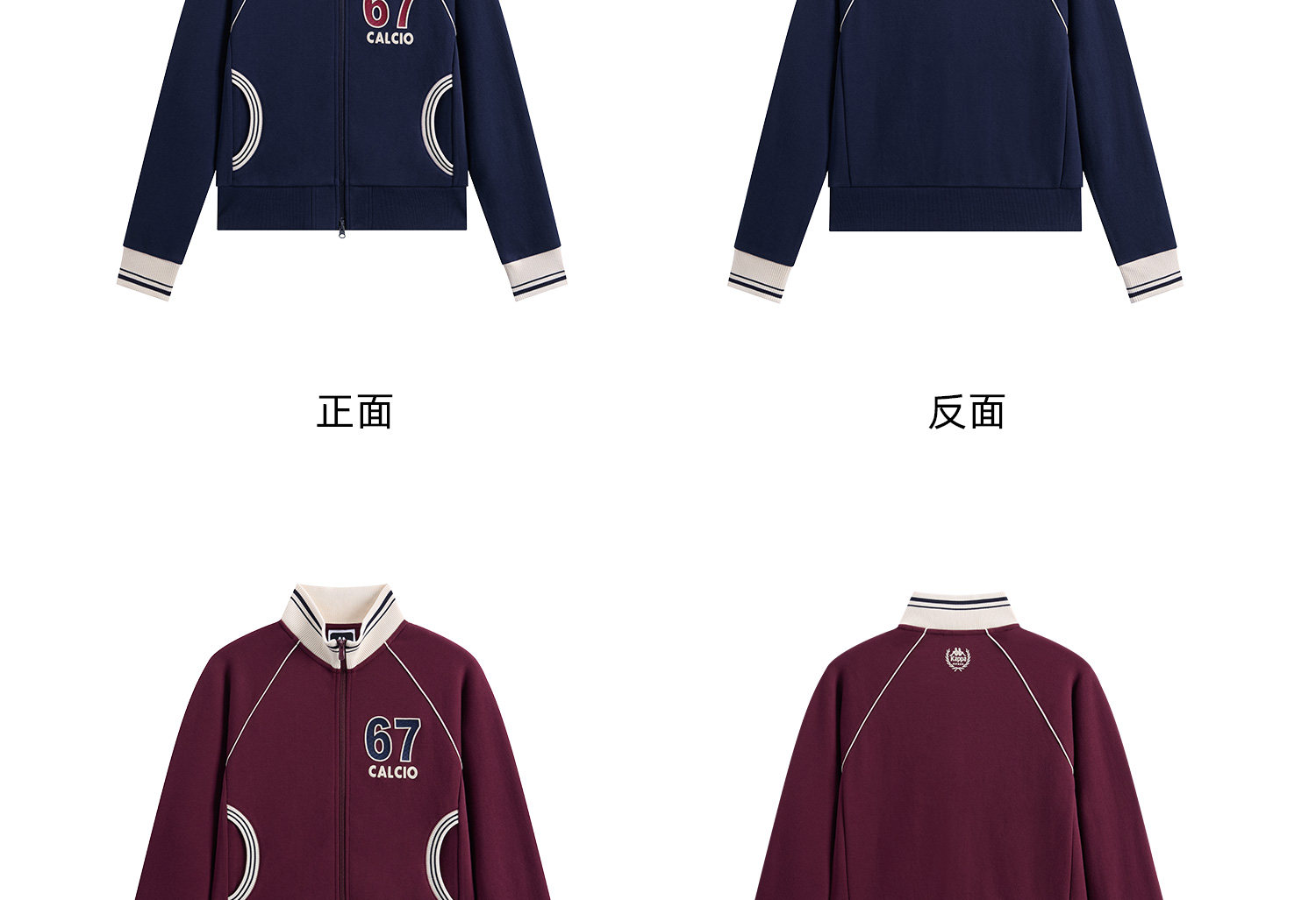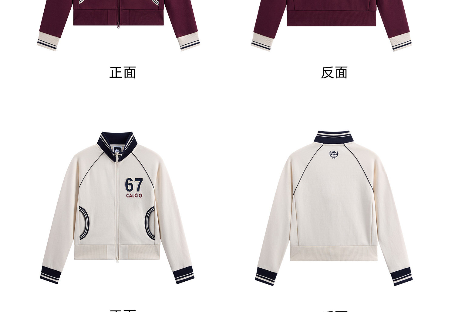 Kappa 运动外套女新款复古立领针织开衫学院风撞色夹克K0G22WK01