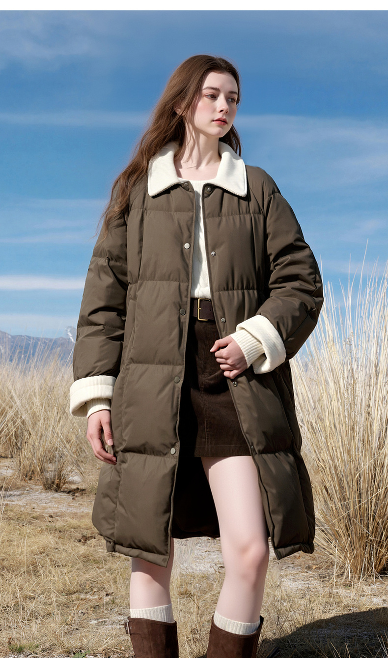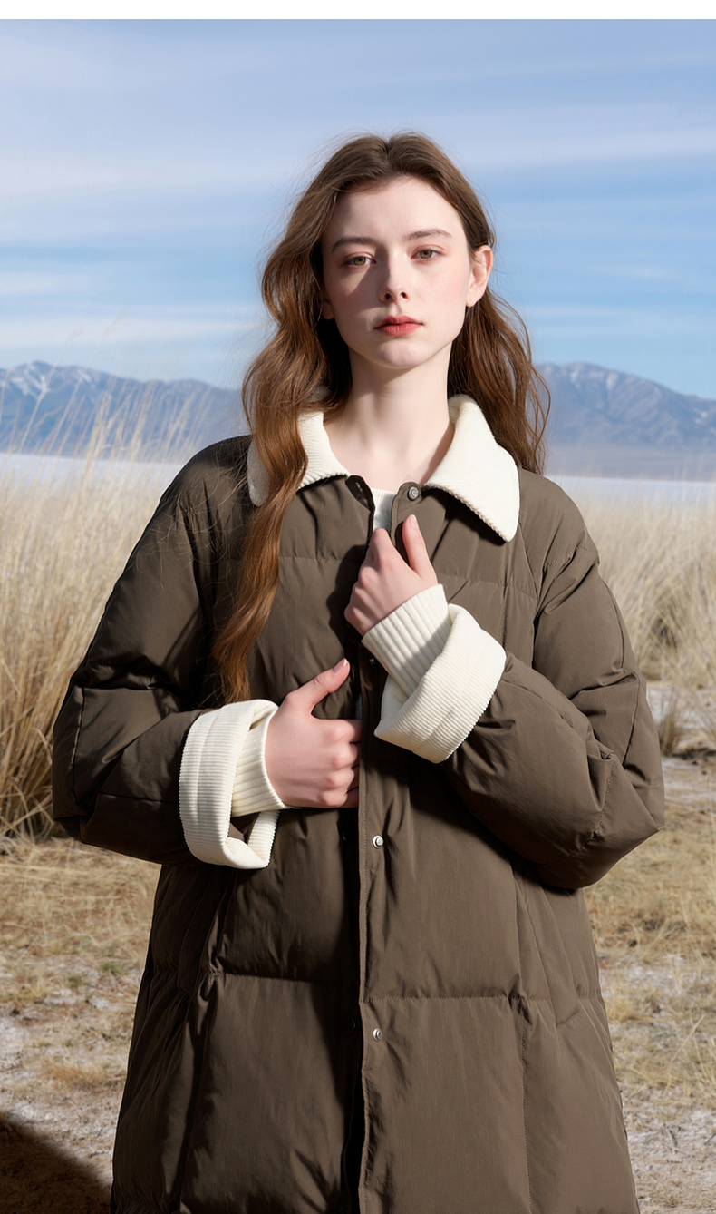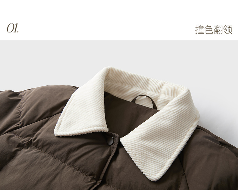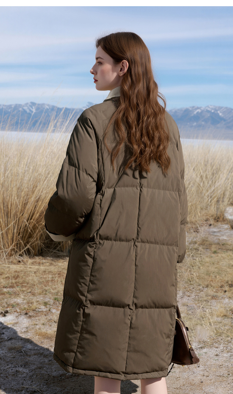 【90白鹅绒】三彩2025冬季新款翻领羽绒服宽松长款保暖外套M