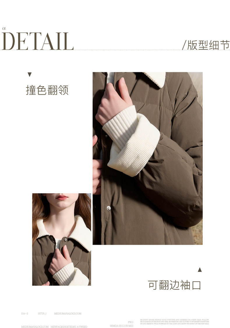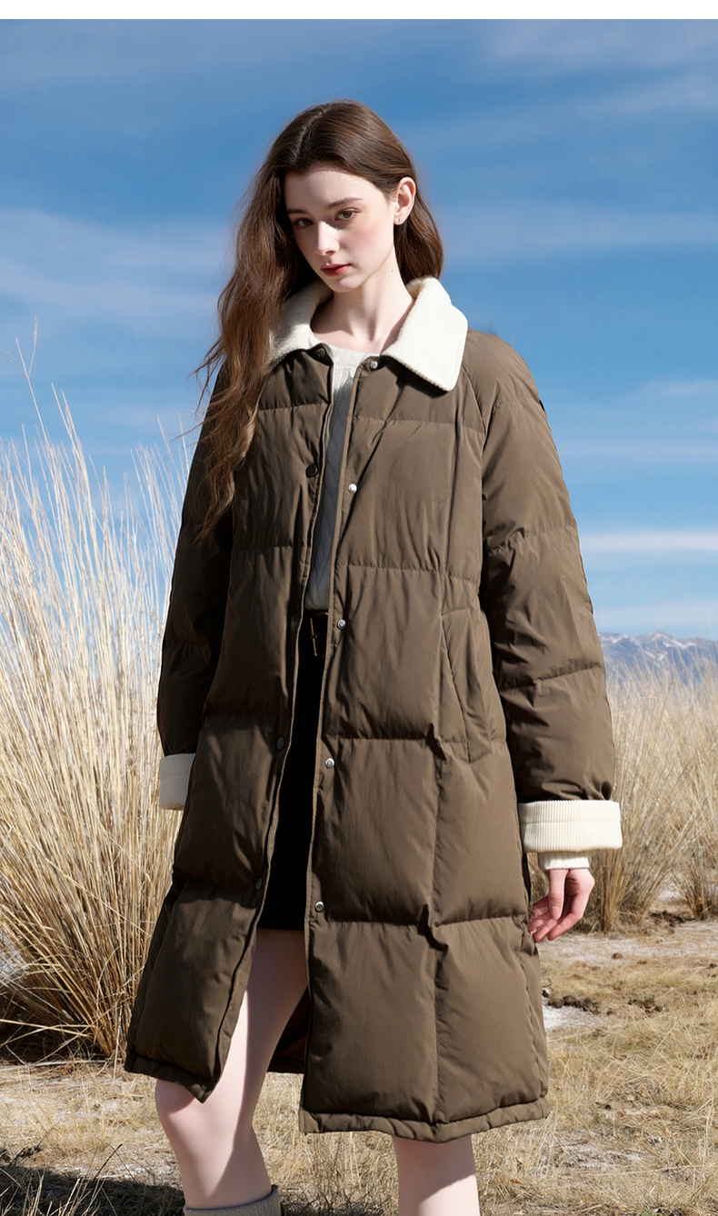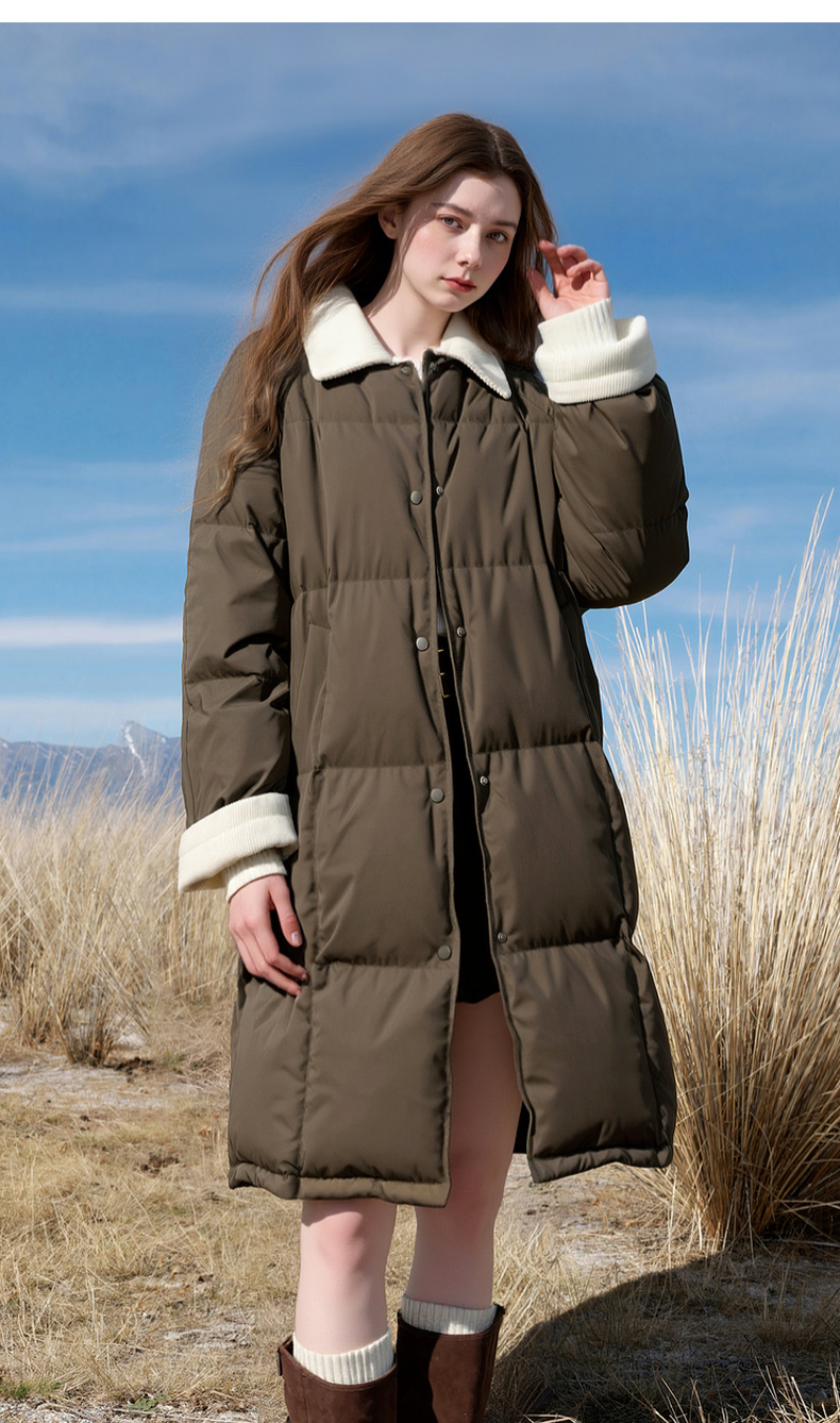 【90白鹅绒】三彩2025冬季新款翻领羽绒服宽松长款保暖外套M