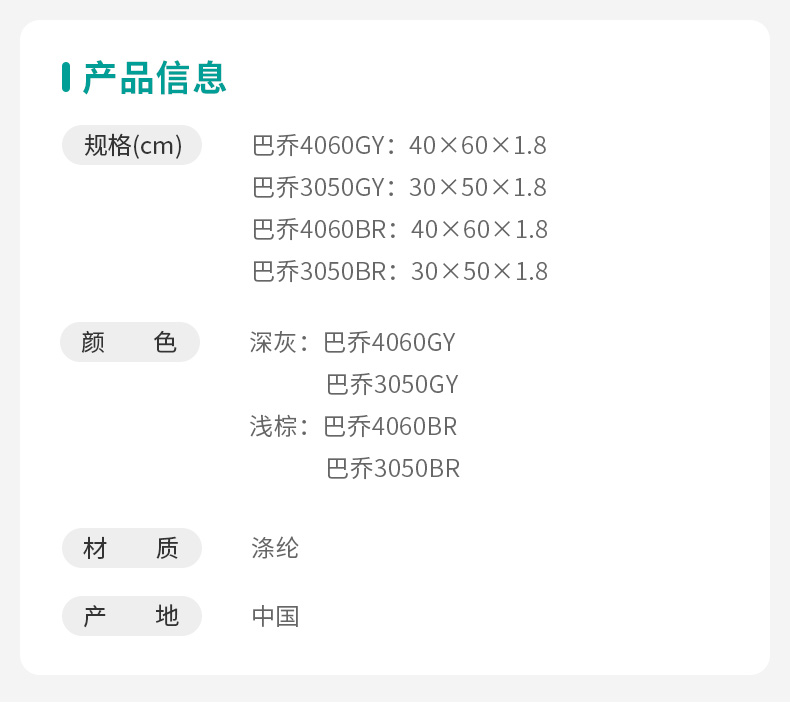 低反弹浴室垫 巴乔 (约)40x60x1.8cm
