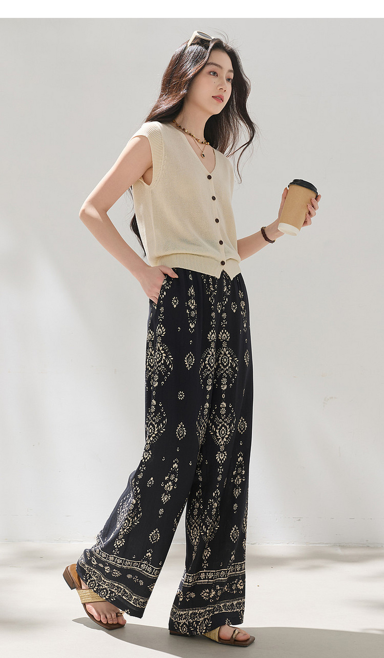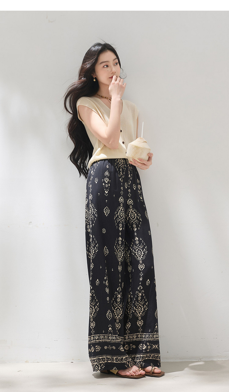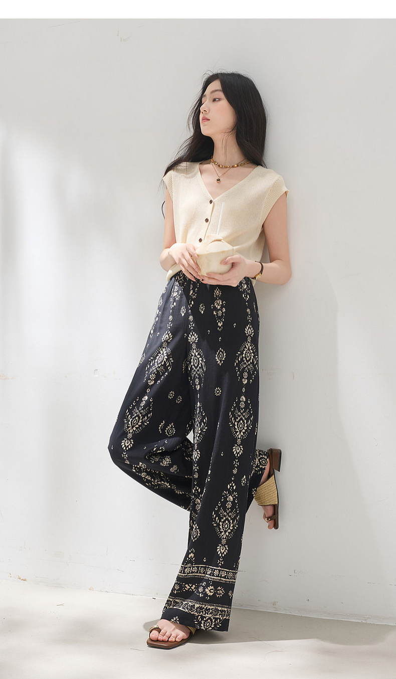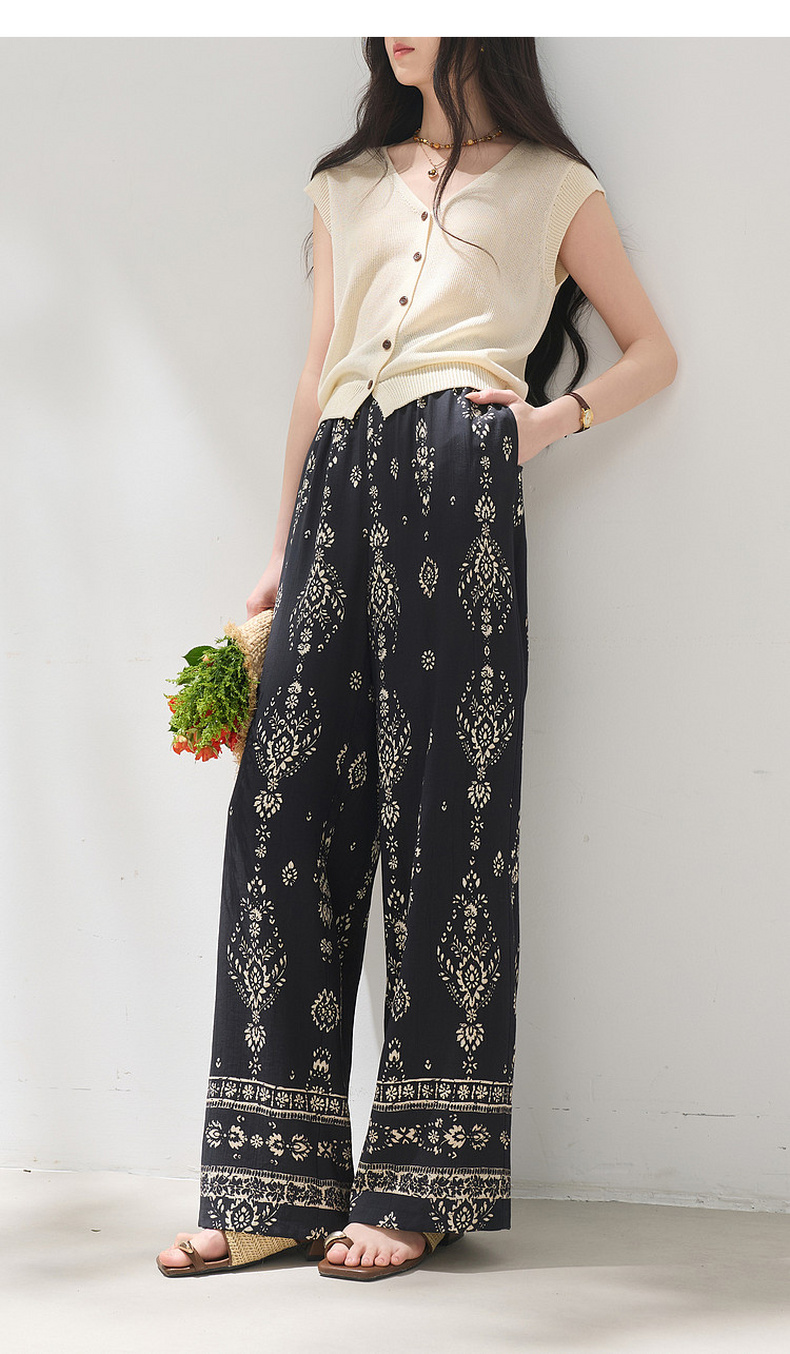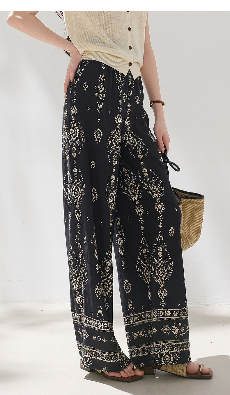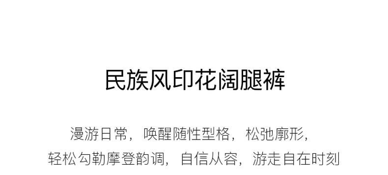 【民族风印花阔腿裤】三彩2026夏季新款休闲裤高腰宽松长裤垂感M