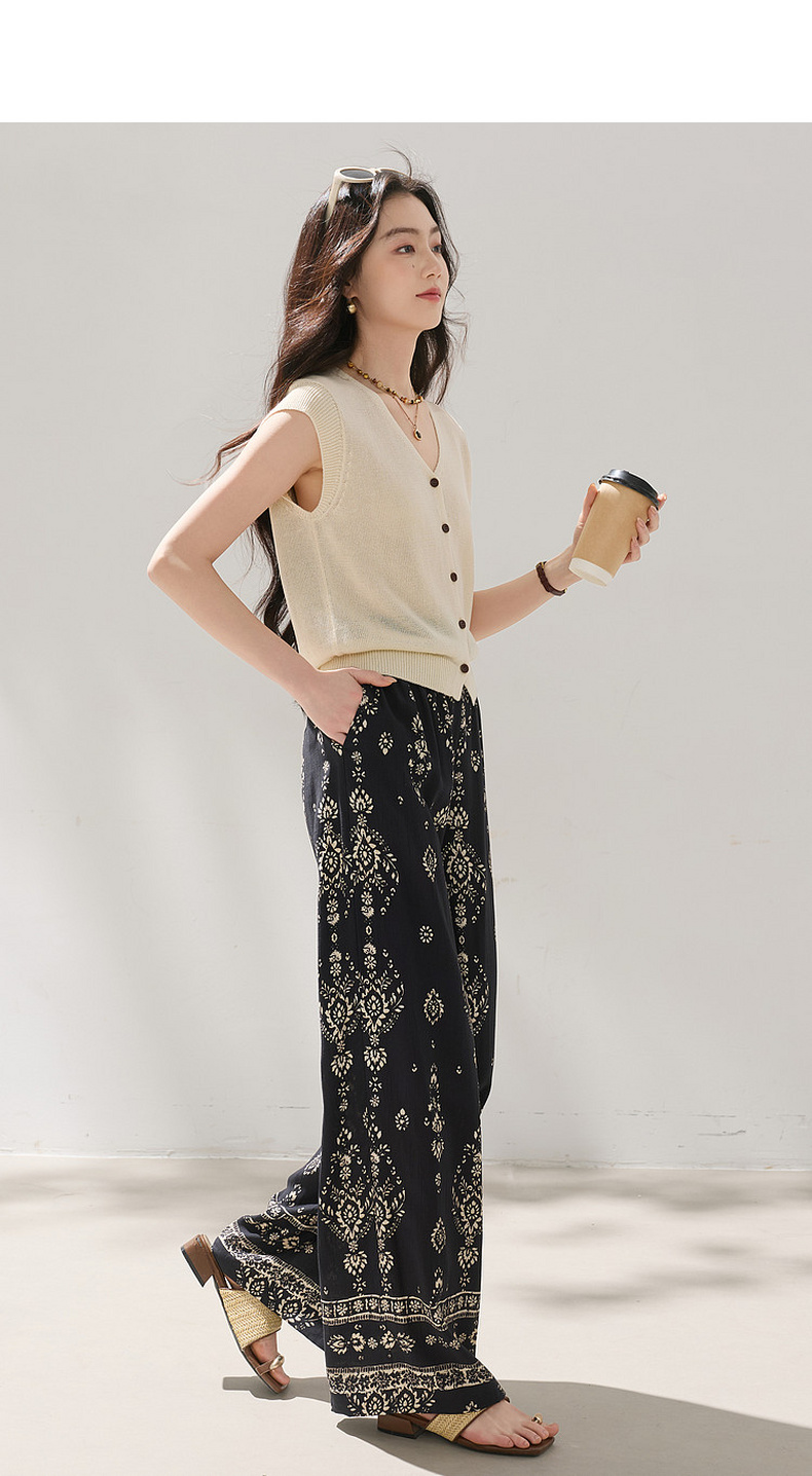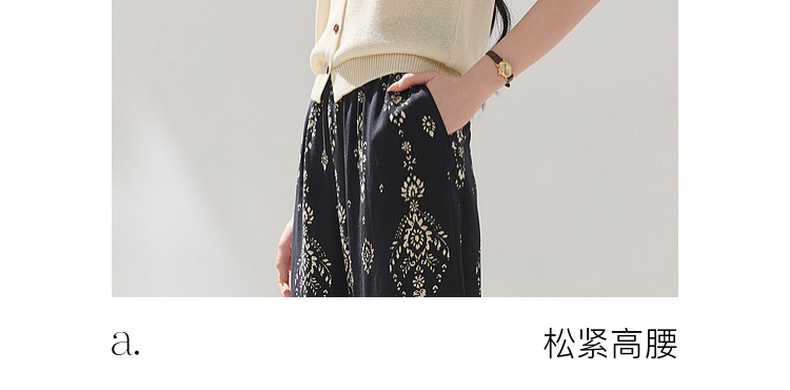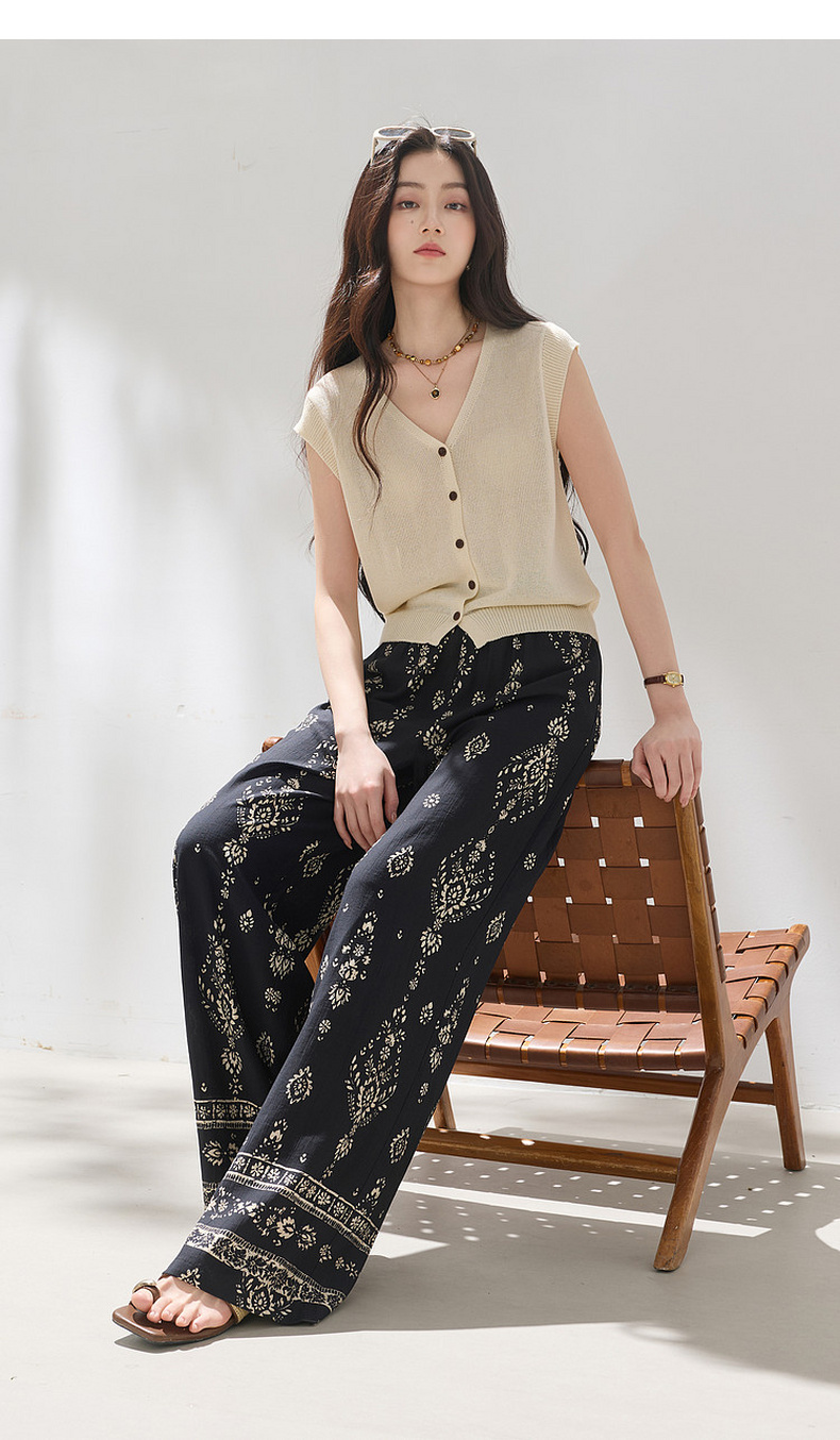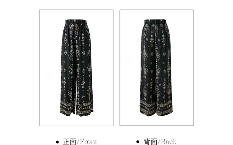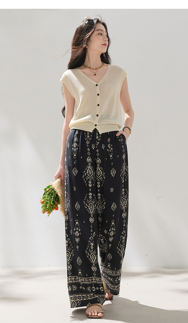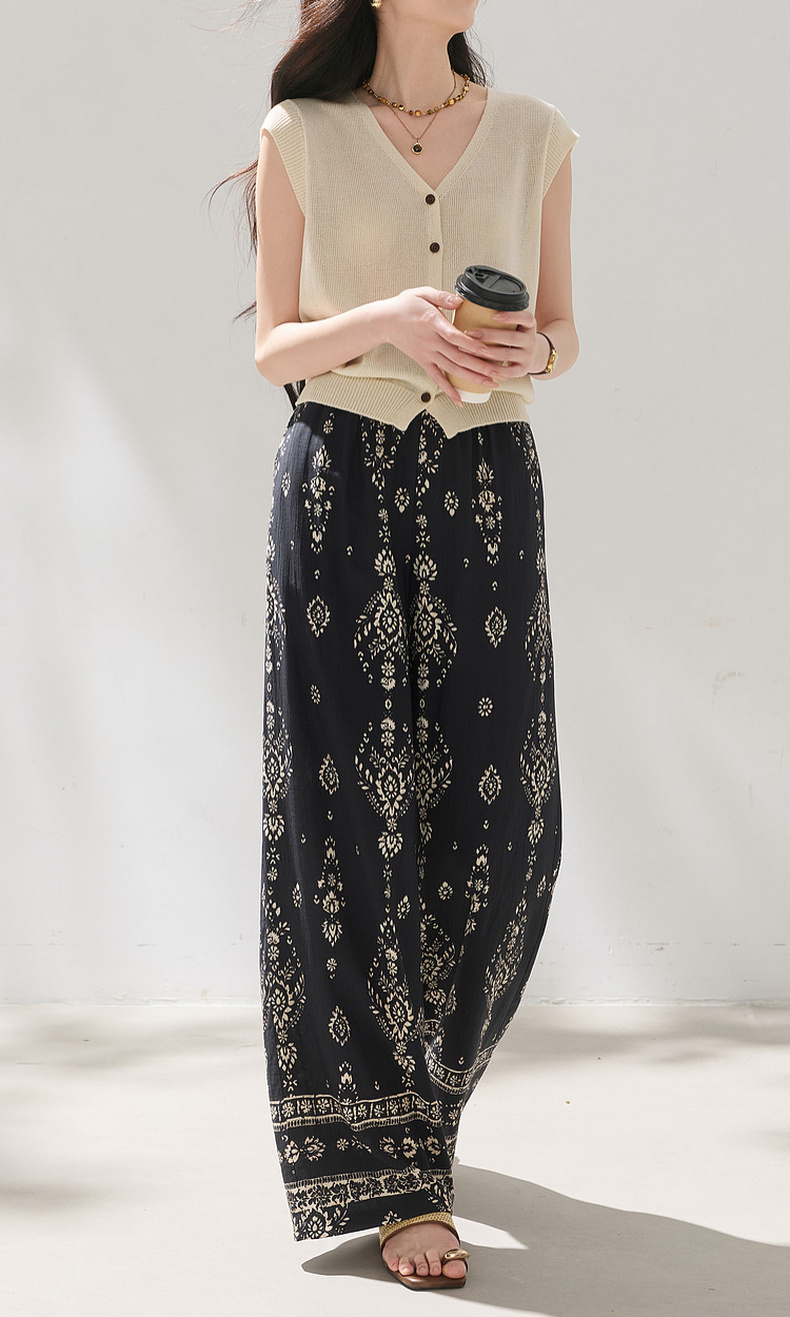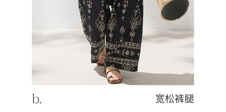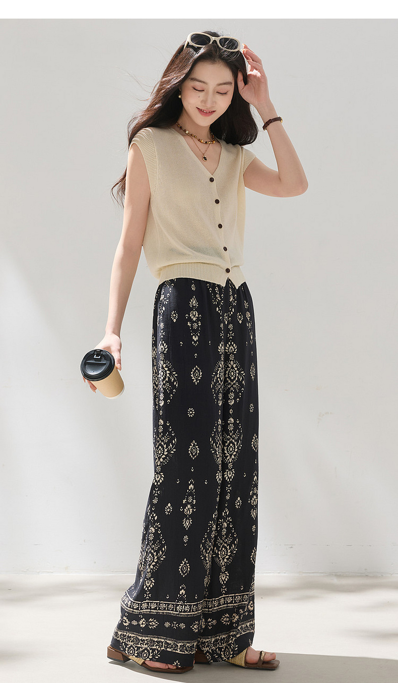【民族风印花阔腿裤】三彩2026夏季新款休闲裤高腰宽松长裤垂感M