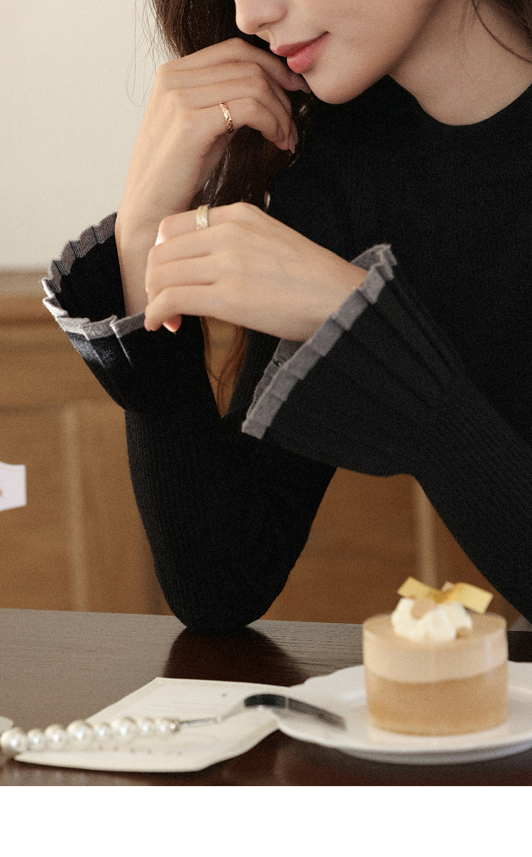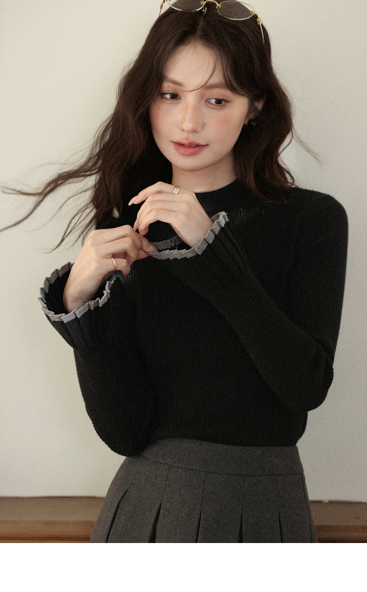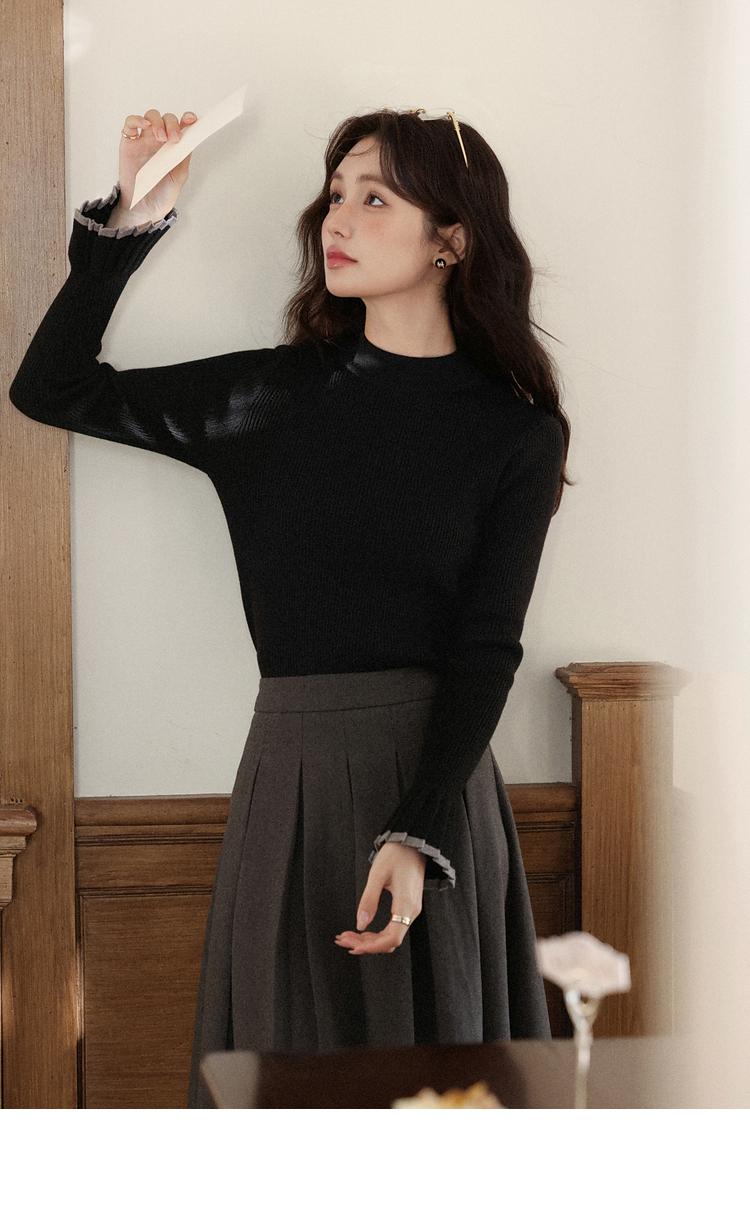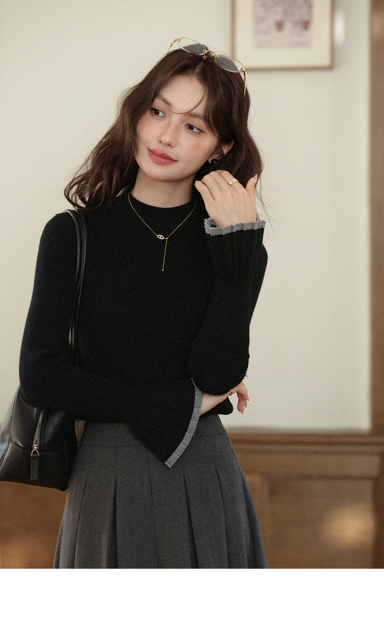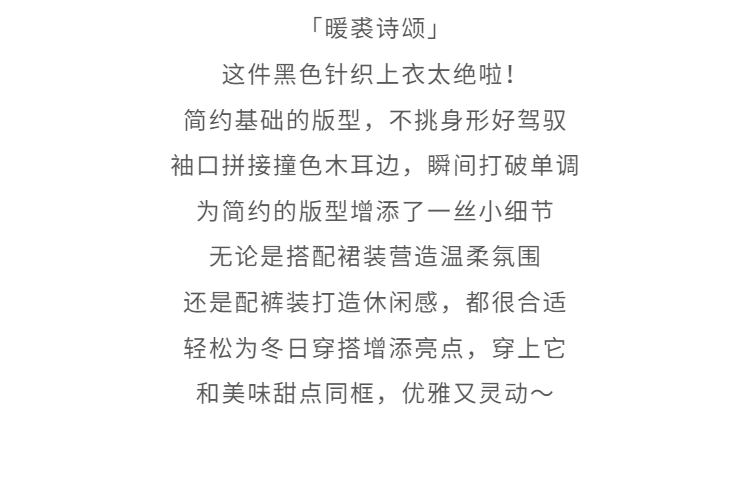 鹿向南「暖雾画意」黑色半高领长袖针织衫上衣女秋气质显瘦打底衫