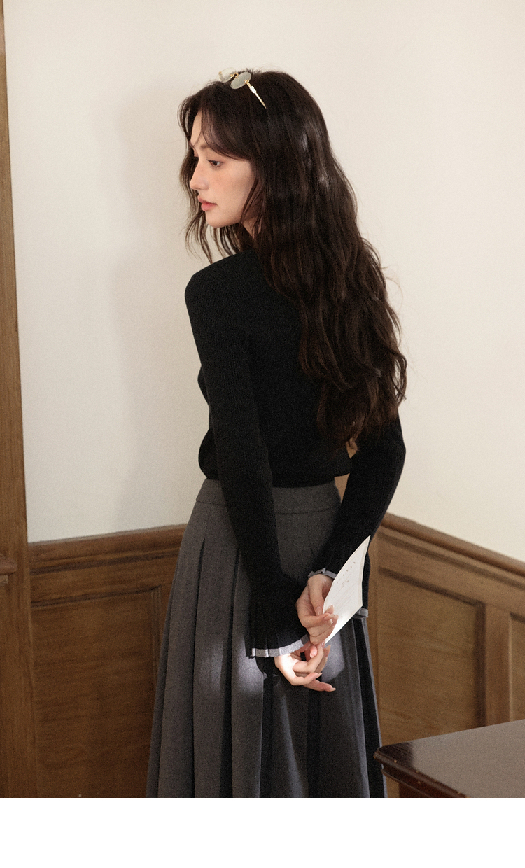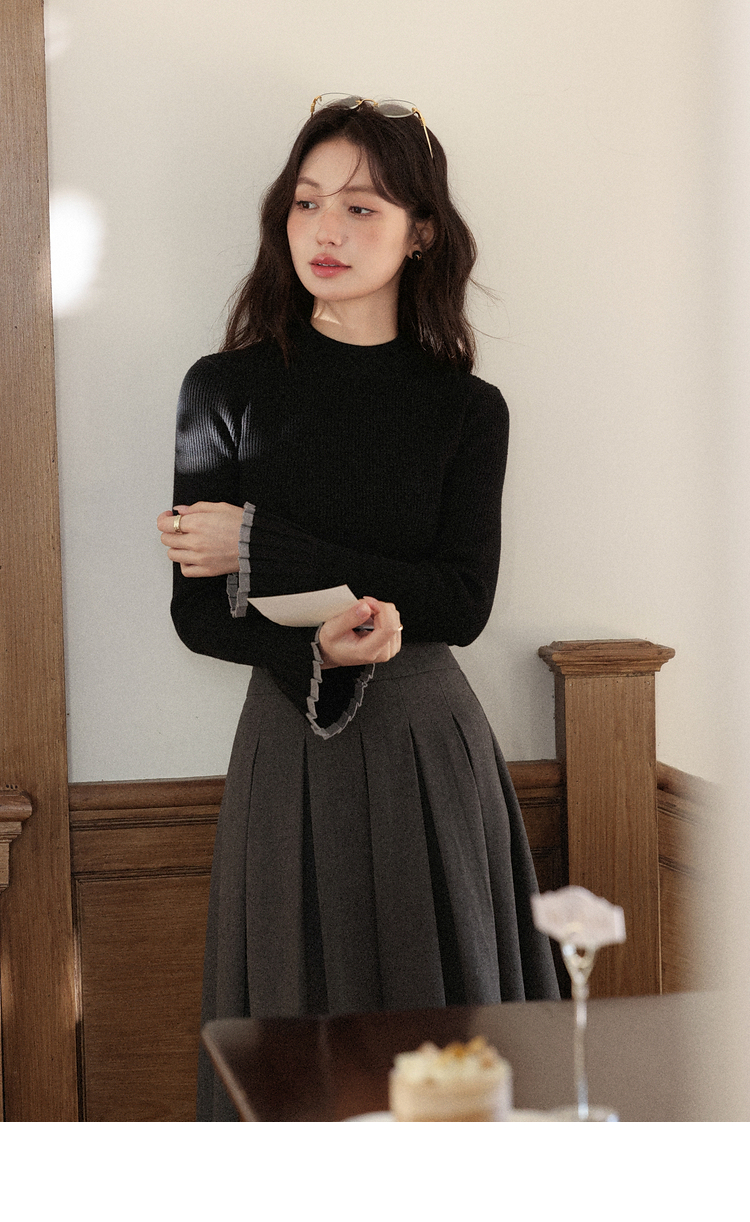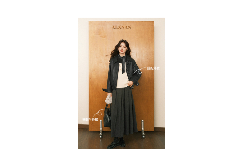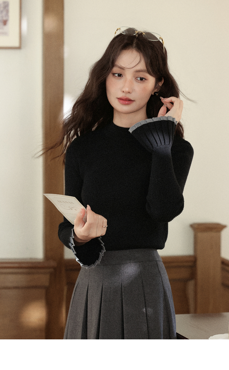 鹿向南「暖雾画意」黑色半高领长袖针织衫上衣女秋气质显瘦打底衫