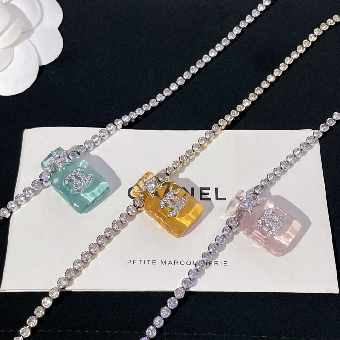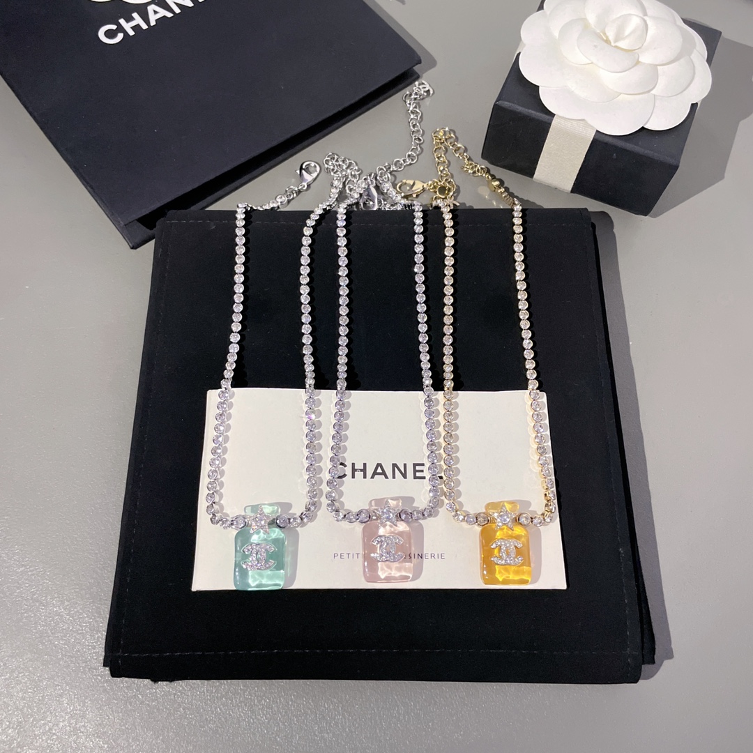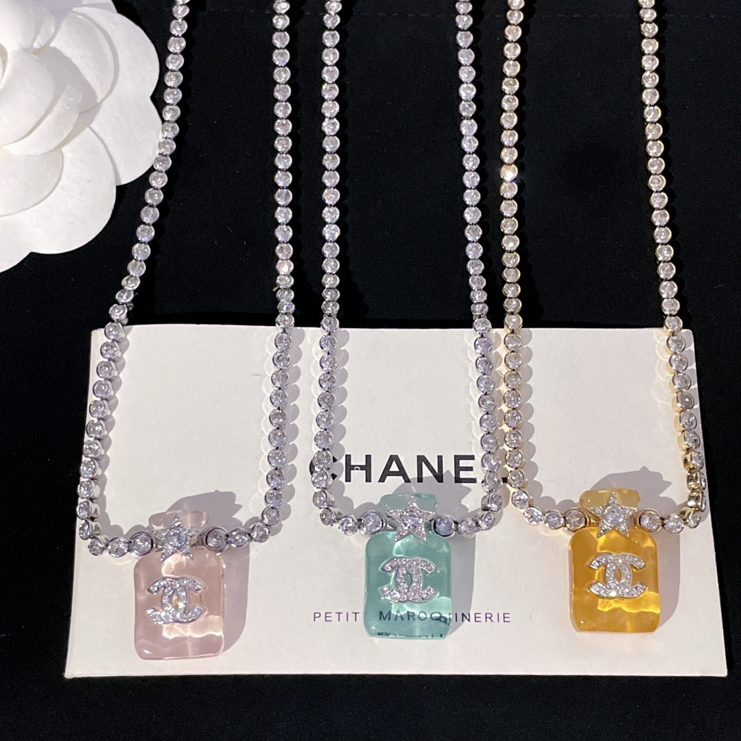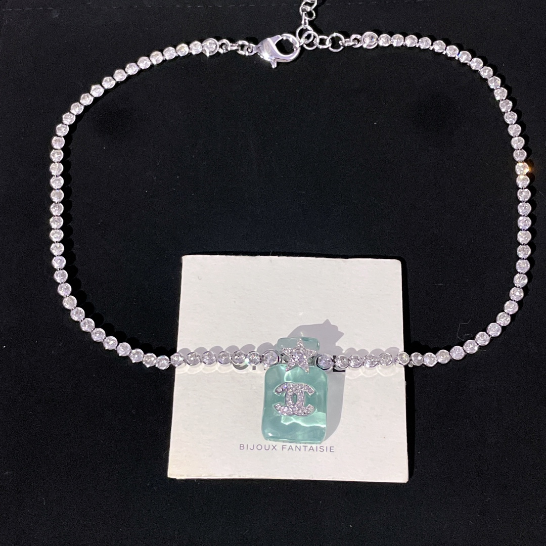214013【香透明香水瓶满钻链条项链】