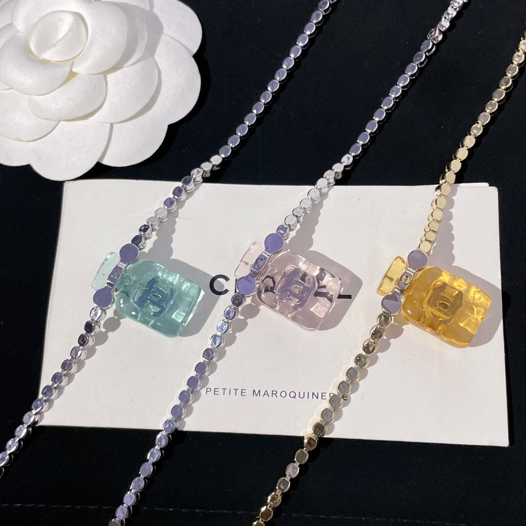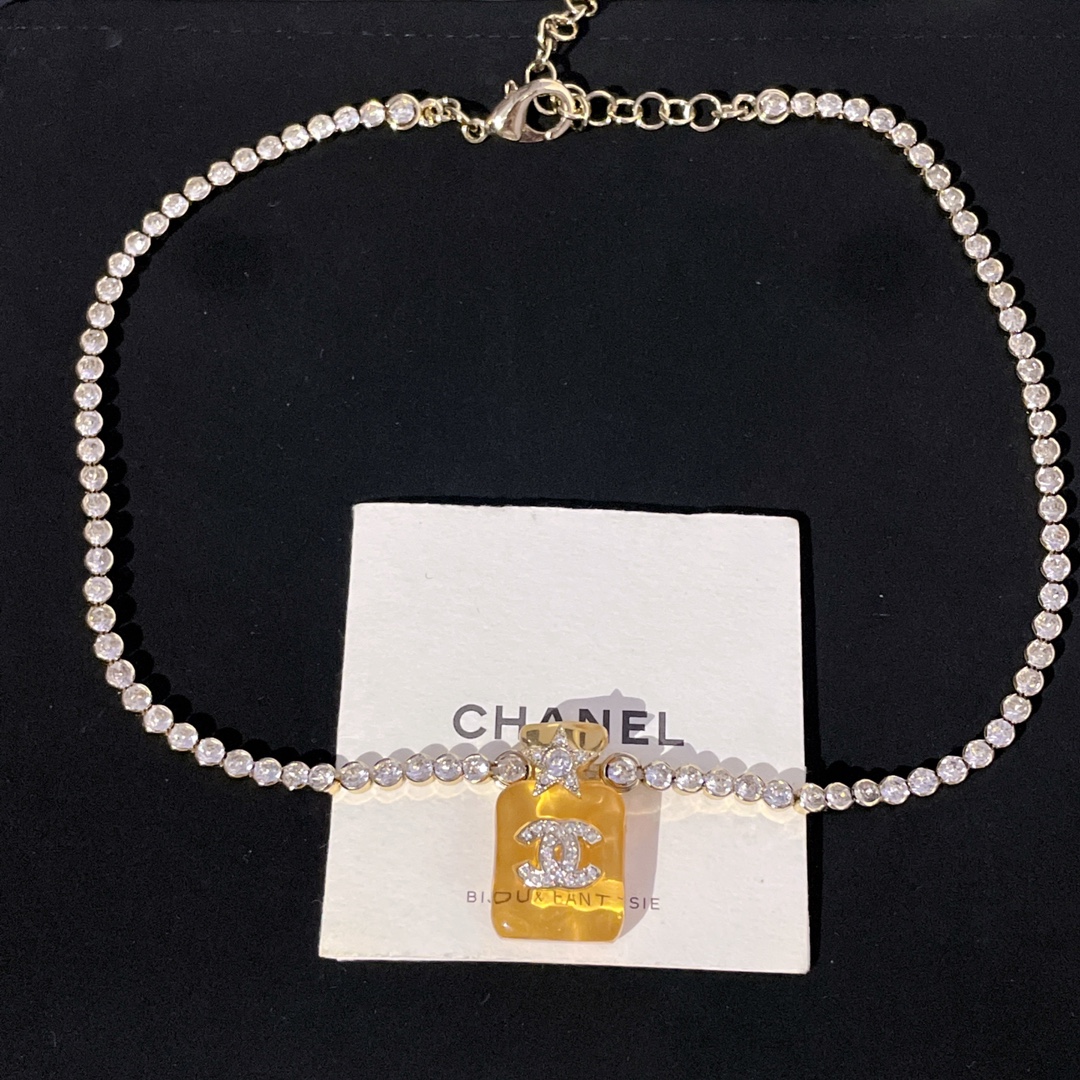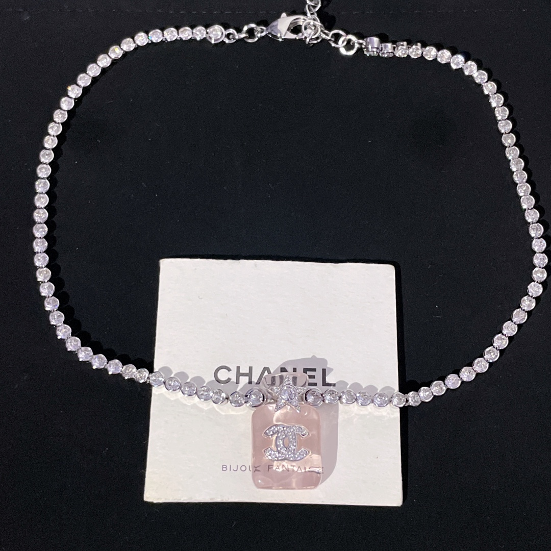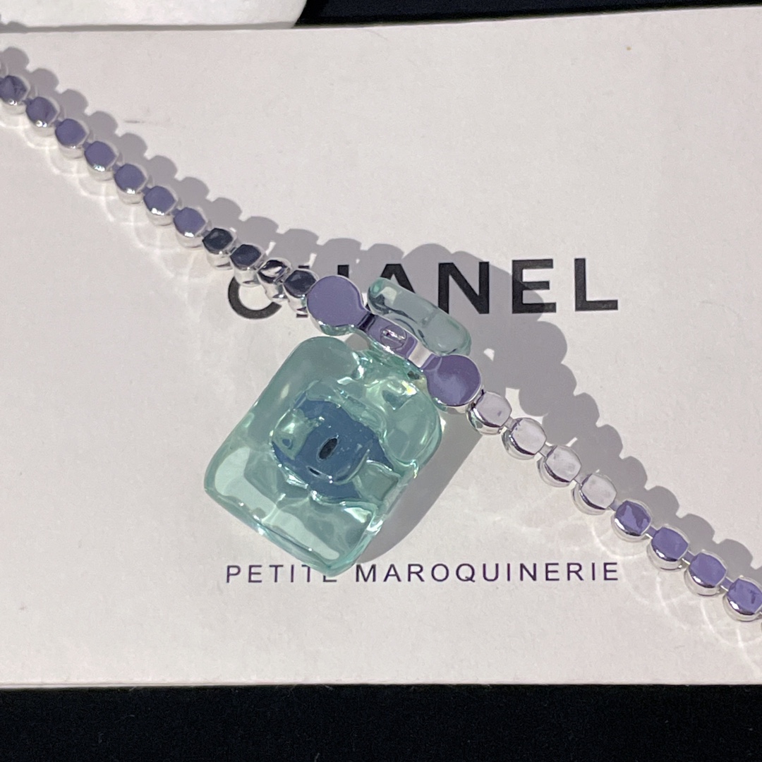 214013【香透明香水瓶满钻链条项链】